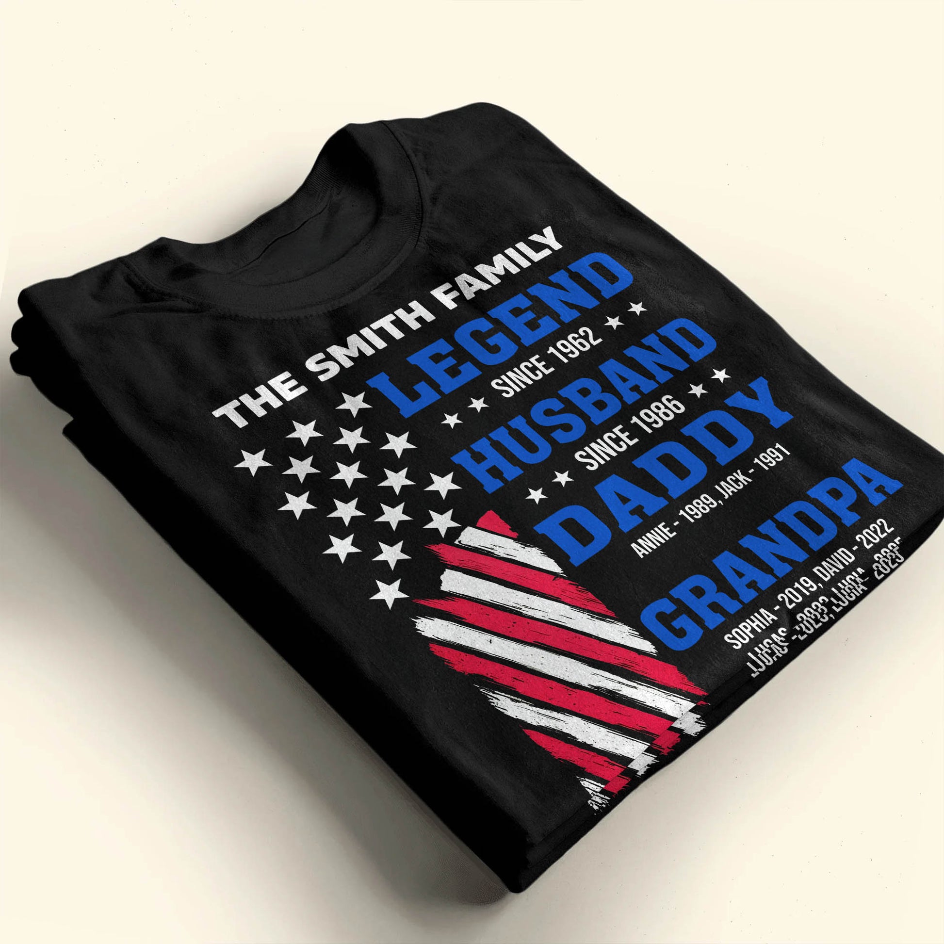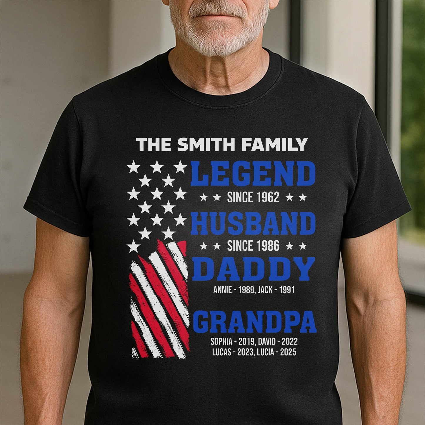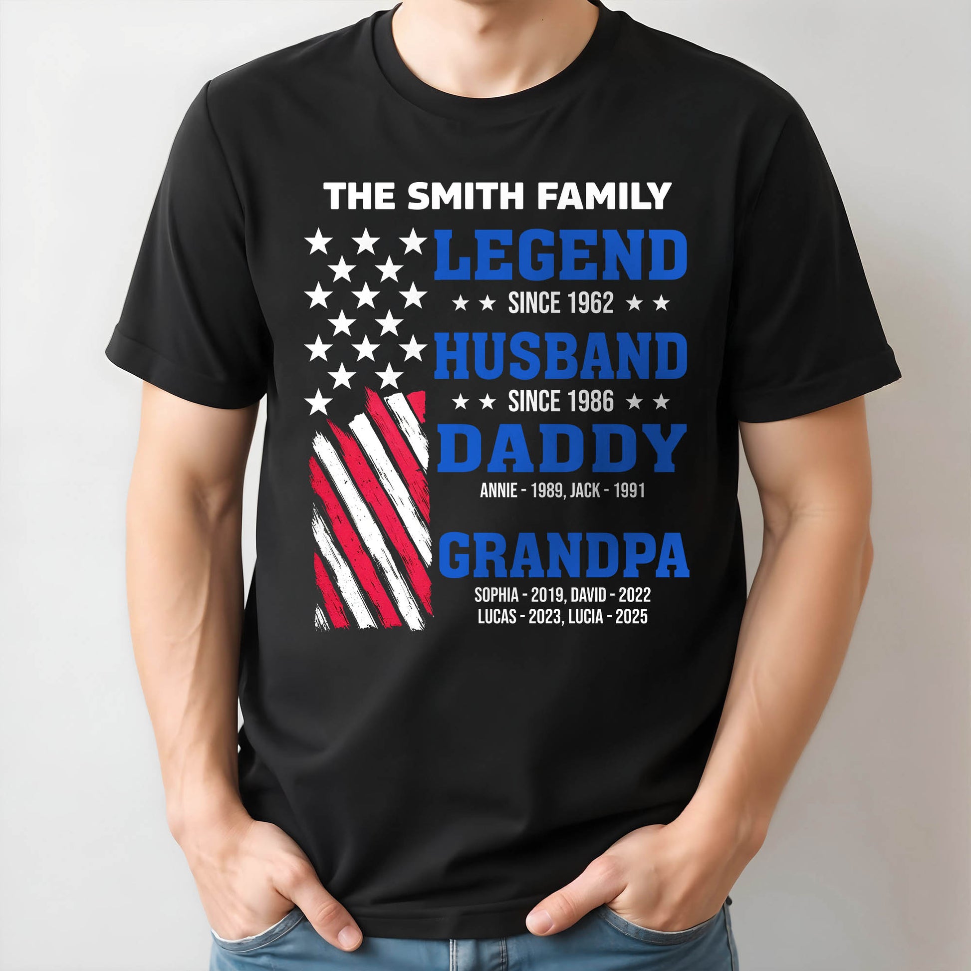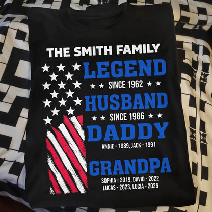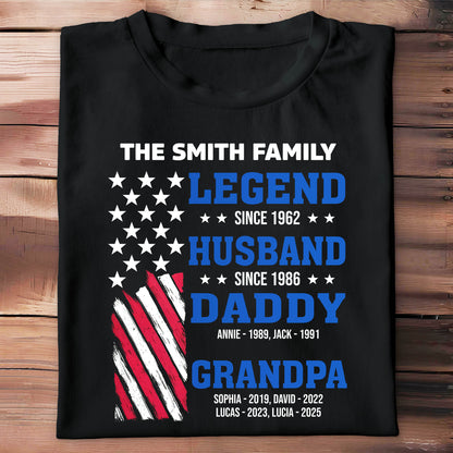 Legend Since [Year], Husband, Daddy, Grandpa with Stars and Stripes - Personalized Custom Unisex T-shirt, Hoodie - FAM409_BBAS