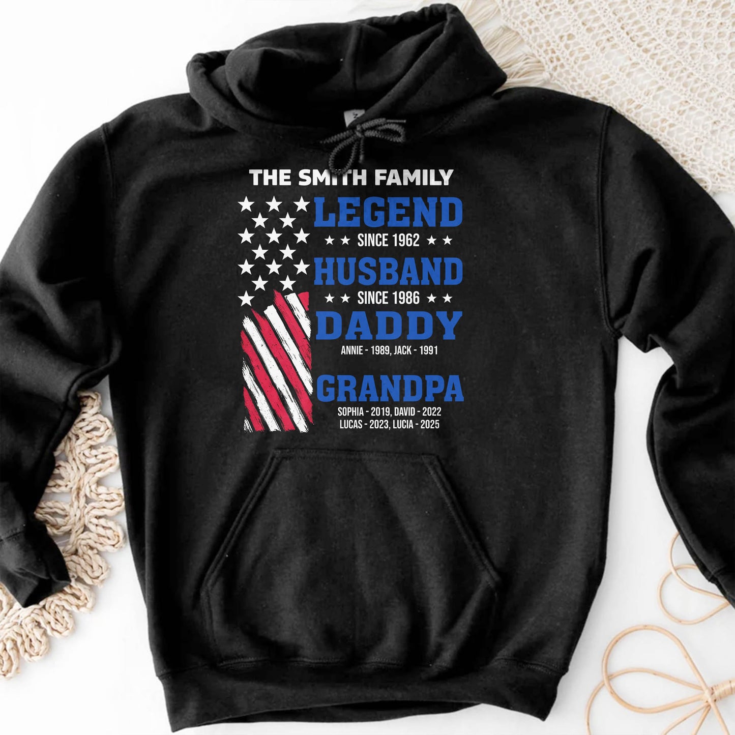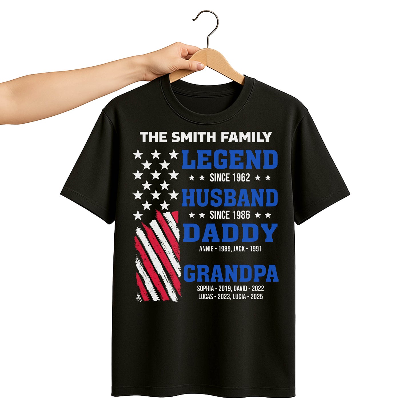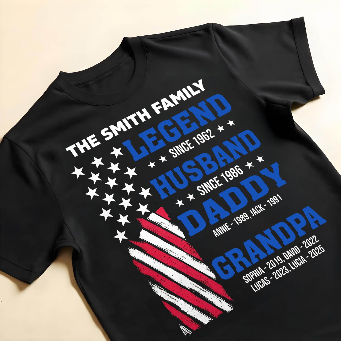 Legend Since [Year], Husband, Daddy, Grandpa with Stars and Stripes - Personalized Custom Unisex T-shirt, Hoodie - FAM409_BBAS