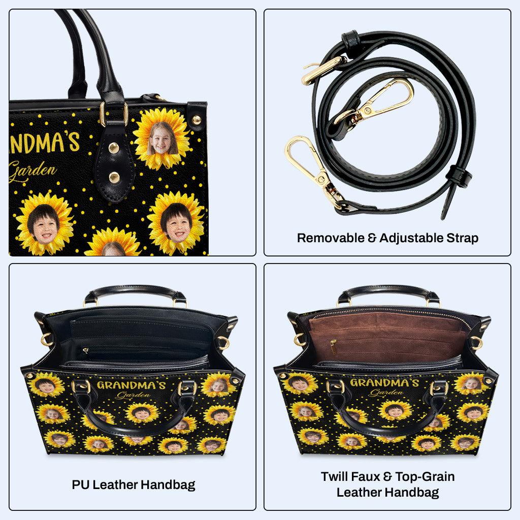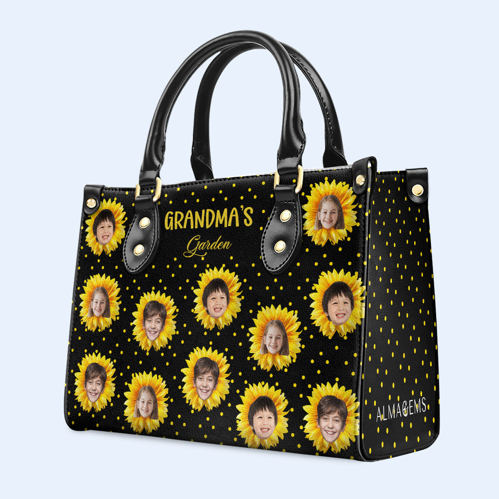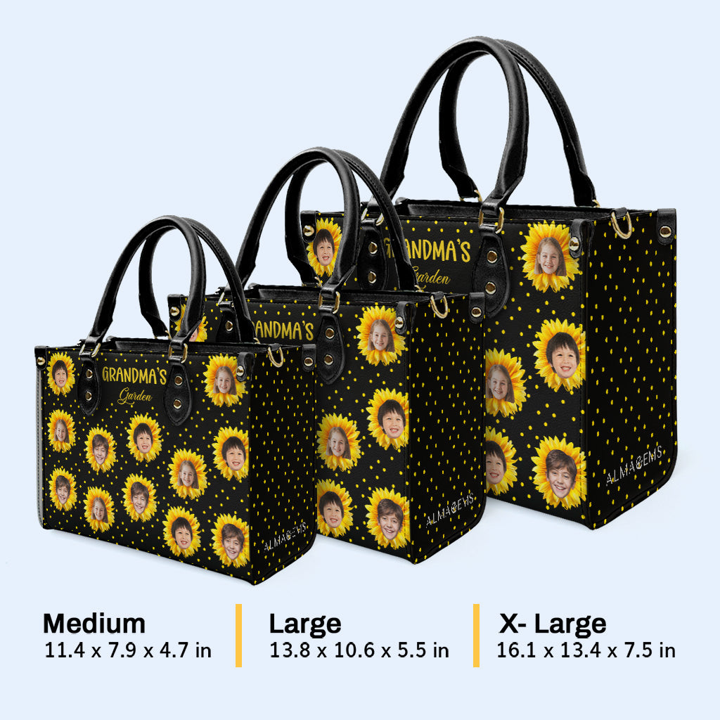 Grandma's Garden - Personalized Custom Leather Handbag, All Over Print Tote - Gift For Family