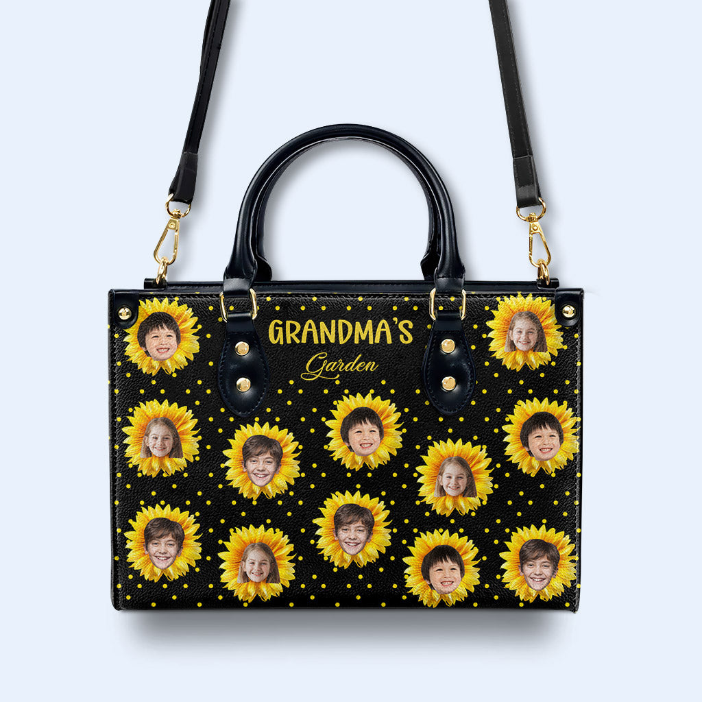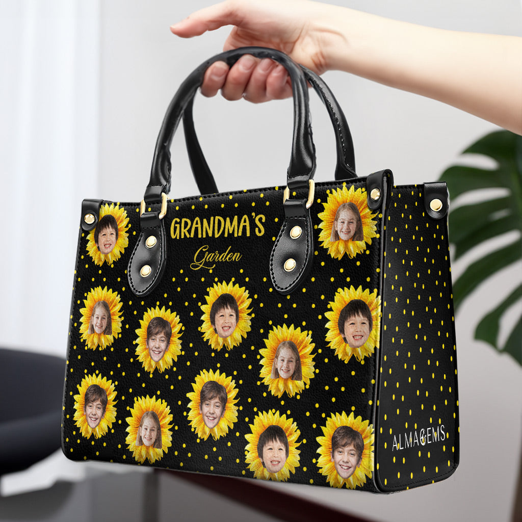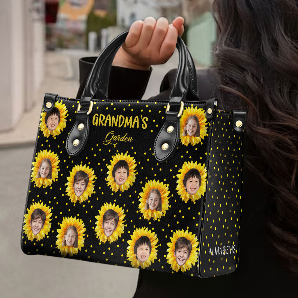 Grandma's Garden - Personalized Custom Leather Handbag, All Over Print Tote - Gift For Family