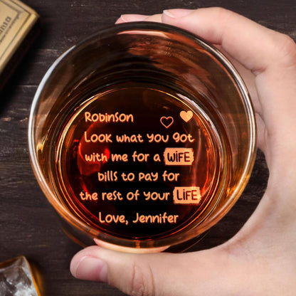 Look What You Got With Me For A Wife, Personalized Whiskey Glass, Gift For Husband