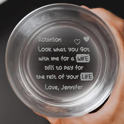 Look What You Got With Me For A Wife - Personalized Engraved Whiskey Glass - CPL377_EWG