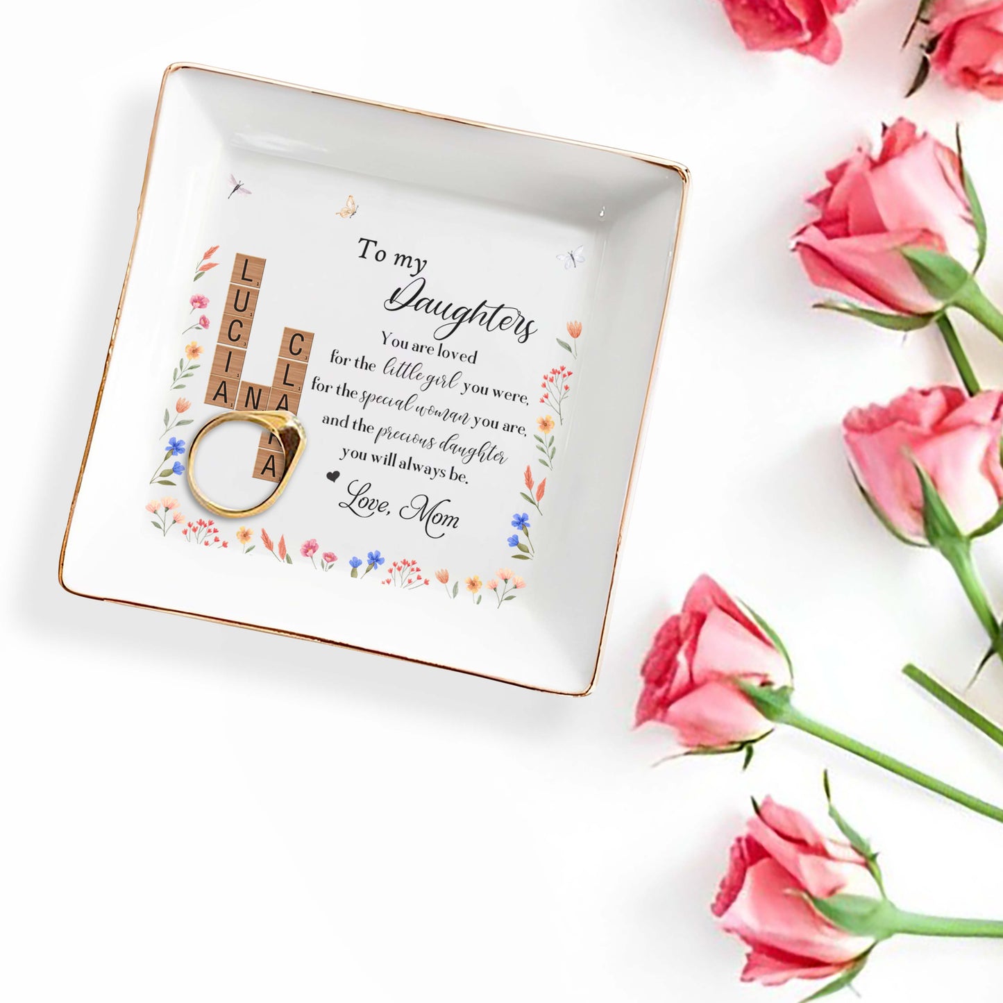 To My Daughters - Love, Mom Personalized Custom Jewelry Dish - Gift for Daughters & Family