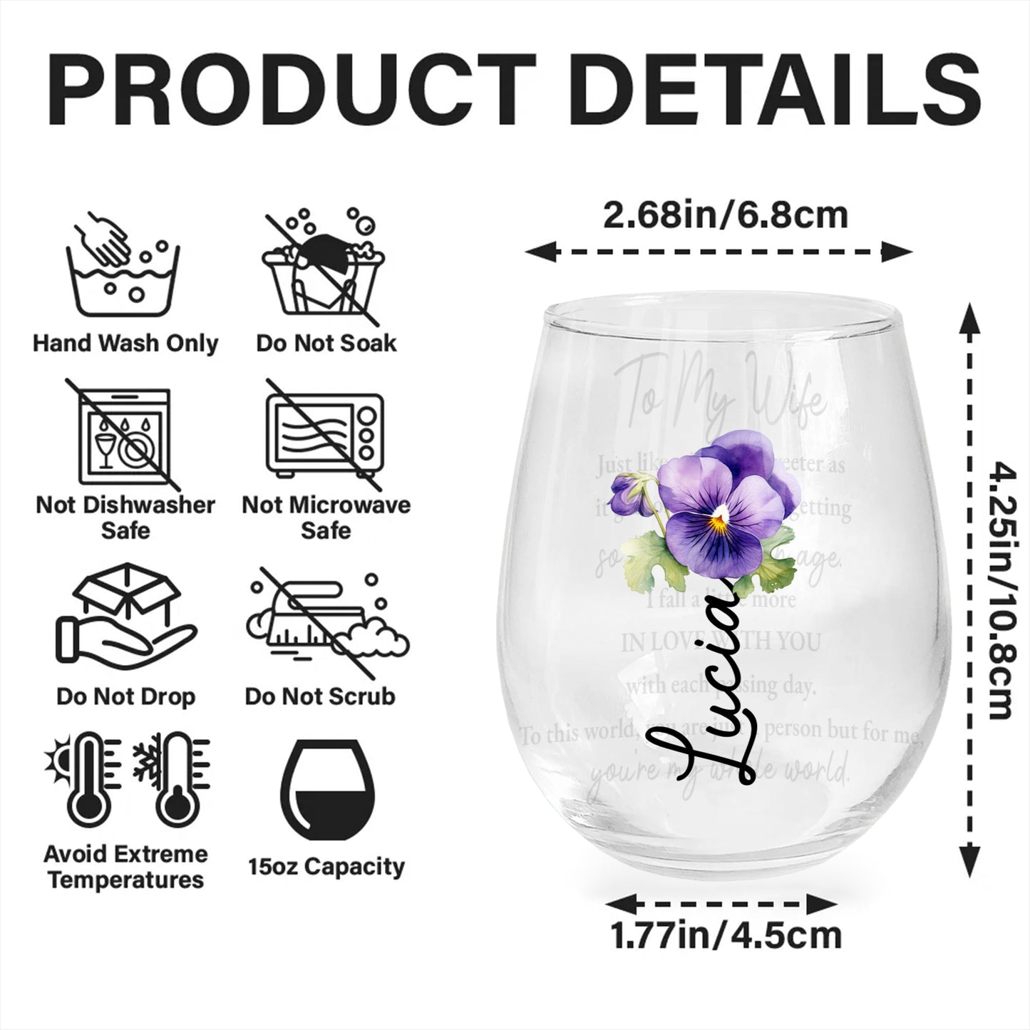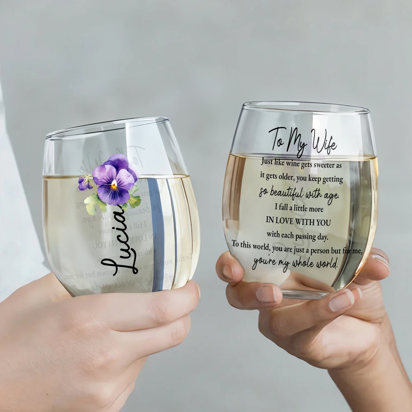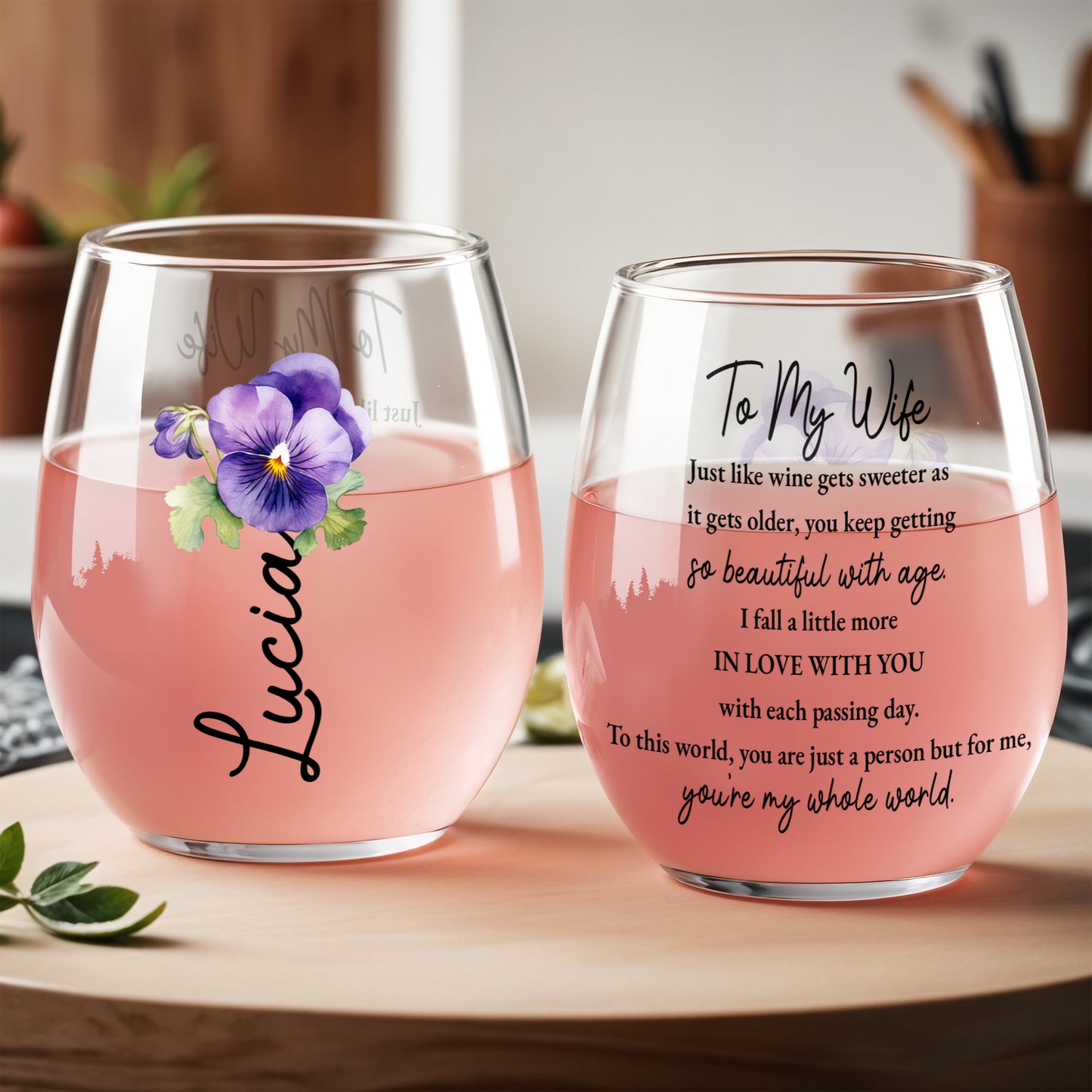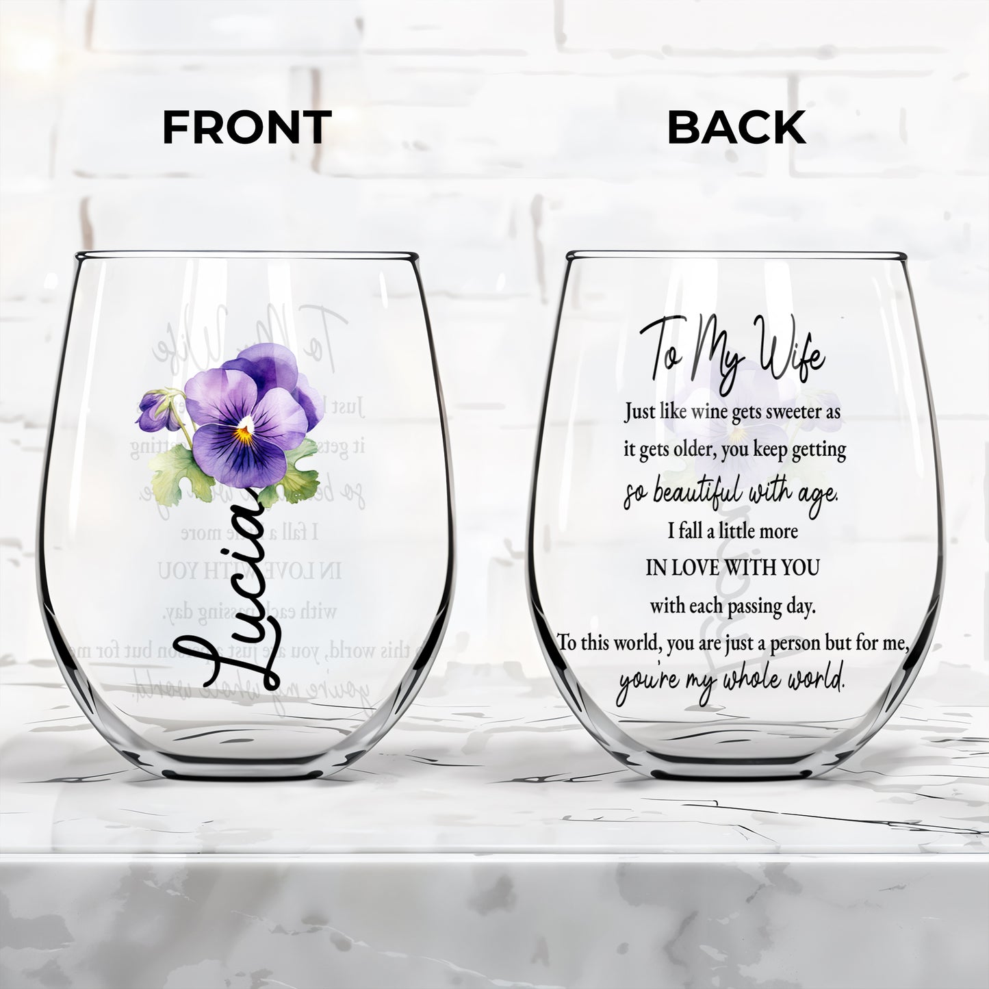 Love With Age Wine Glass Featuring Flowers and Sweet Message - Personalized Stemless Wine Glass - WIF042_WIGL