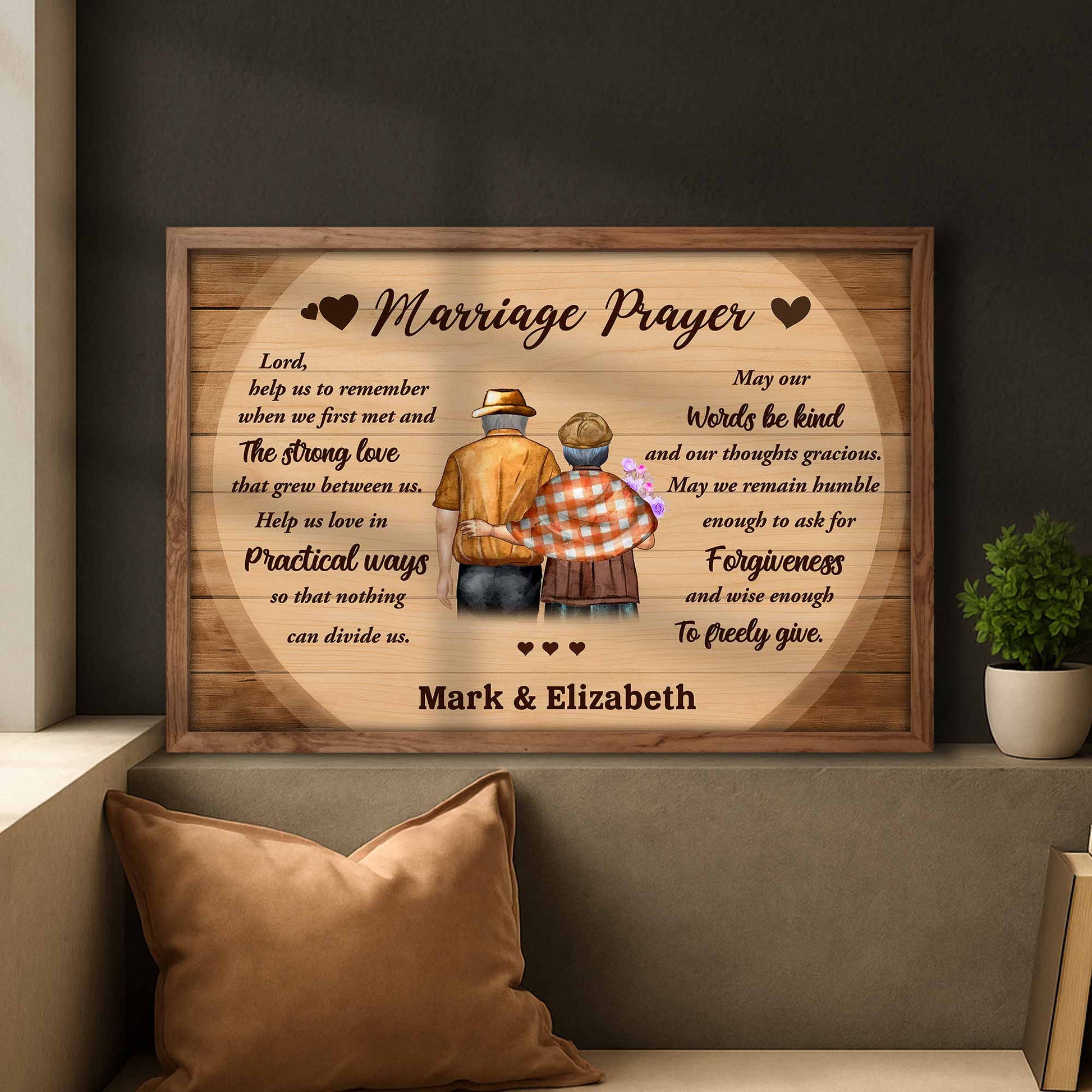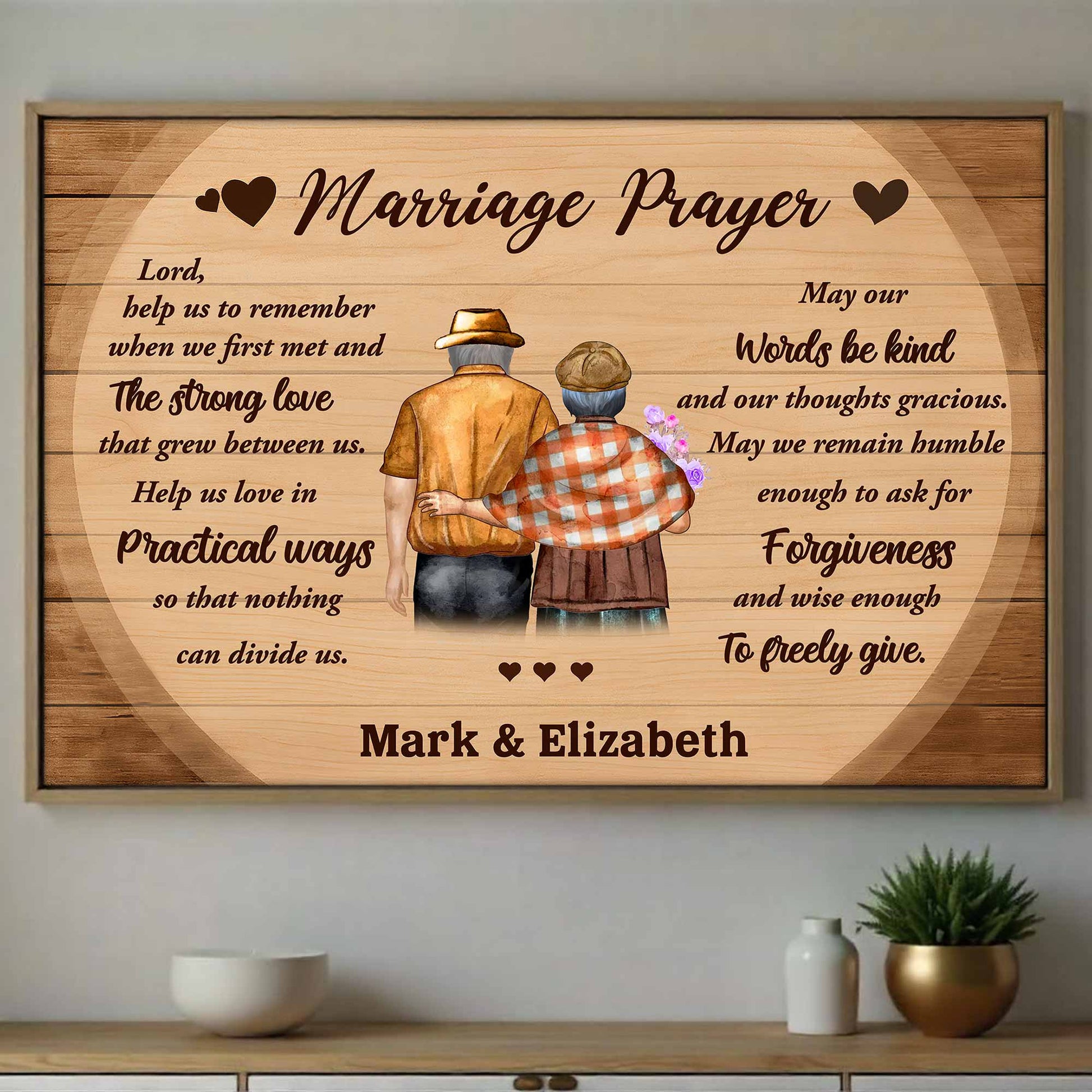 Marriage Prayer Elderly Couple Love And Unity, Personalized Custom Horizontal Poster, Gift For Couples