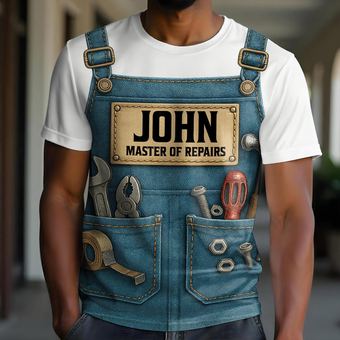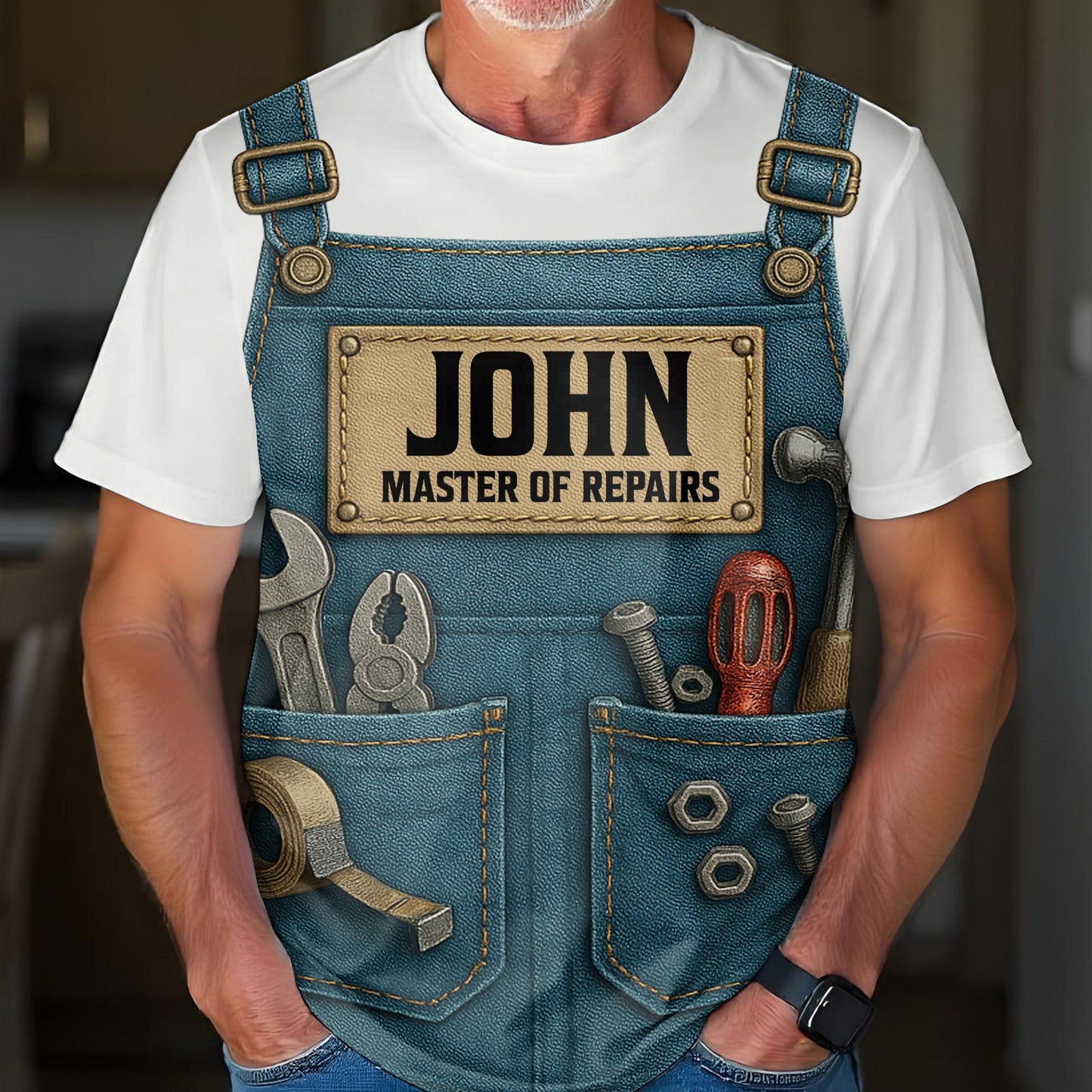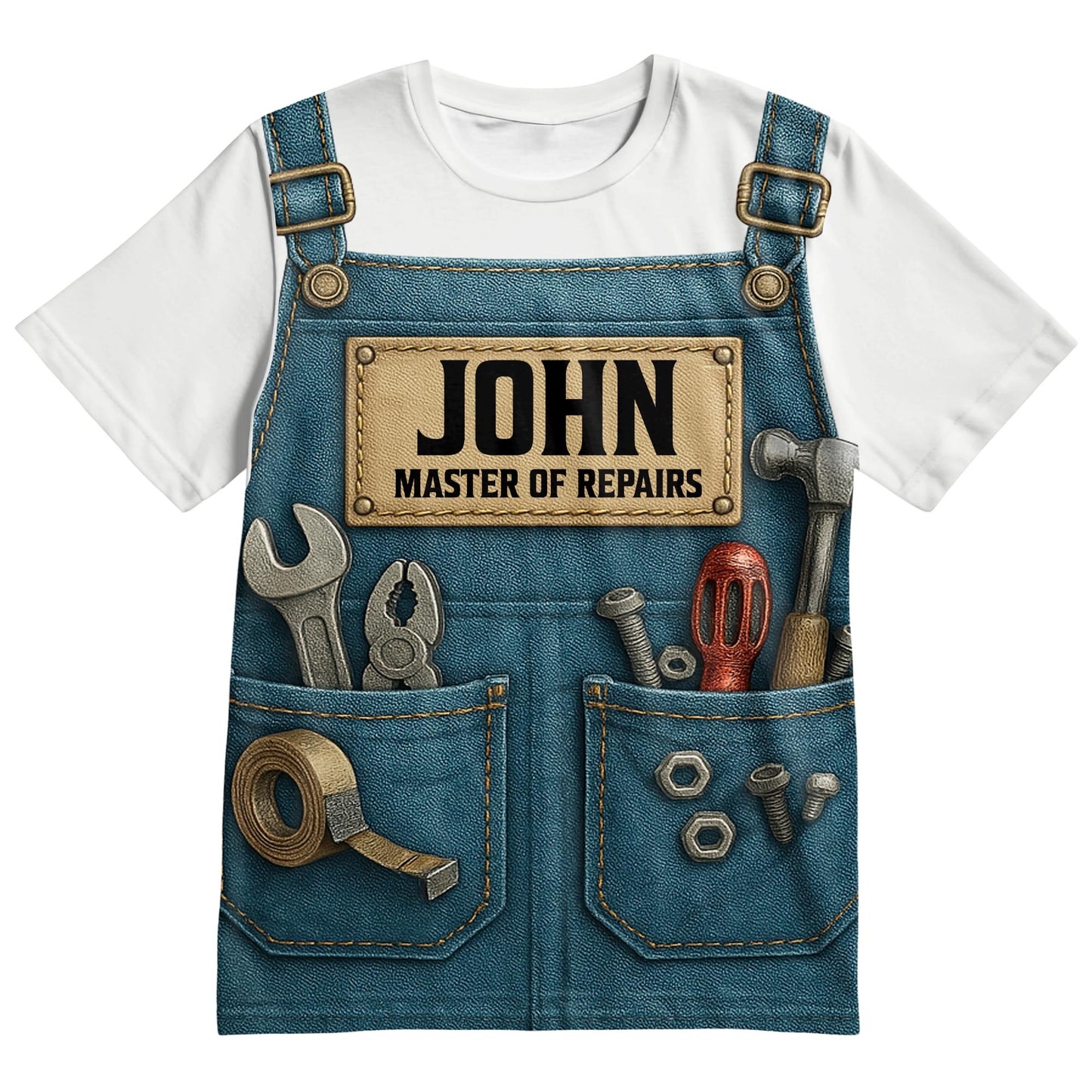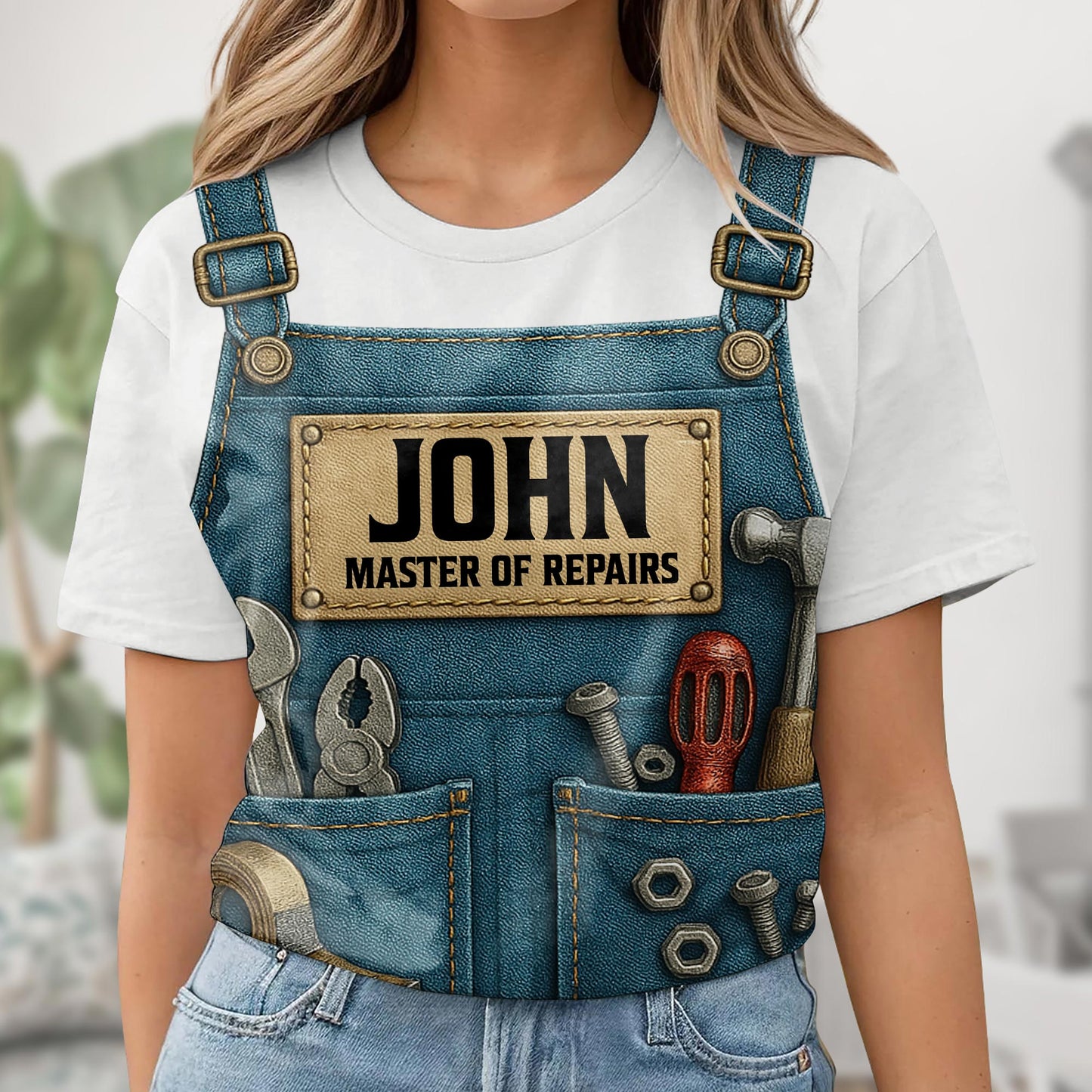 Master Of Repairs, Tools And Tool Belt, Personalized Custom Unisex All-Over Printed T-Shirt, Gift For Handyman