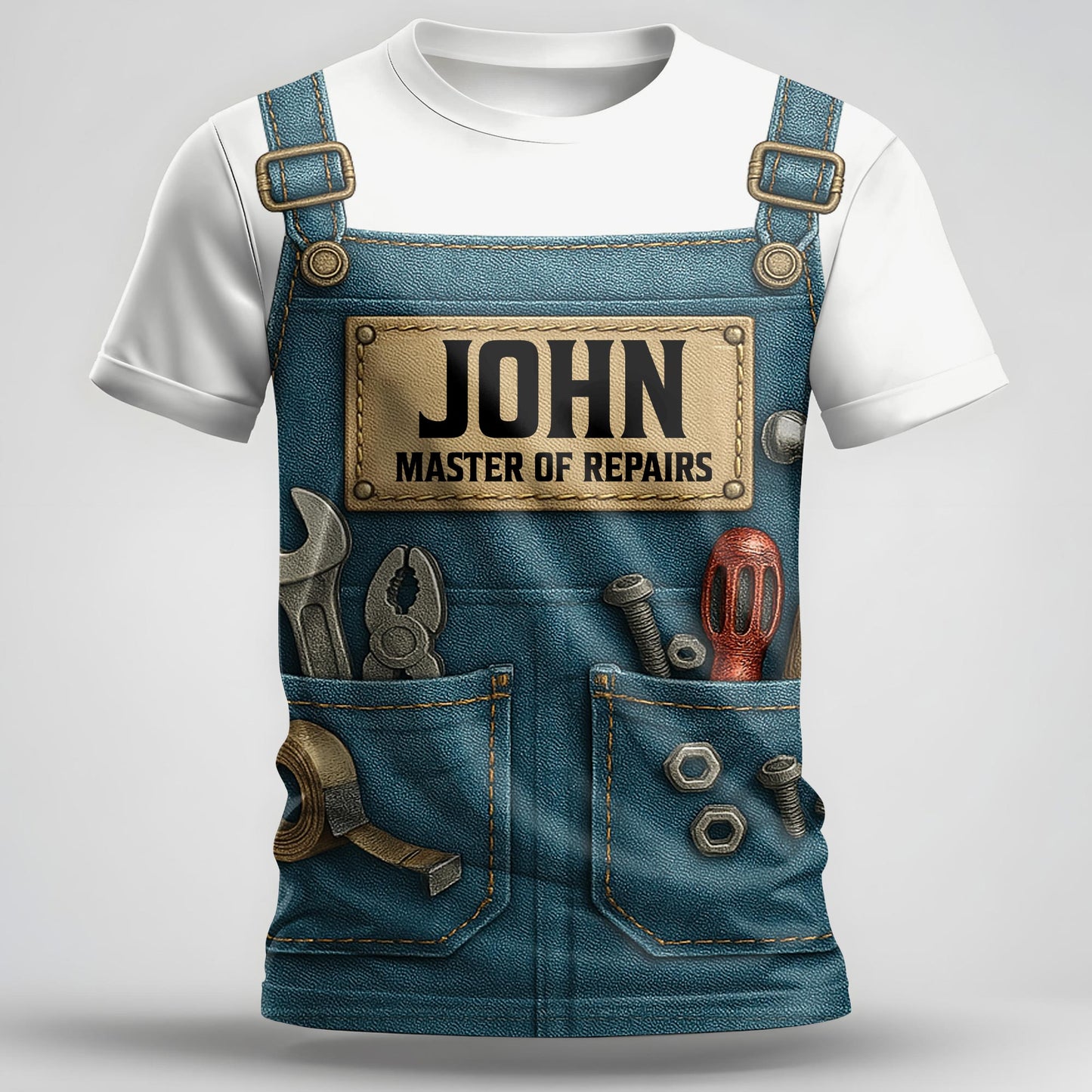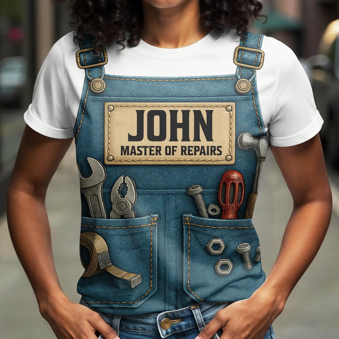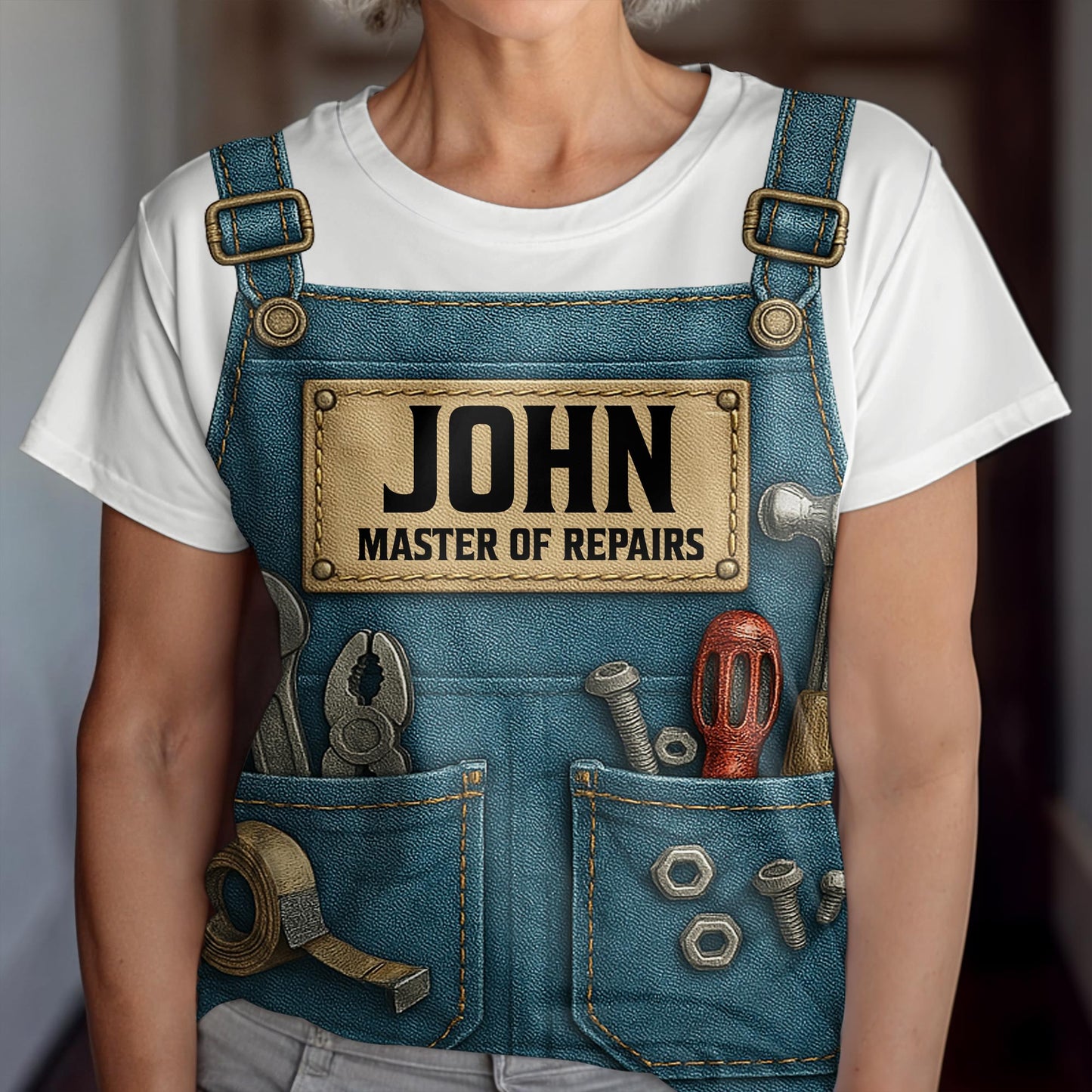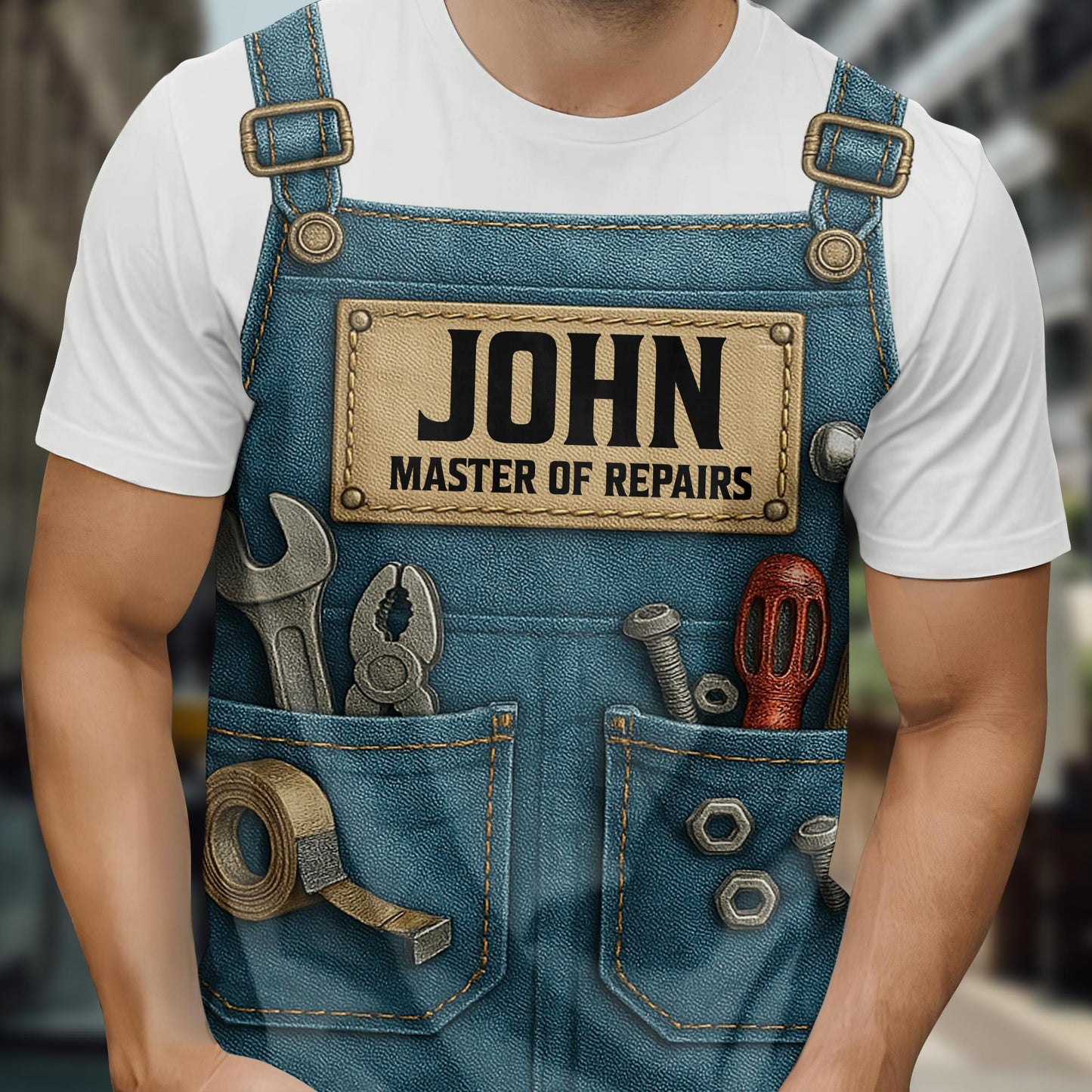 Master Of Repairs, Tools And Tool Belt, Personalized Custom Unisex All-Over Printed T-Shirt, Gift For Handyman
