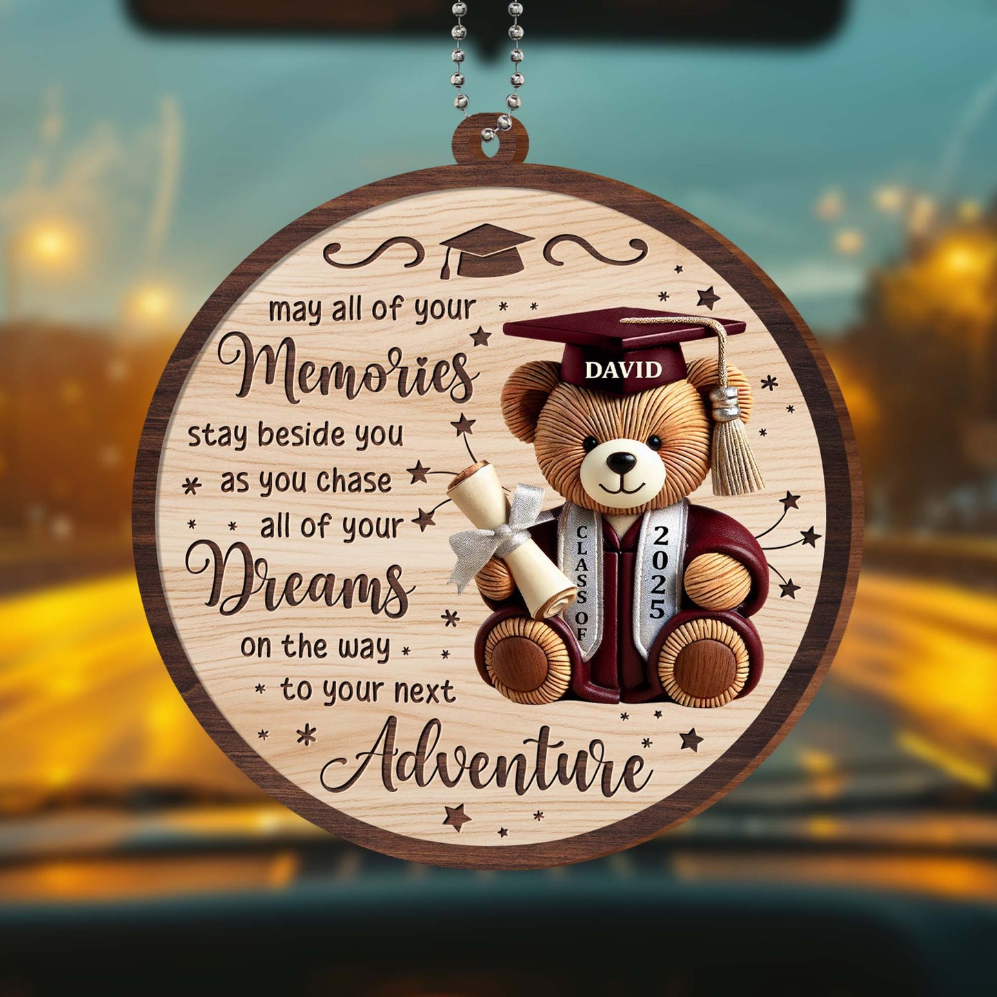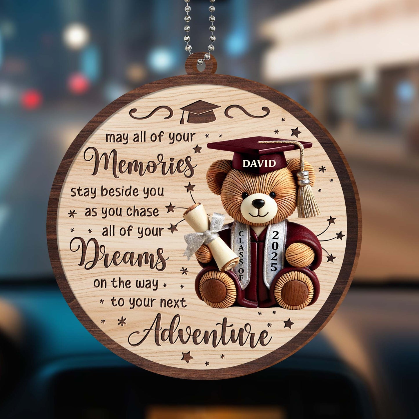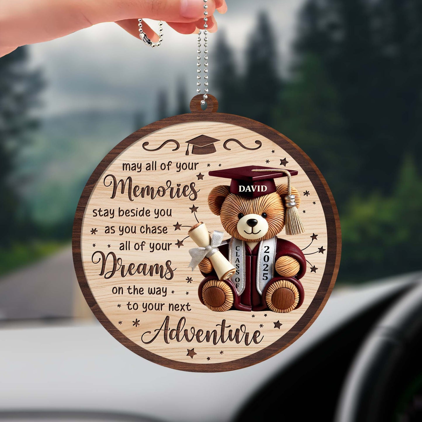May All Of Your Memories Stay Beside You, Teddy Bear and Graduation Cap, Personalized Custom Wood Ornament, Car Hanging Ornament, Gift For Graduates