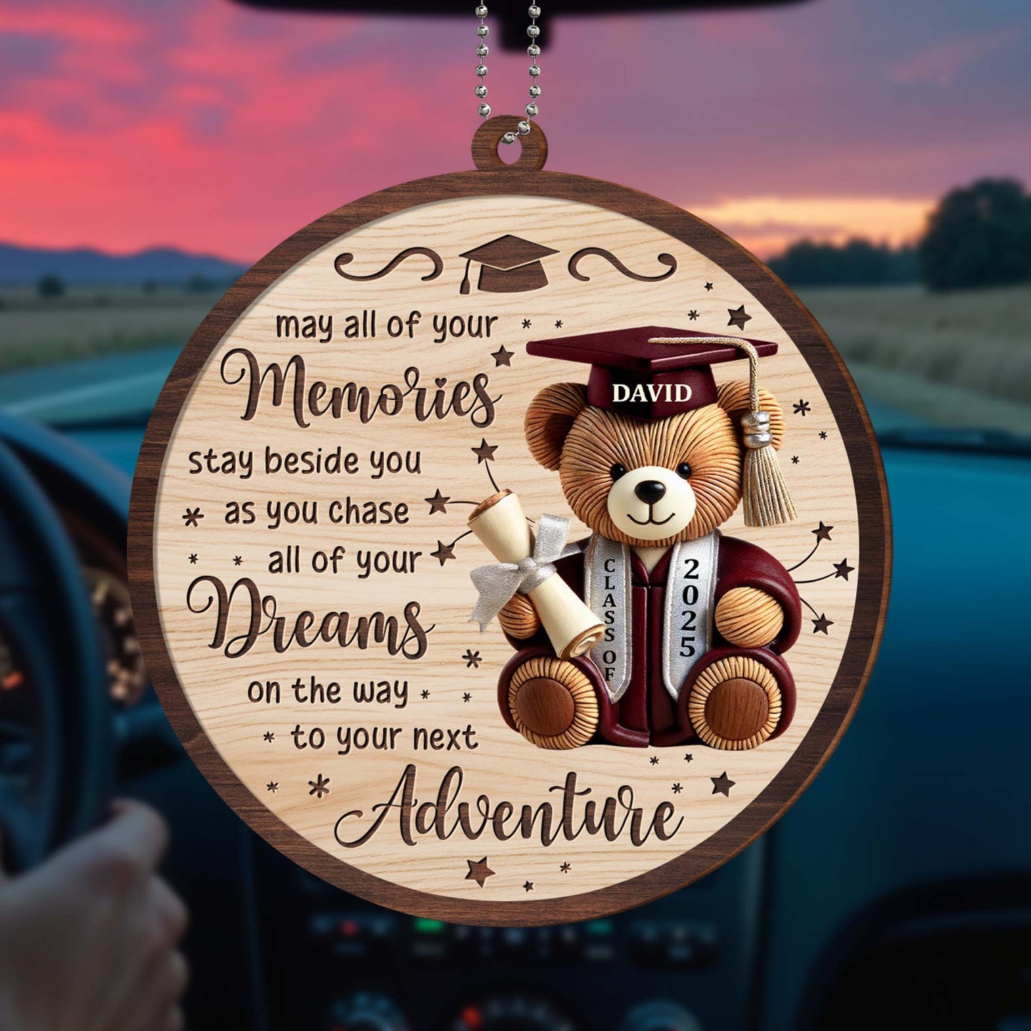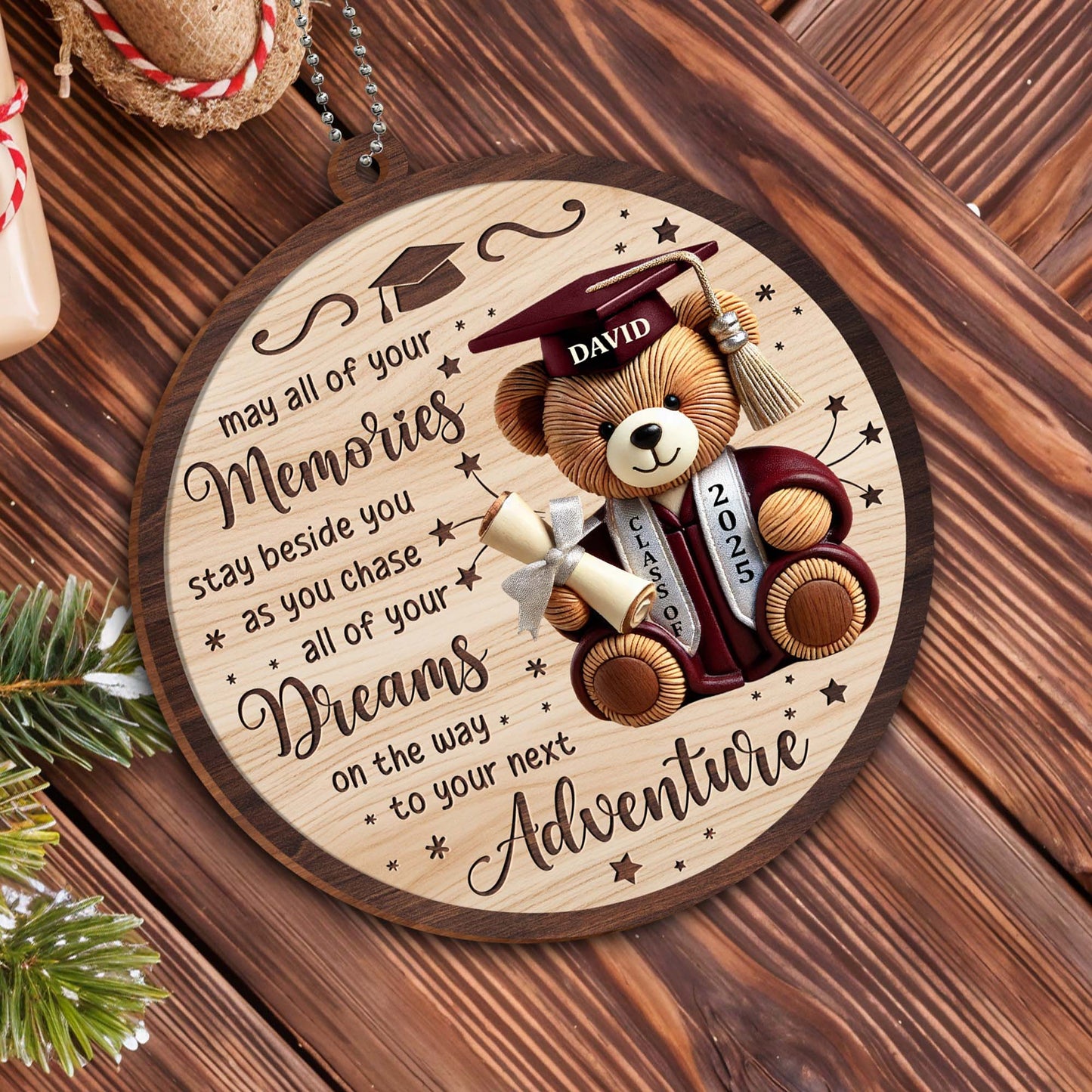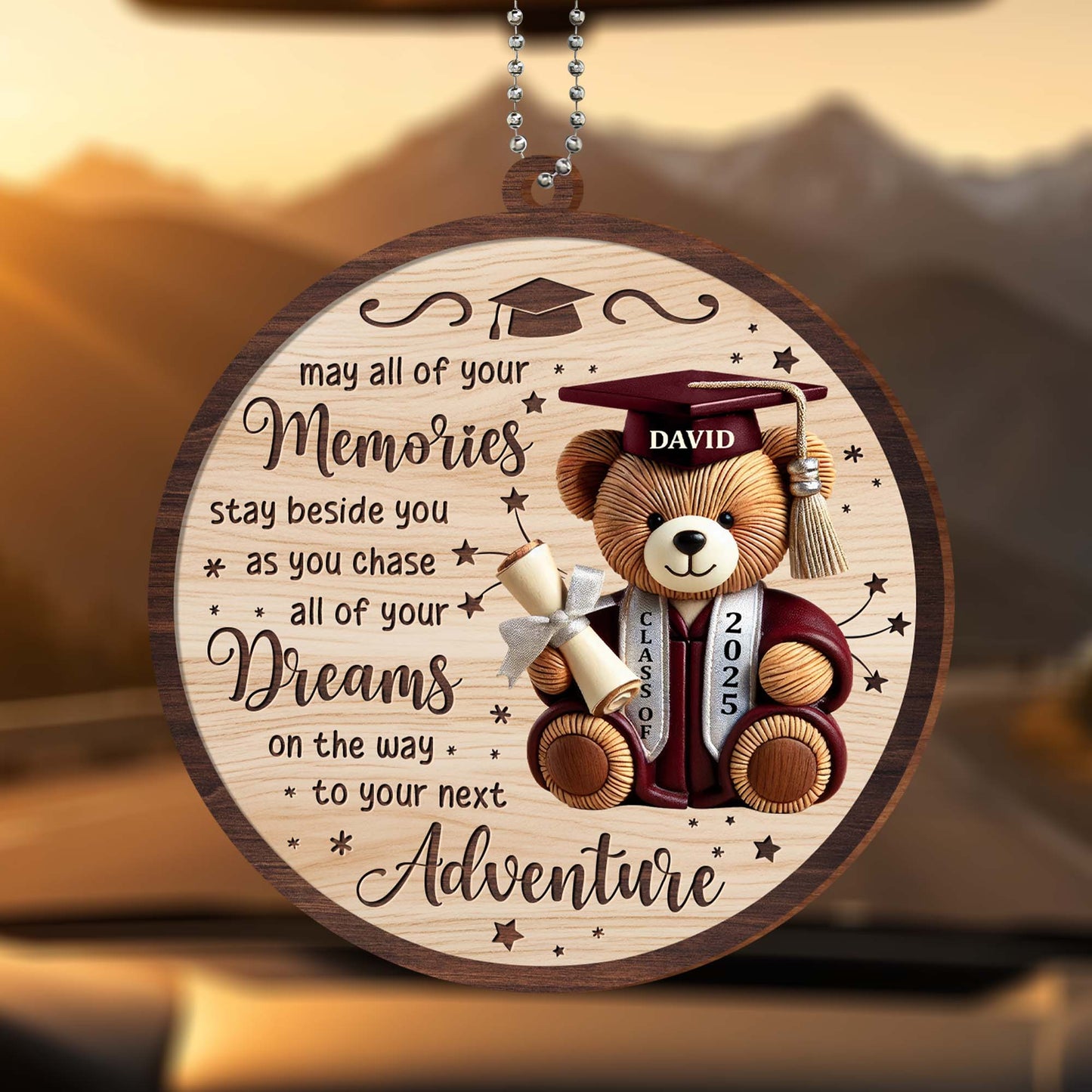 May All Of Your Memories Stay Beside You, Teddy Bear and Graduation Cap, Personalized Custom Wood Ornament, Car Hanging Ornament, Gift For Graduates