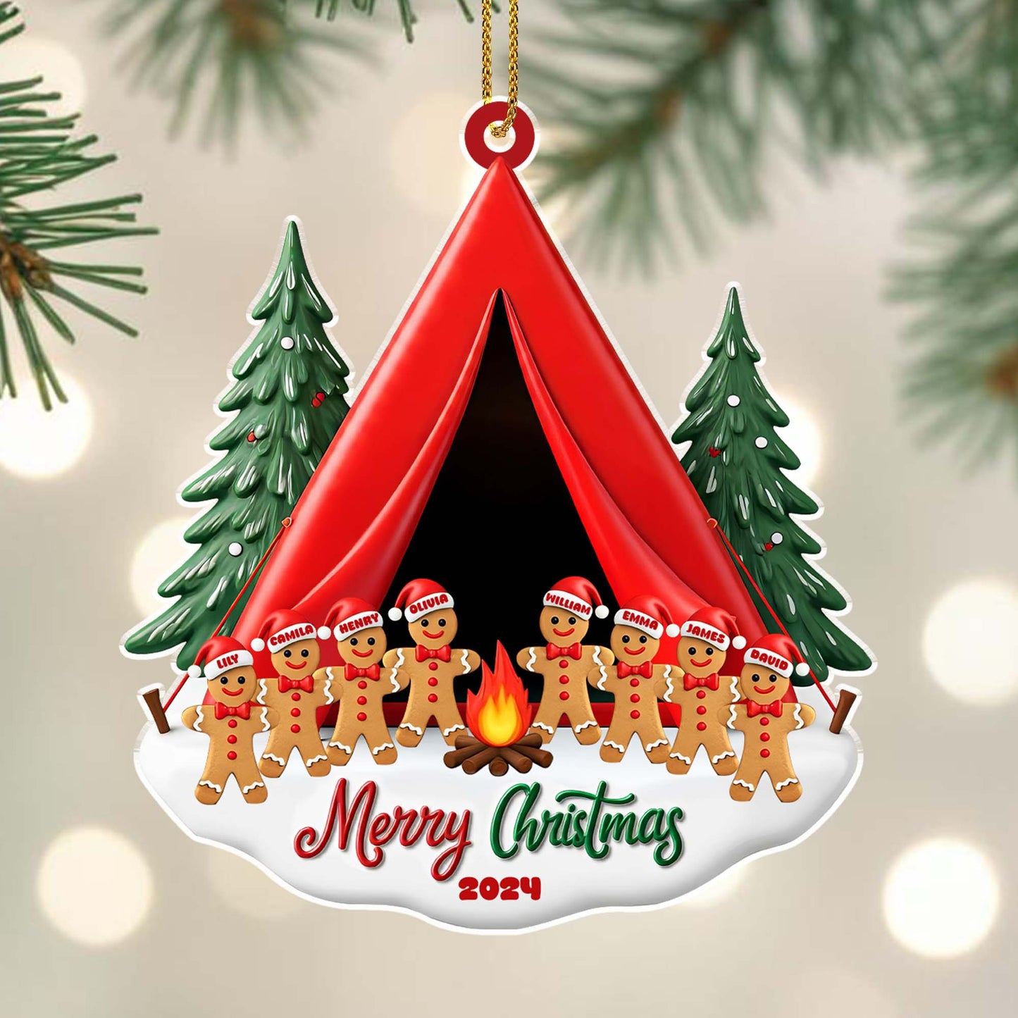 Merry Christmas Gingerbread Men Camping Scene - Personalized Custom Acrylic Ornament, Christmas Gift - BST081_ACO