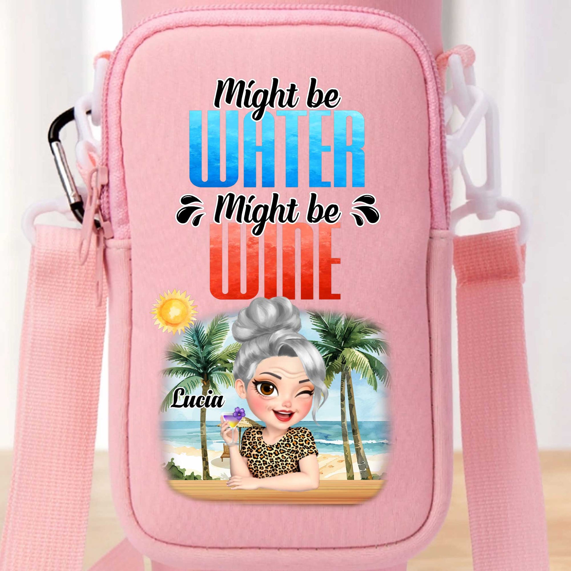 Might Be Water Might Be Wine Beach Design, Custom Water Bottle Carrier Bag, Gift For Beach and Wine Lovers