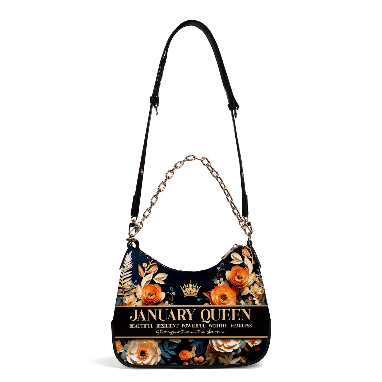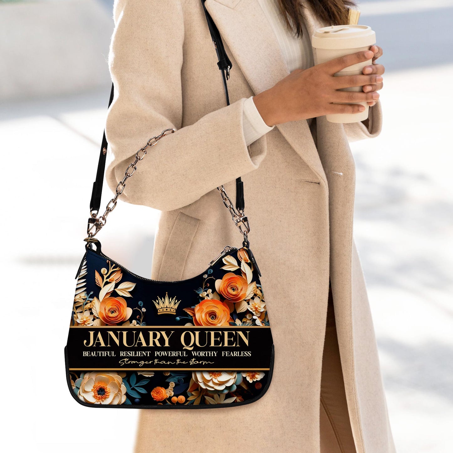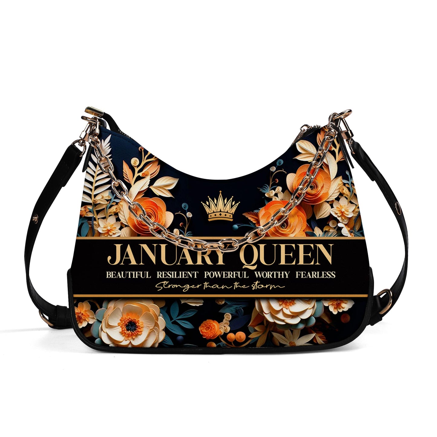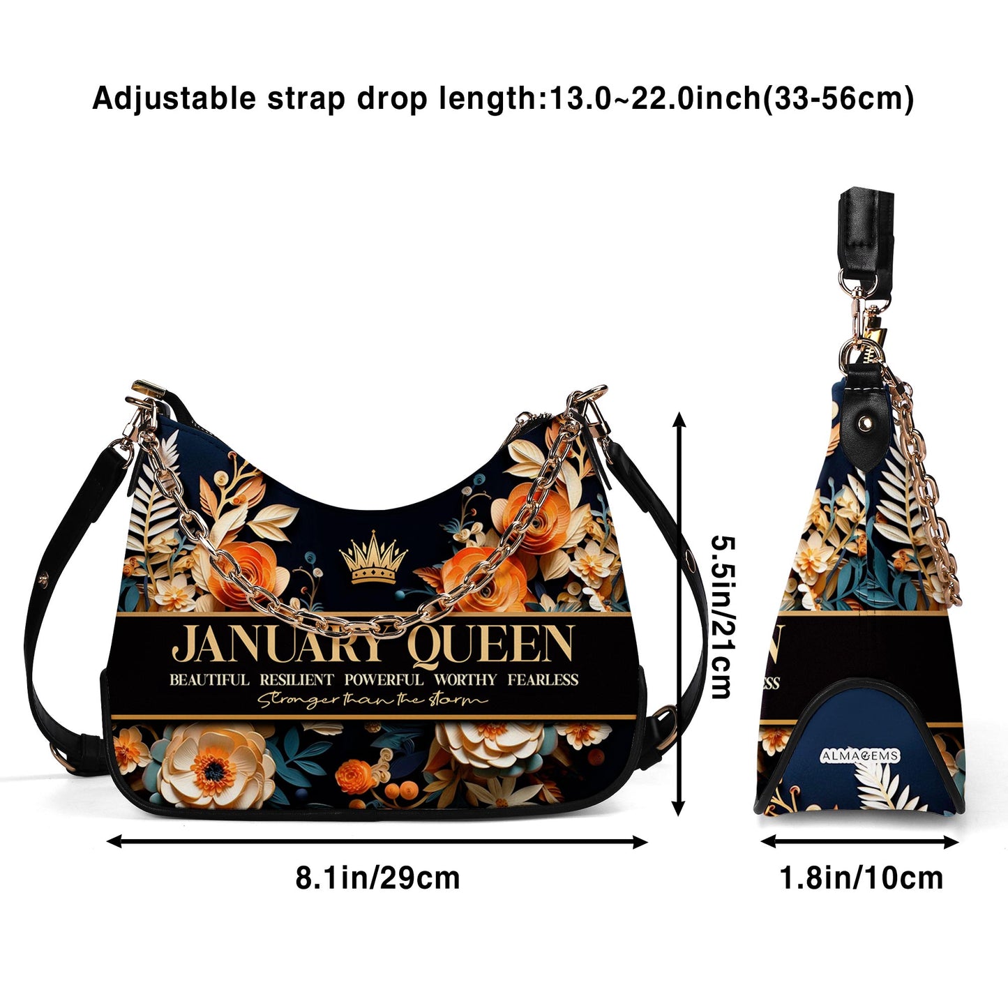 January Queen - Personalized Custom Crossbody Bag, All Over Print Chain Style - Gift for Strong Women and Birthday Celebrants