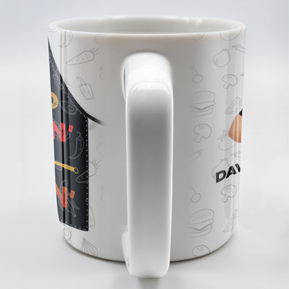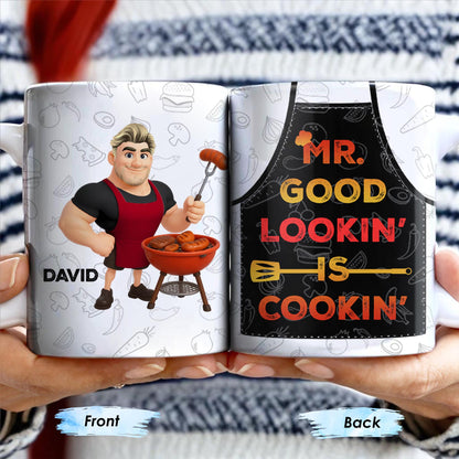 Mr. Good Lookin' Is Cookin' Apron And BBQ Grill Design - Personalized Custom Coffee Mug - GRILL004_MG