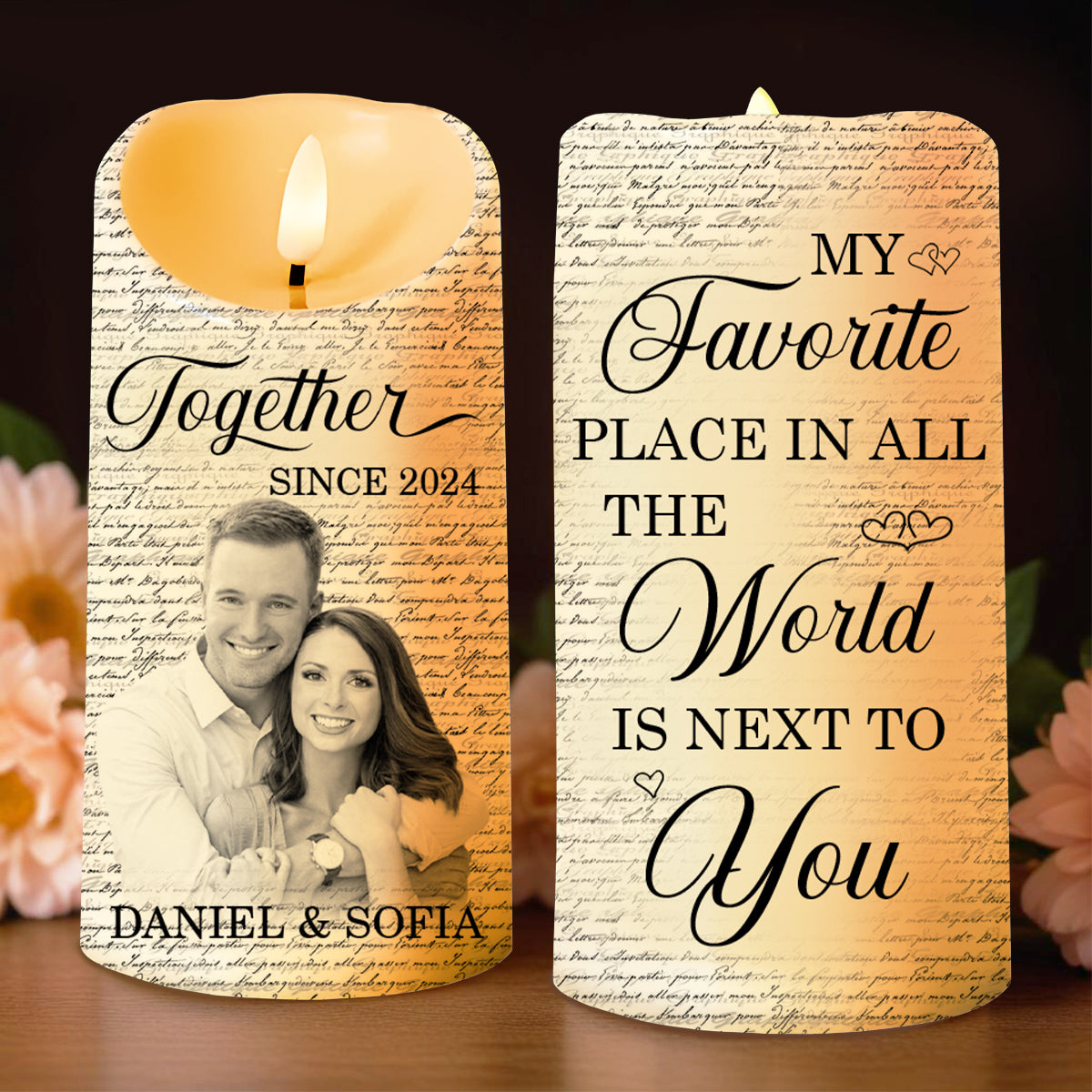 My Favorite Place In All The World - Couples Personalized Custom LED Candle - Gift For Partners
