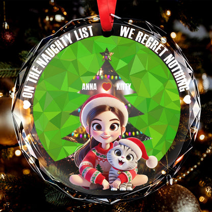 On The Naughty List And We Regret Nothing - Personalized Custom Circle Glass Ornament - Gift For Pet Owners