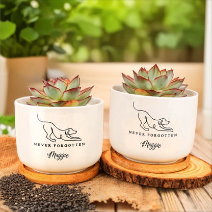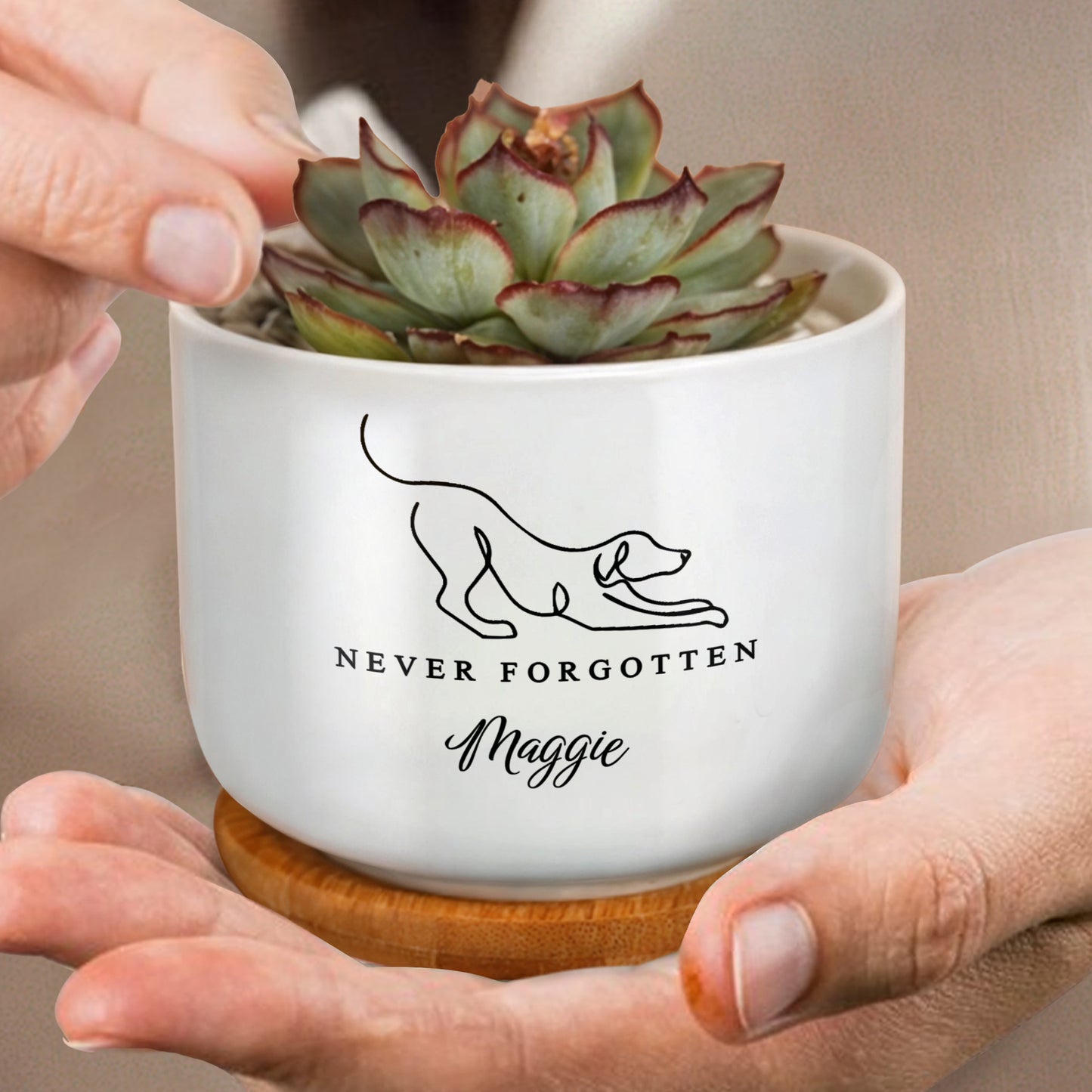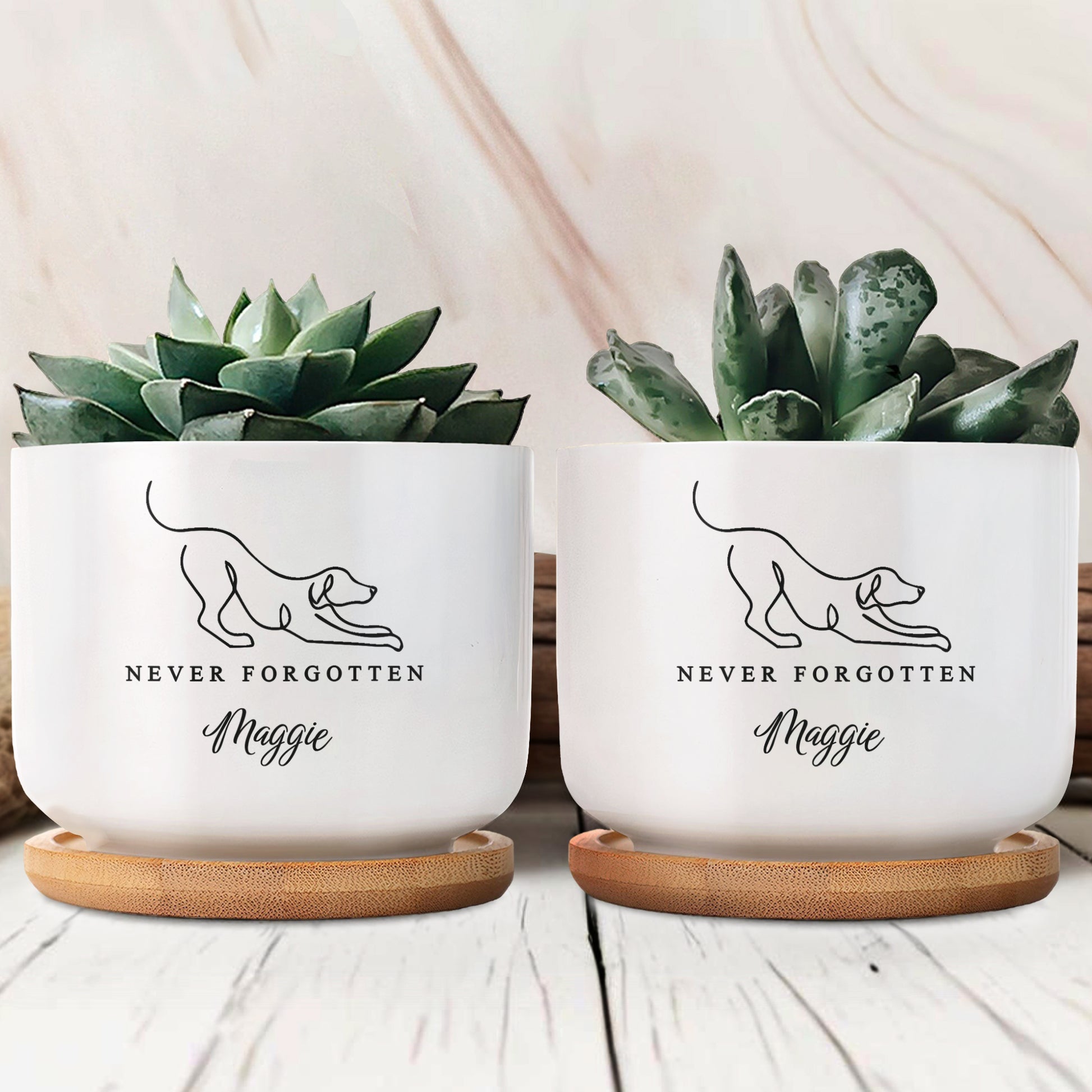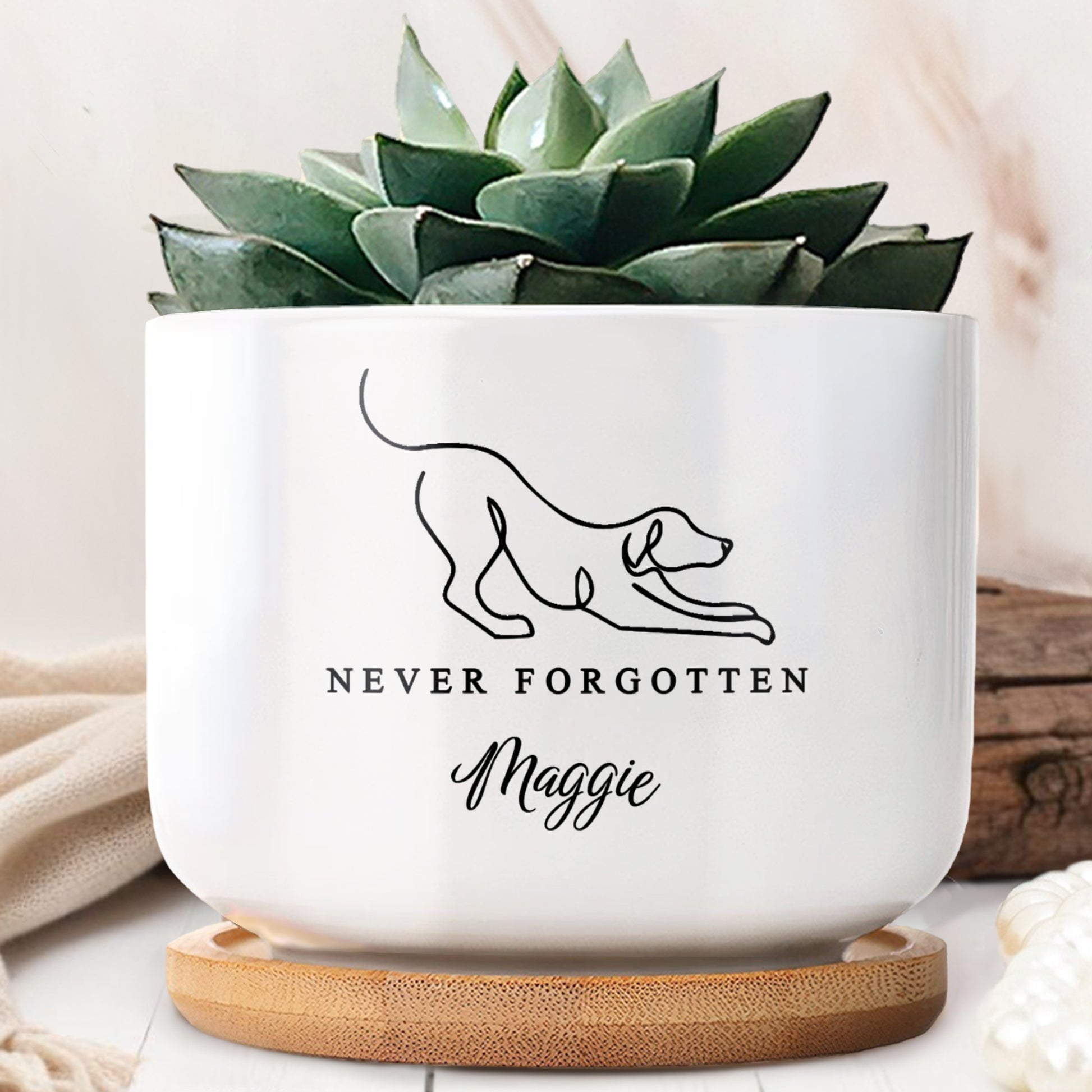 Never Forgotten, Dog And Paw Prints Ceramic Plant Pot, Gift For Dog Lovers