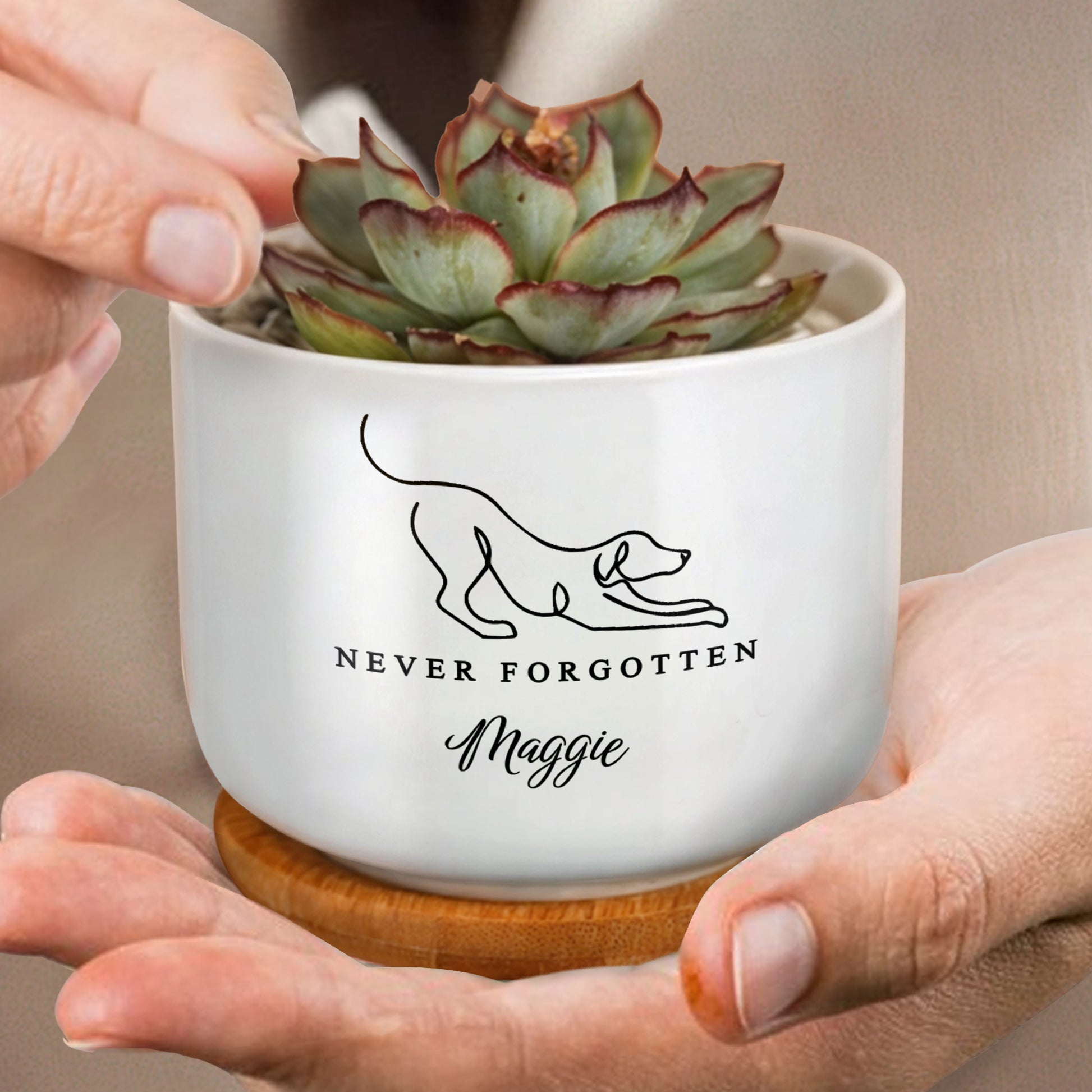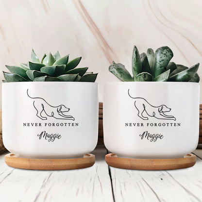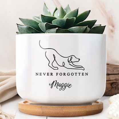 Never Forgotten, Dog And Paw Prints - Personalized Ceramic Plant Pot - PME059_CEP