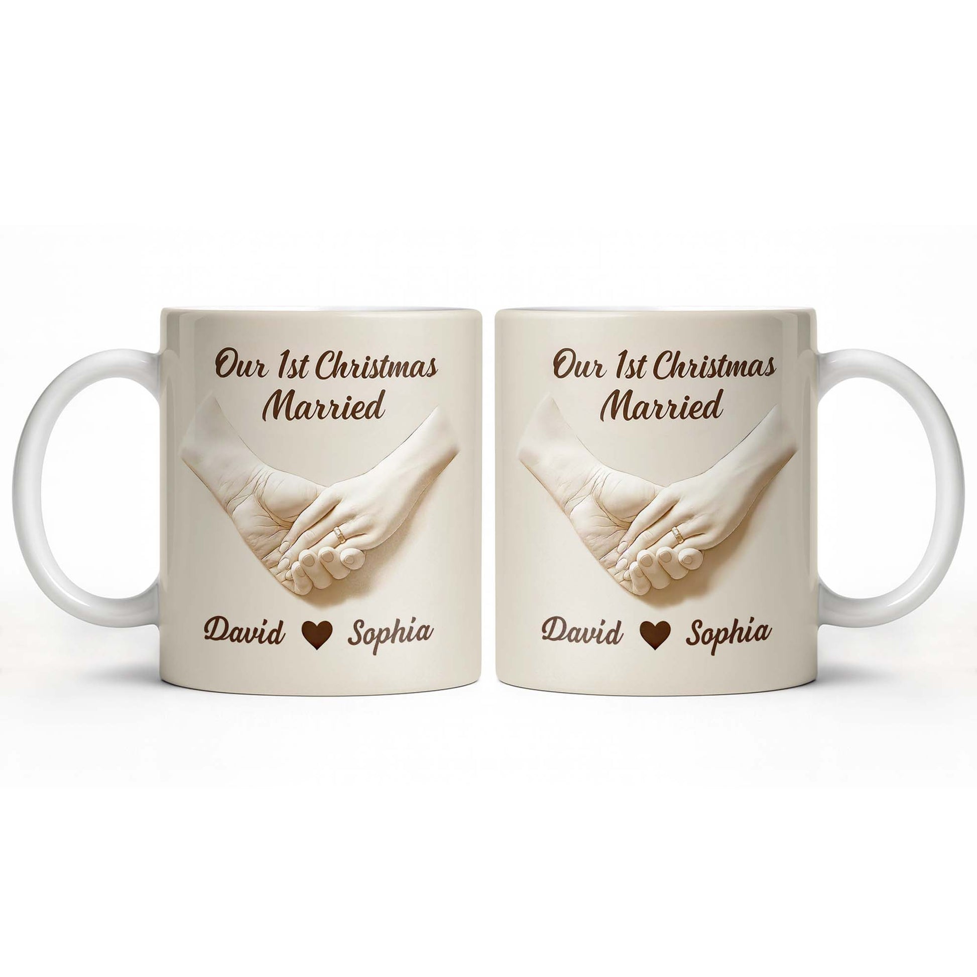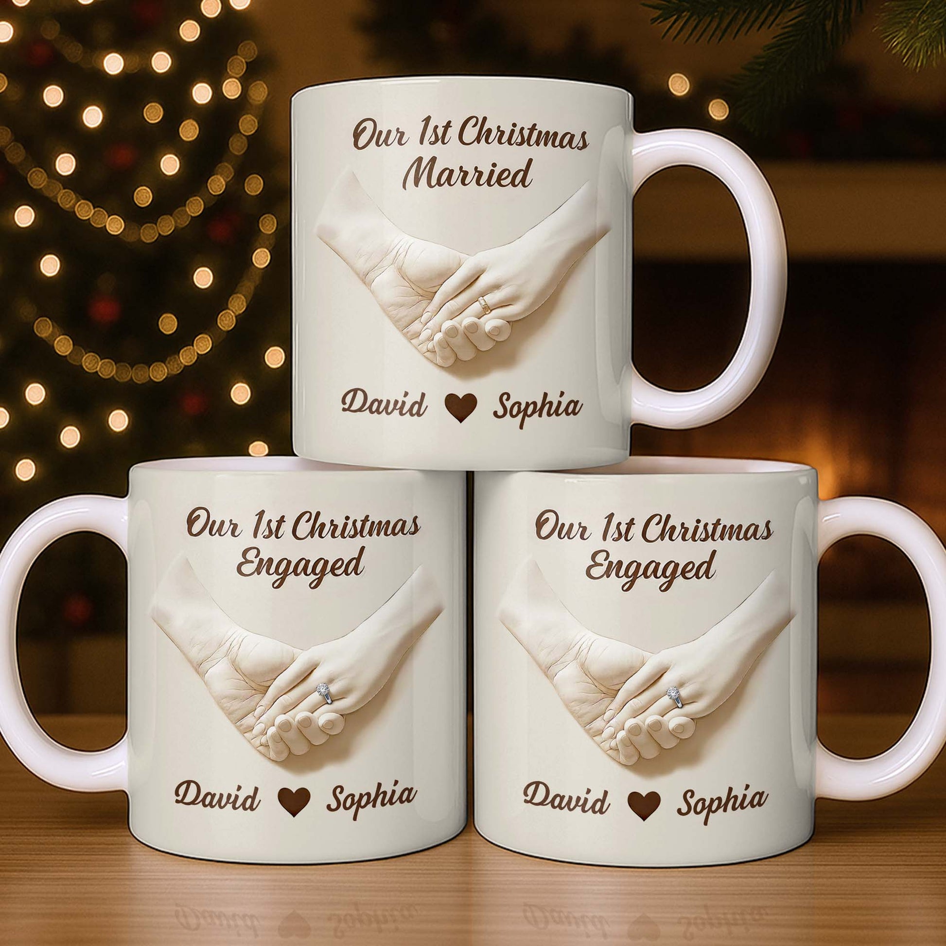 Our 1st Christmas Engaged, Hands Holding With Ring - Personalized Custom Coffee Mug - CPL773_MG