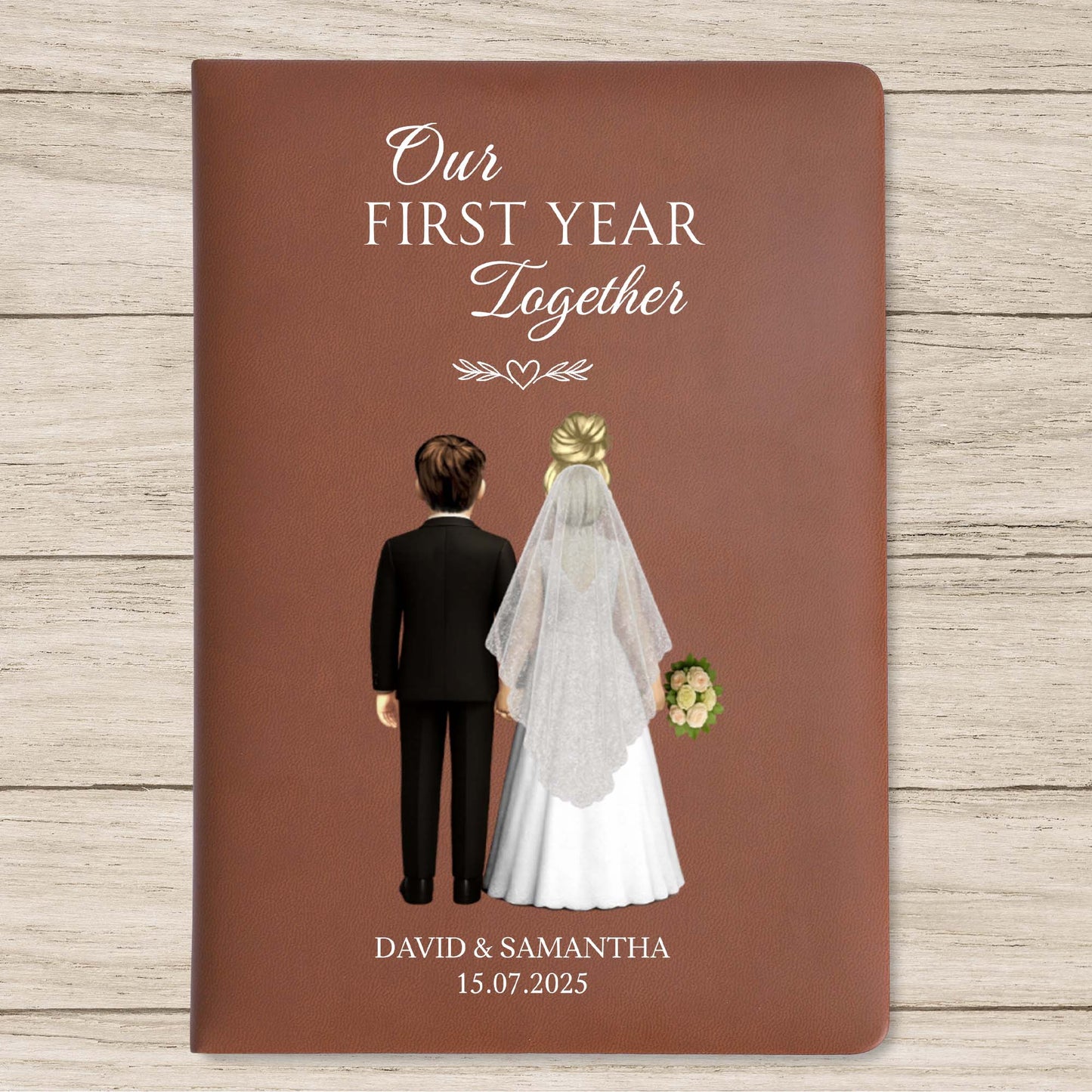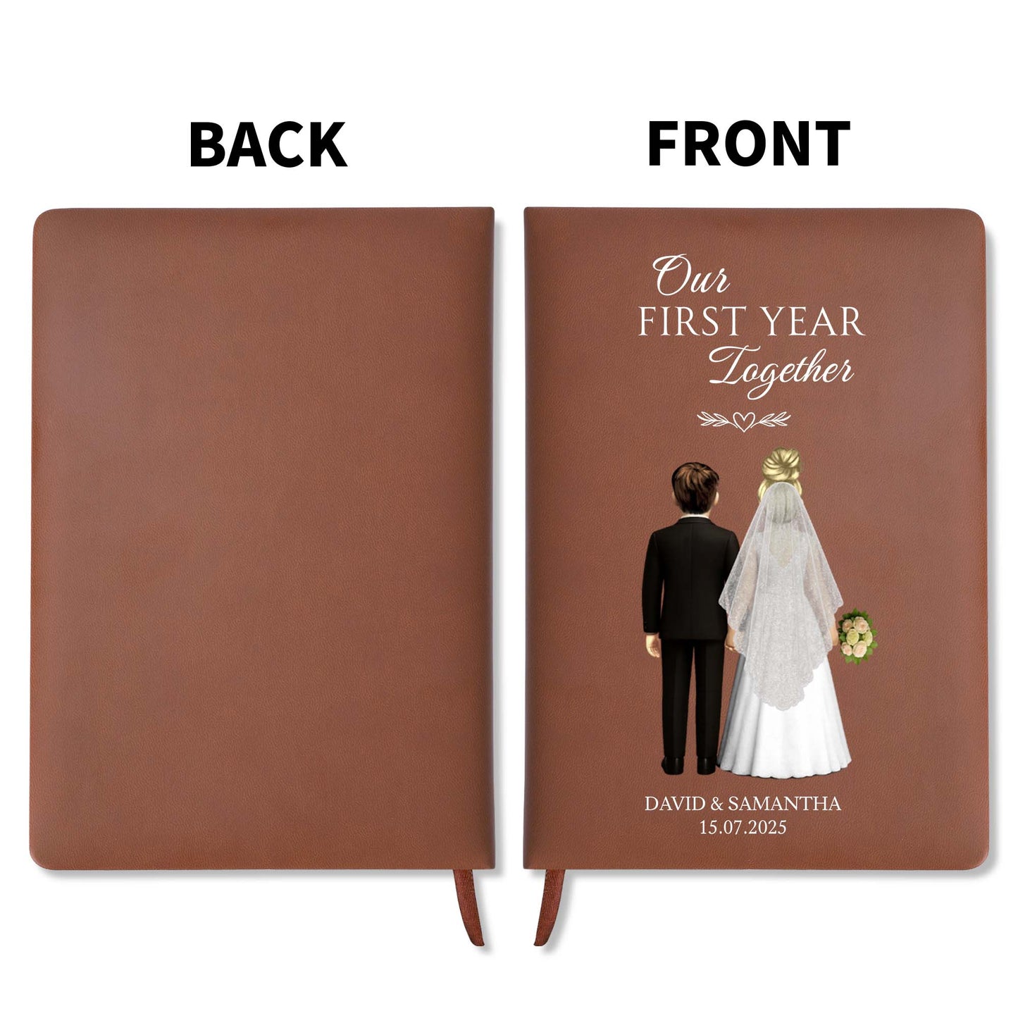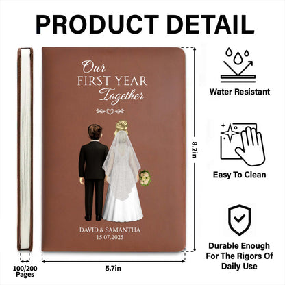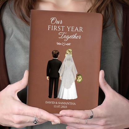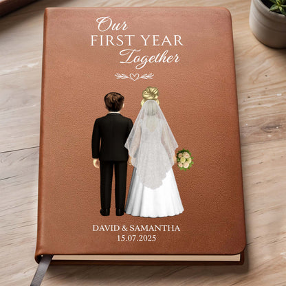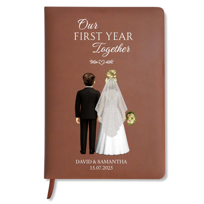 Our First Year Together, Bride And Groom - Personalized Custom Leather Journal - CPL453_JRNL