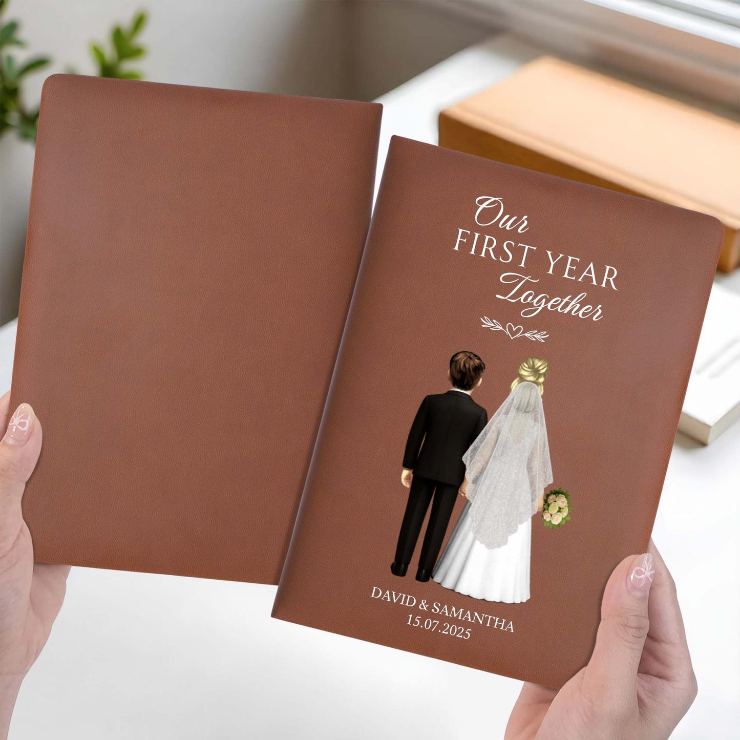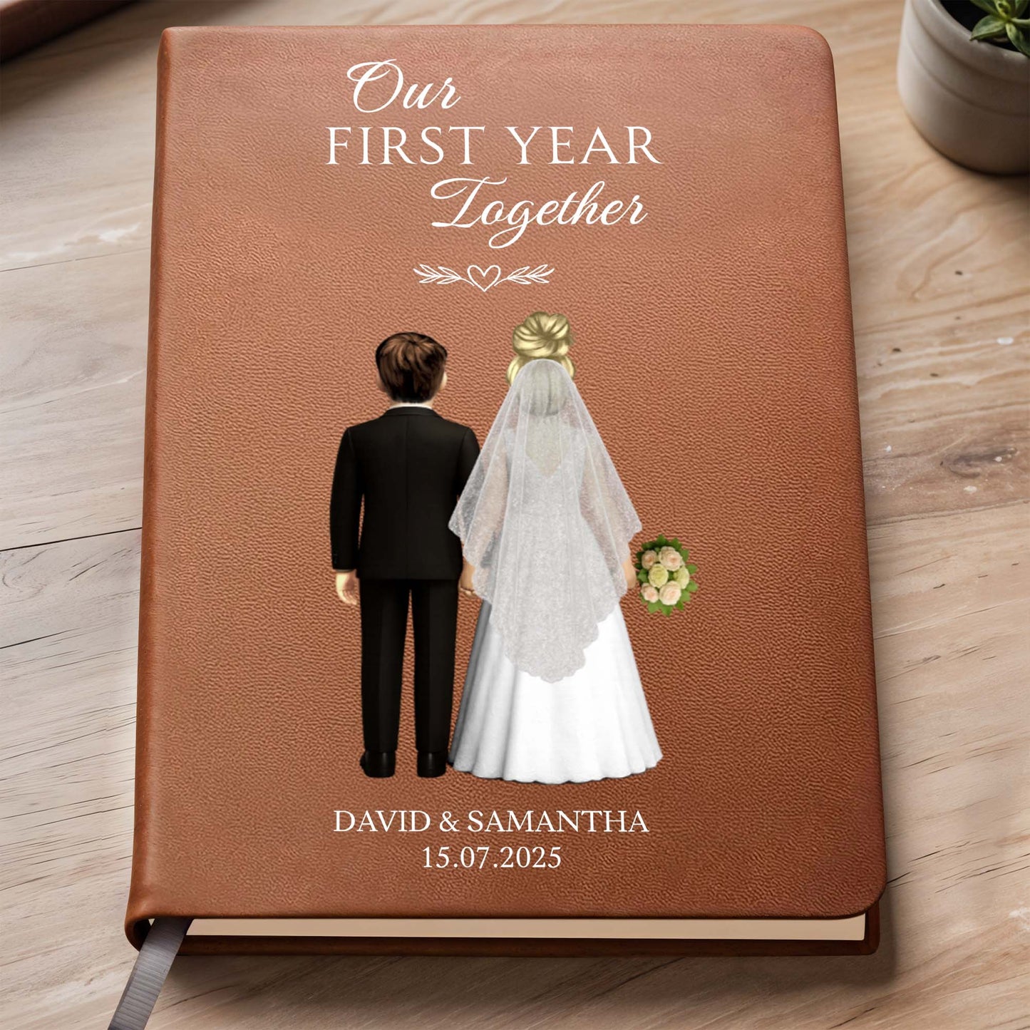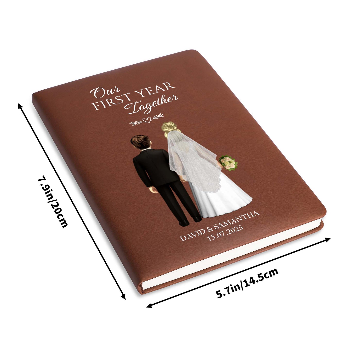 Our First Year Together, Bride And Groom - Personalized Custom Leather Journal - CPL453_JRNL