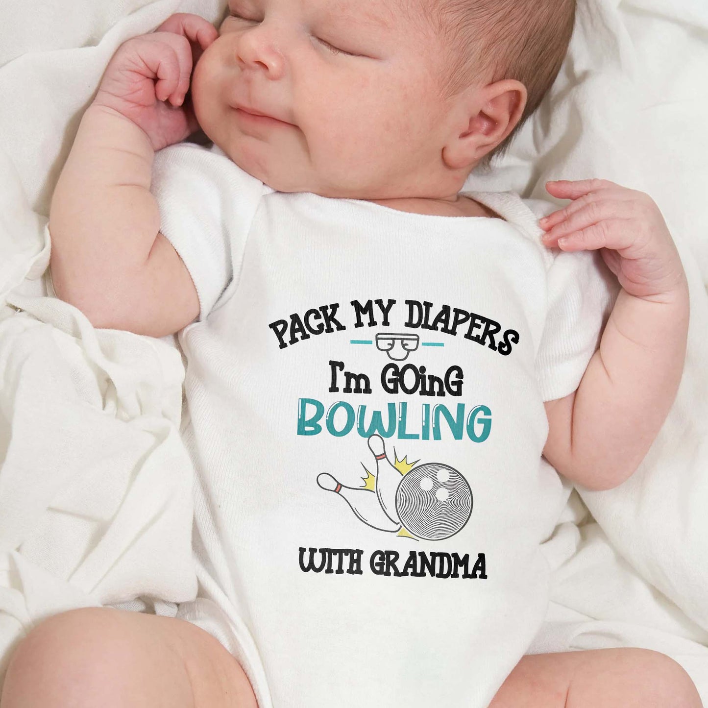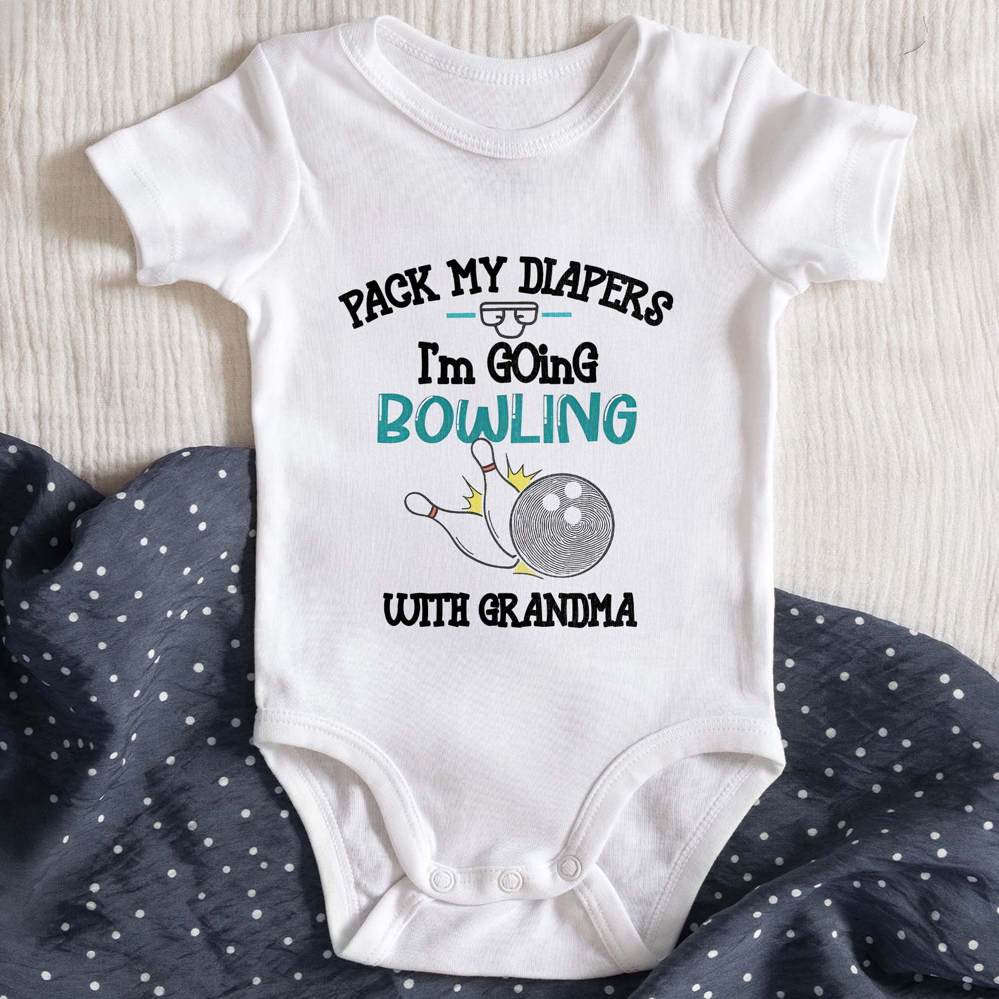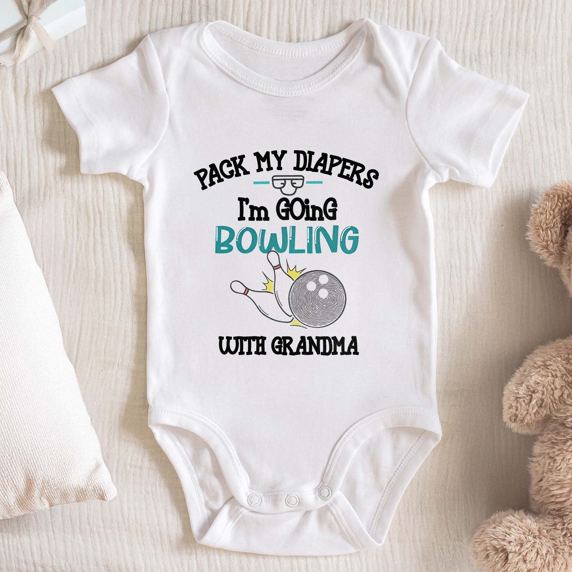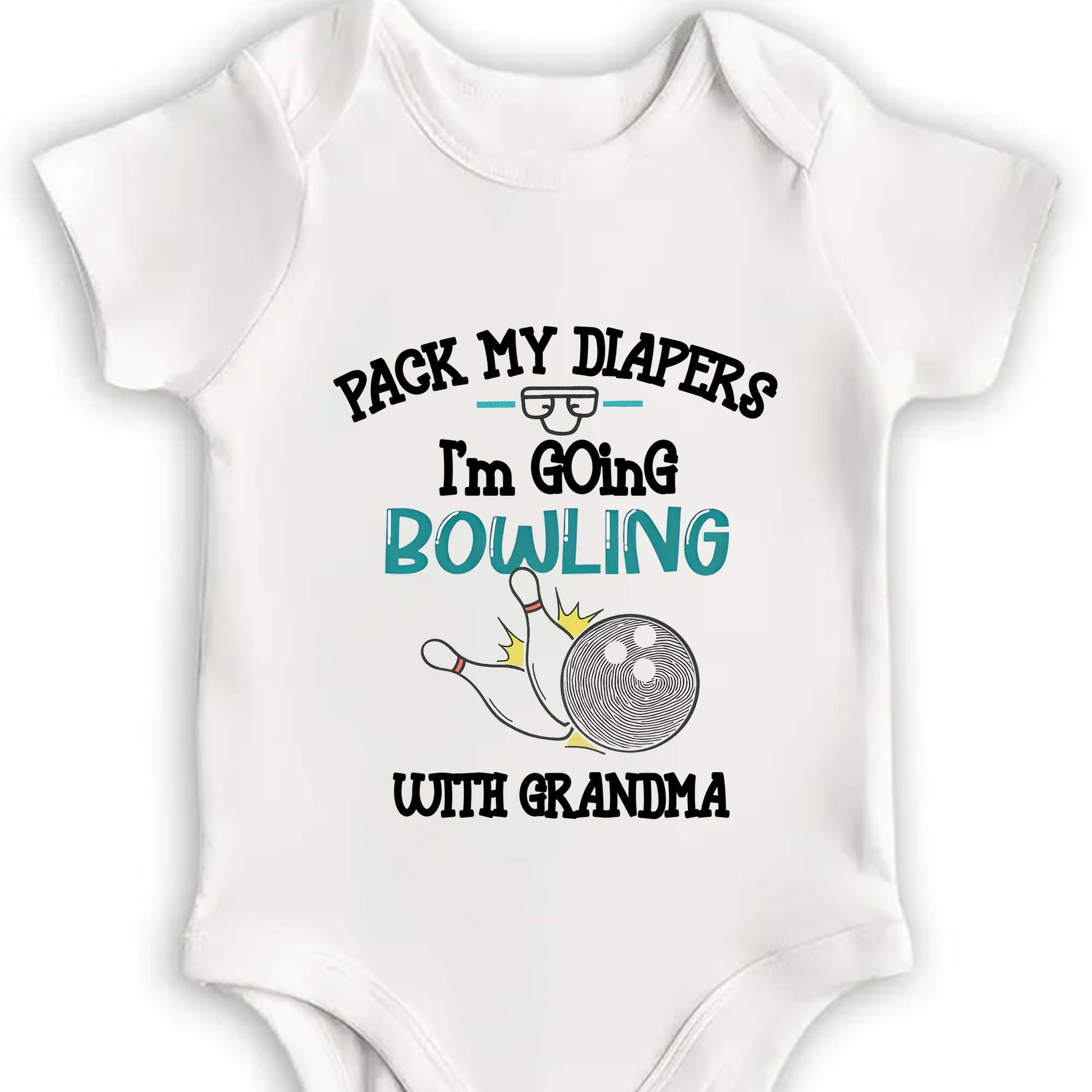 Pack My Diapers I'm Going Bowling With Grandma - Personalized Custom Baby Onesie - KID135_ONES