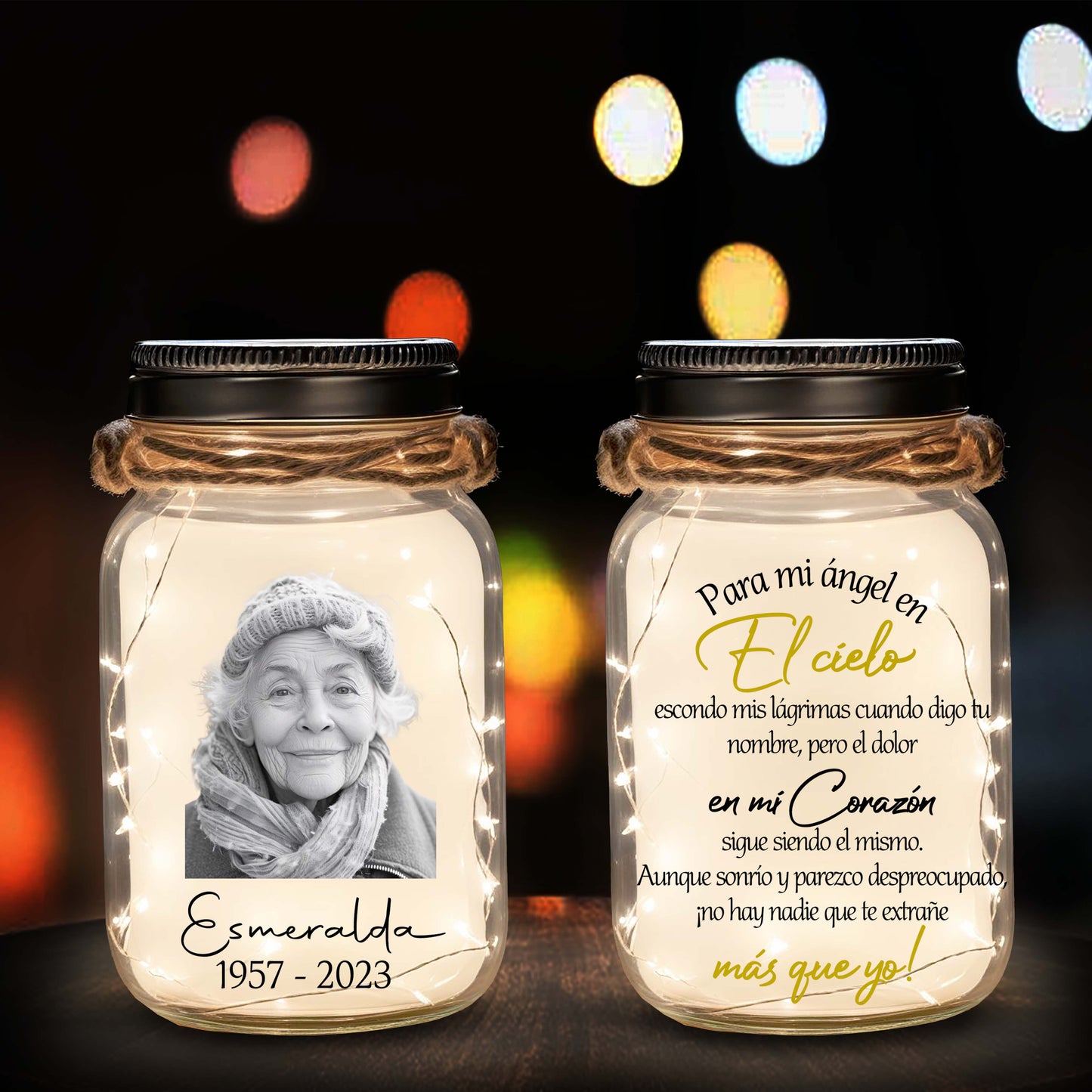 Para Mi Ángel en el Cielo - Luz Frasco Personalizada, Todo Estampado - Regalo de Recuerdo