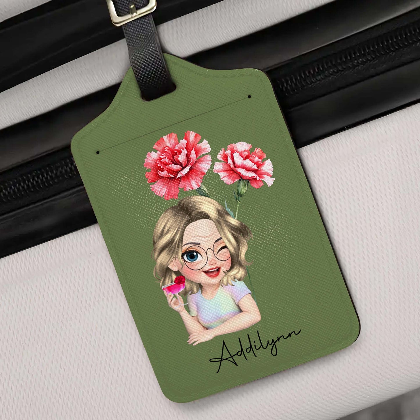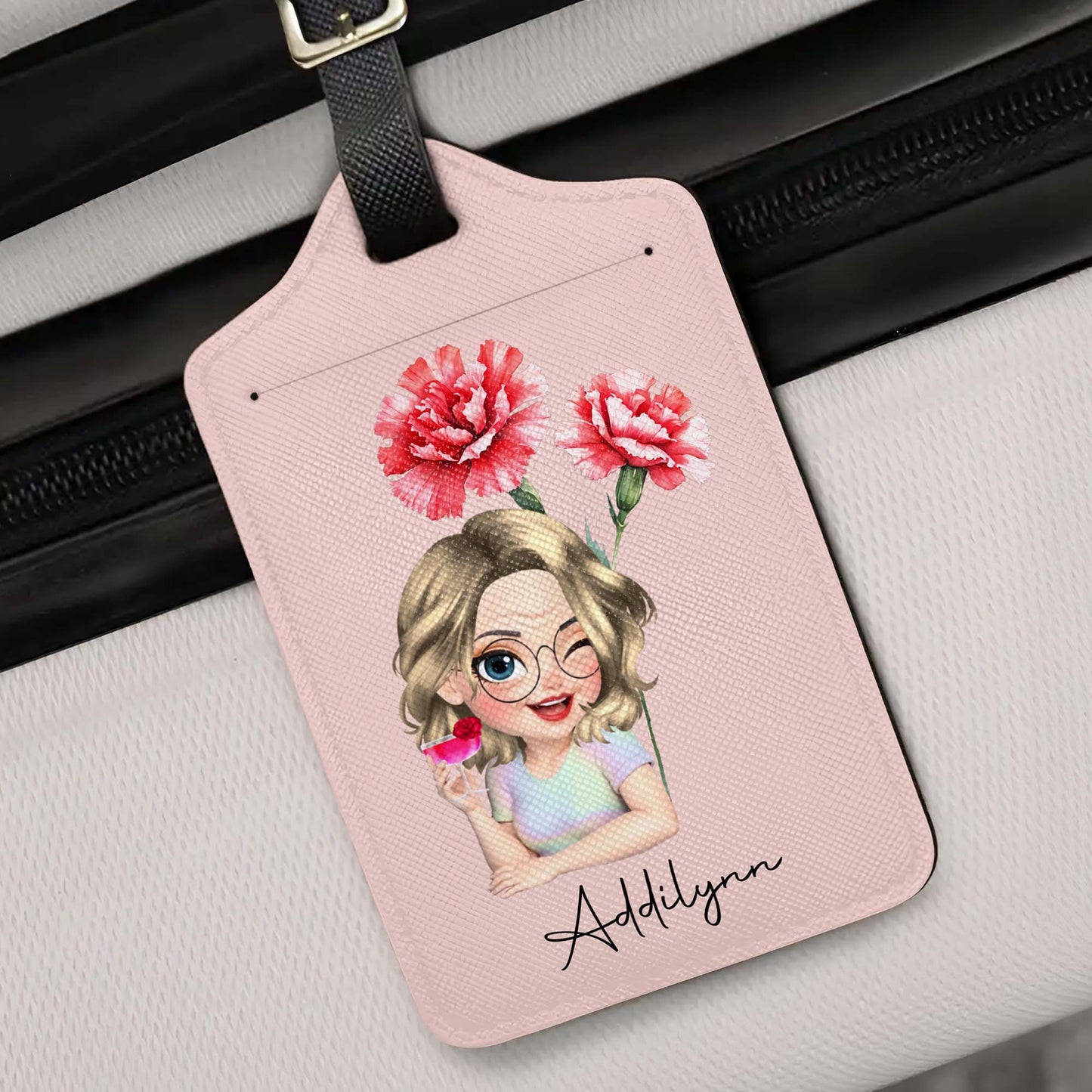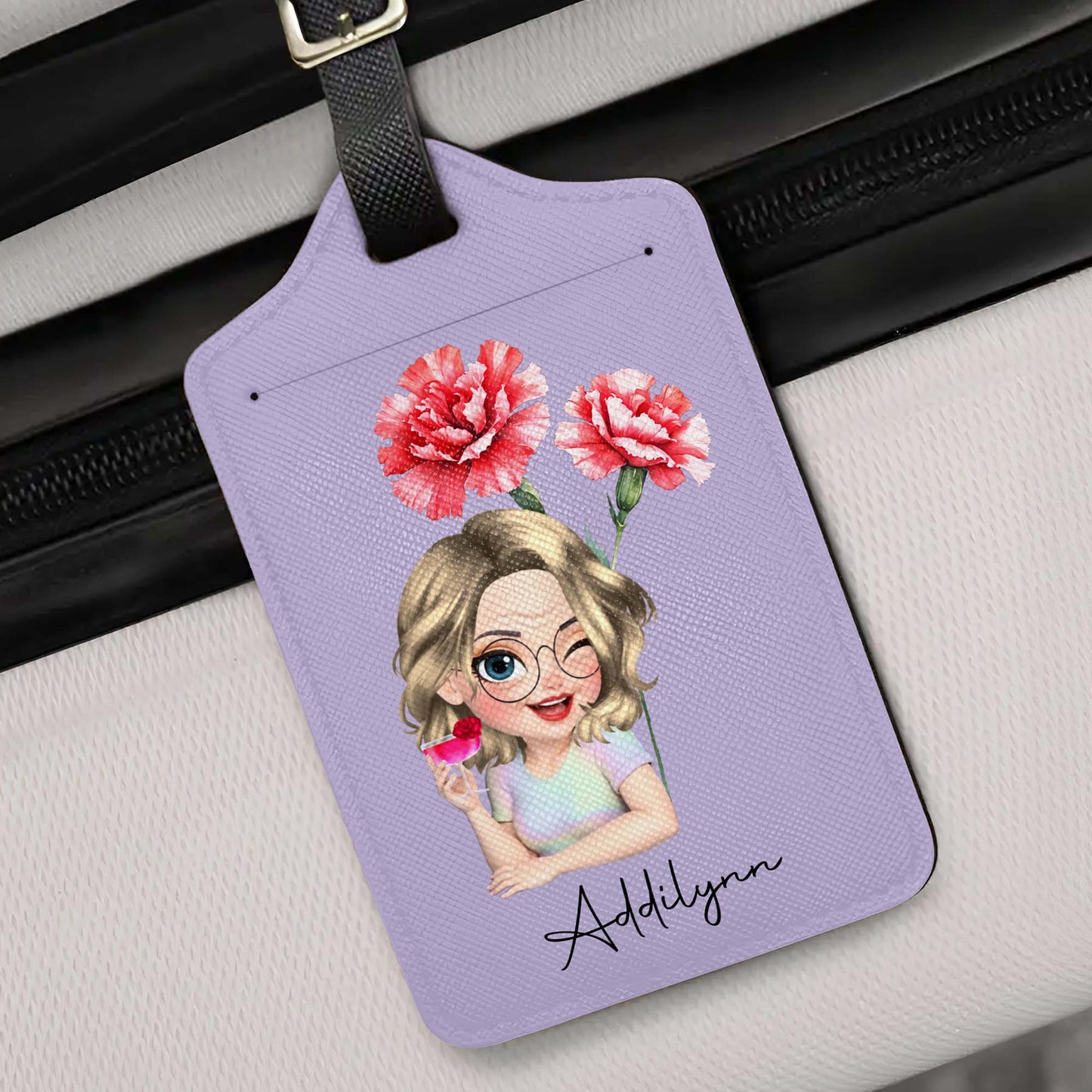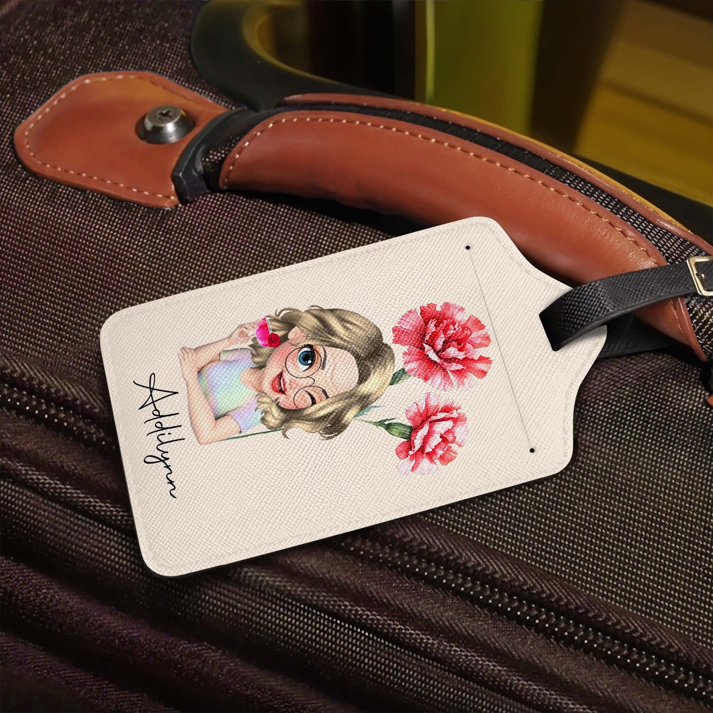 Personalized Custom Cartoon Girl Luggage Tag with Flowers - Personalized Custom Luggage Tag - DTG024_LGT