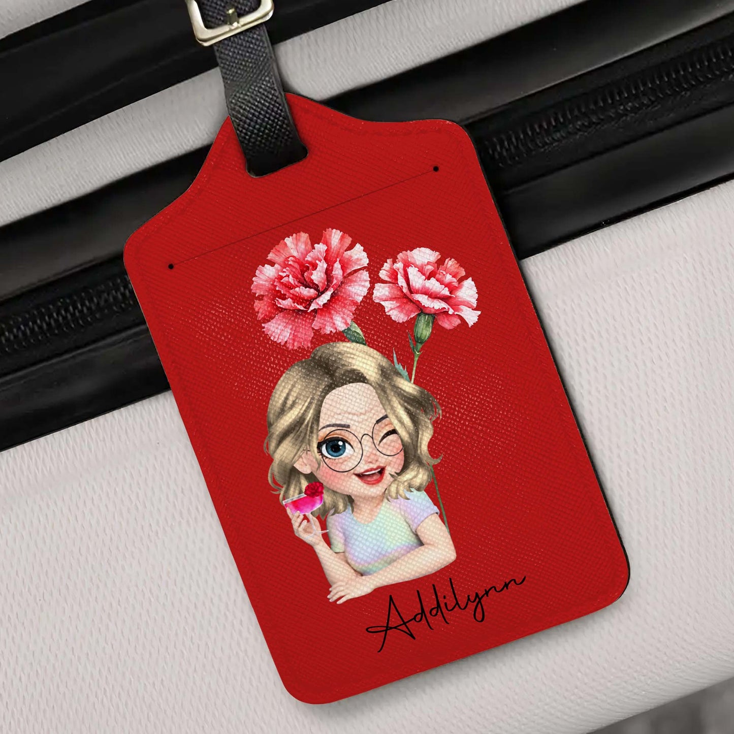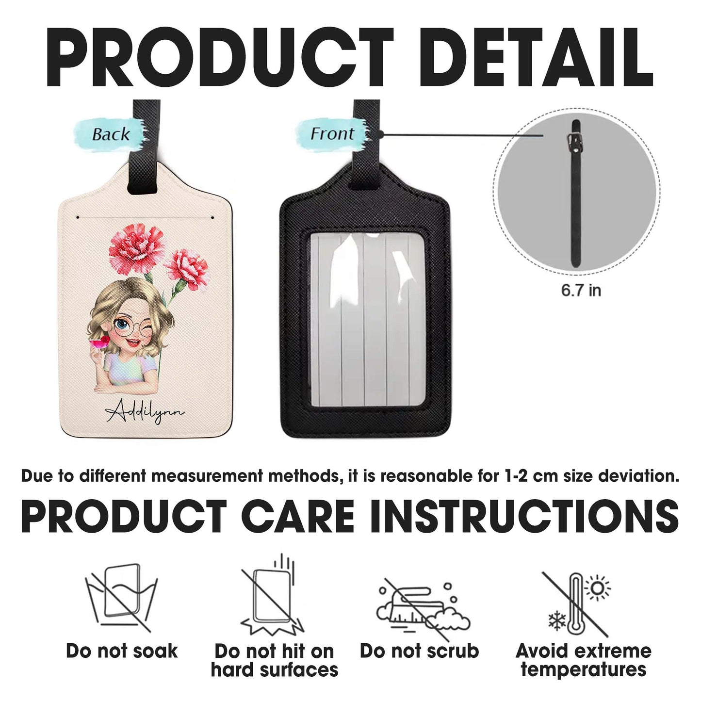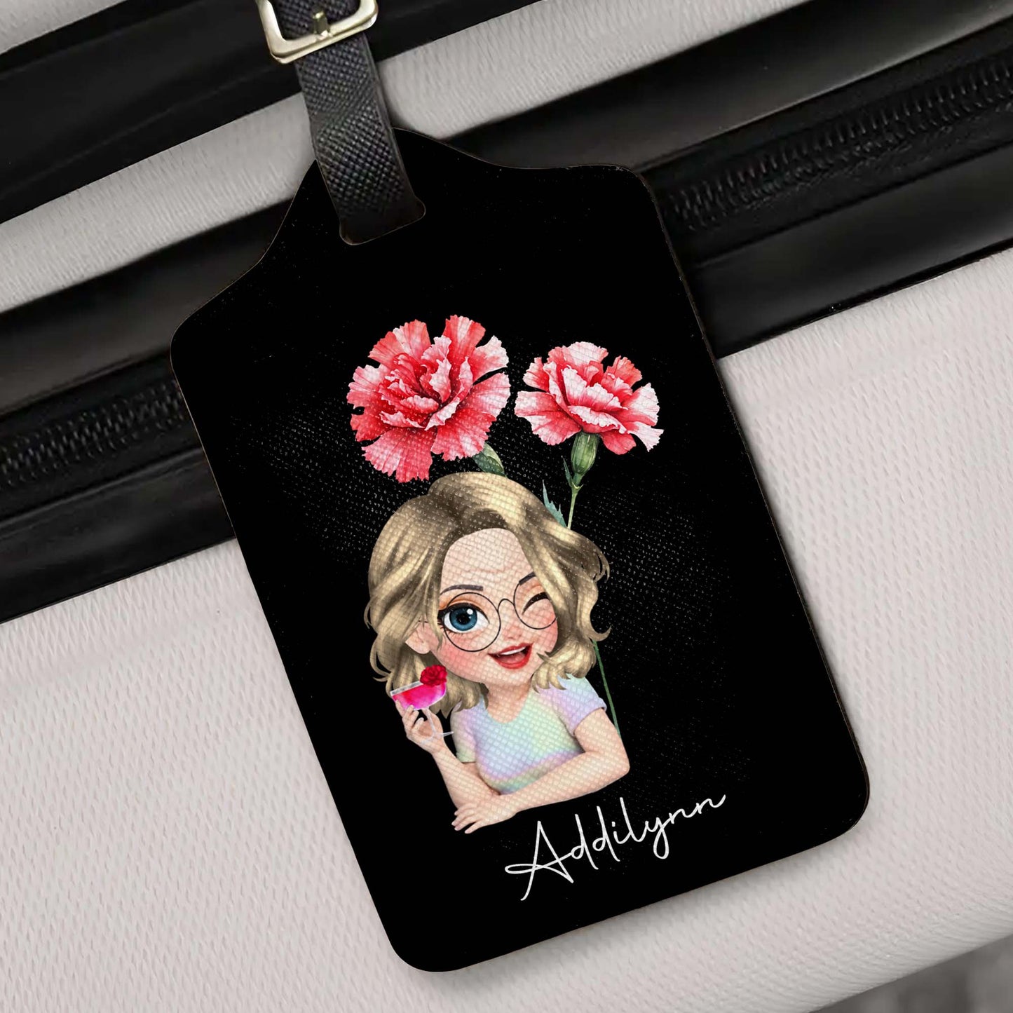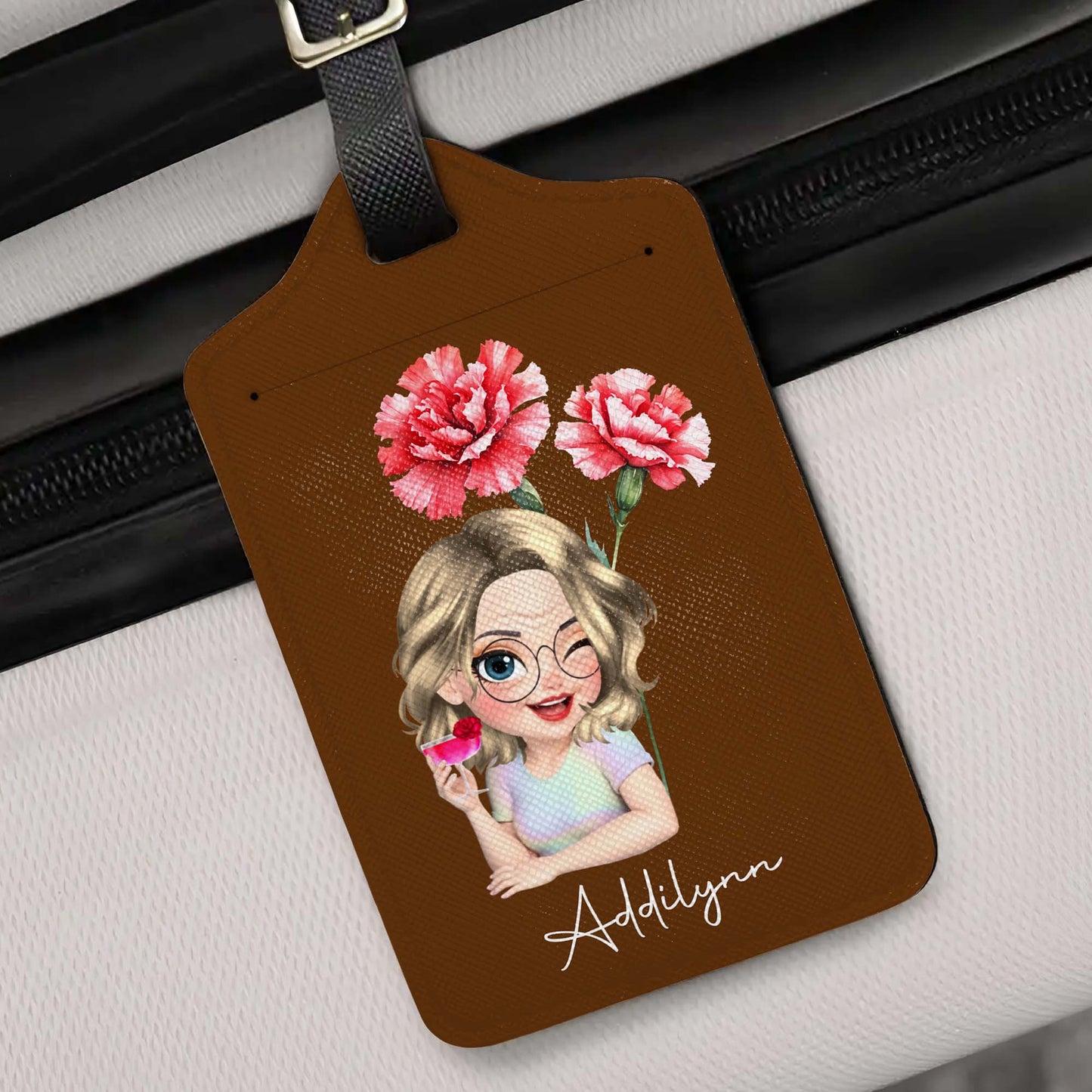 Personalized Custom Cartoon Girl Luggage Tag with Flowers - Personalized Custom Luggage Tag - DTG024_LGT