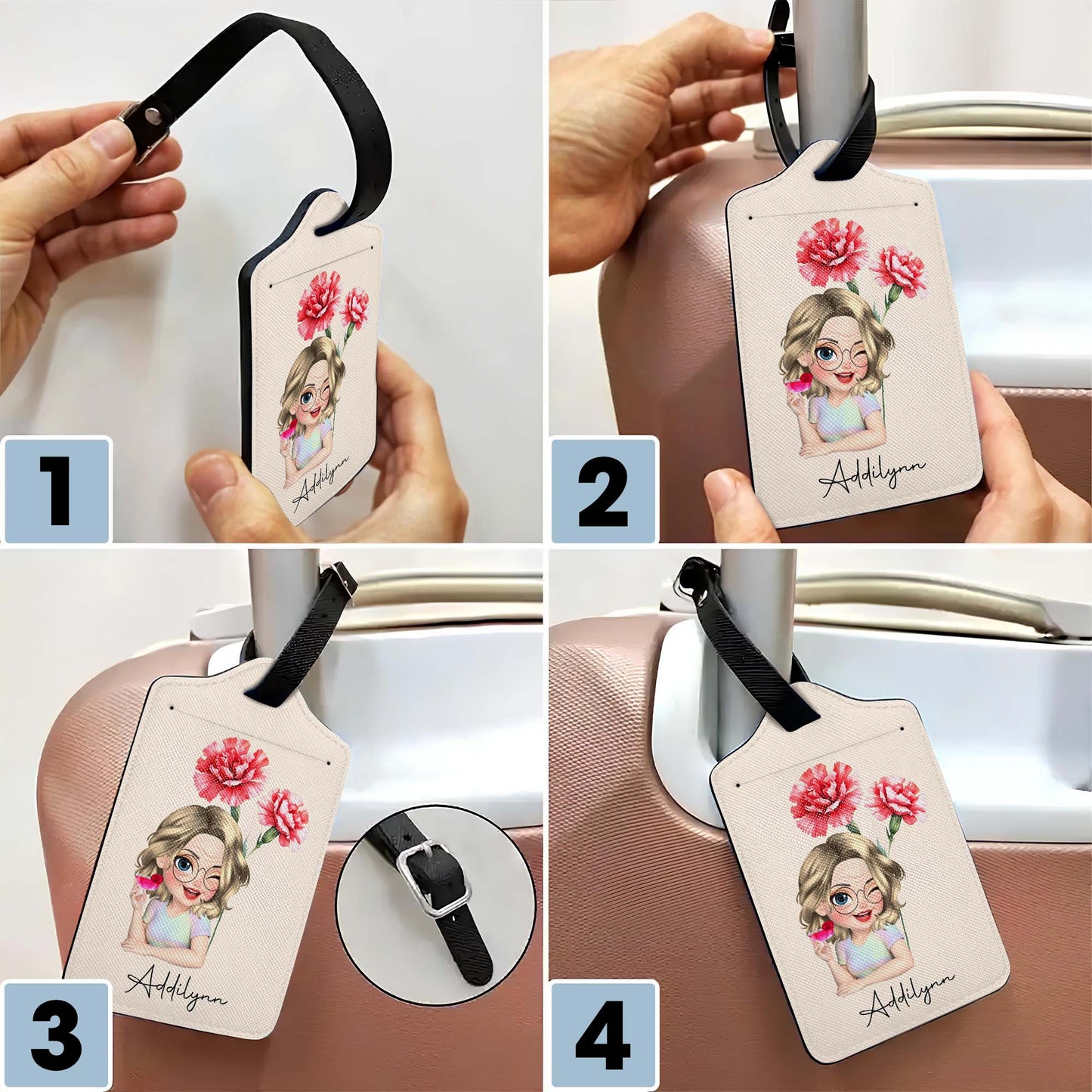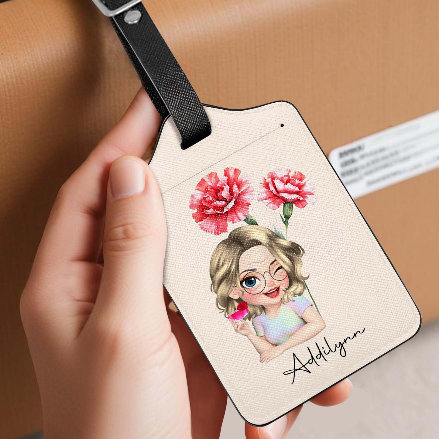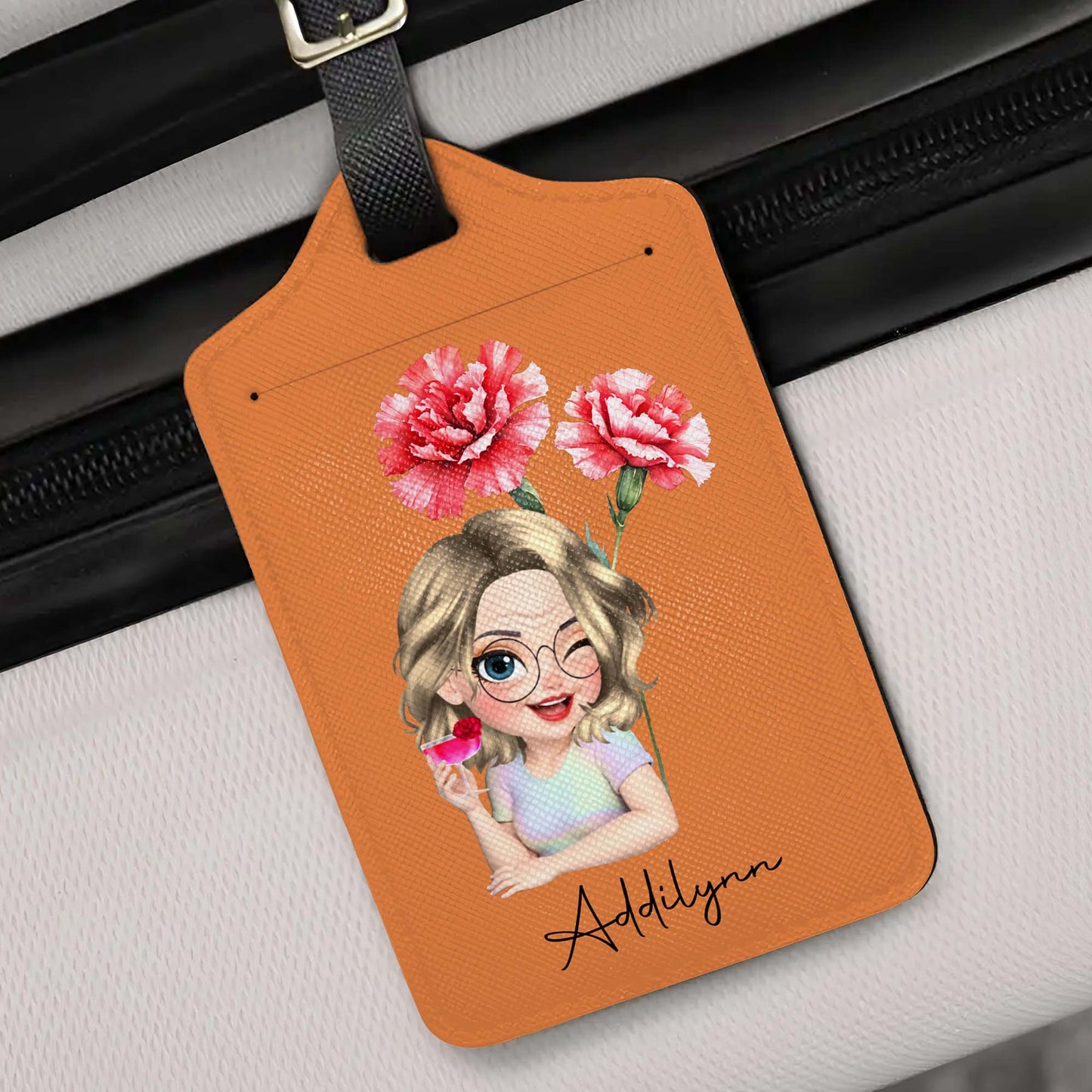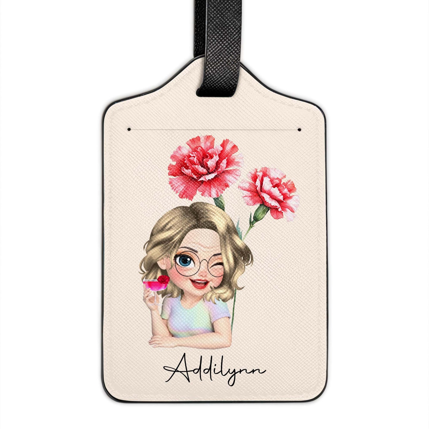 Personalized Custom Cartoon Girl Luggage Tag with Flowers - Personalized Custom Luggage Tag - DTG024_LGT