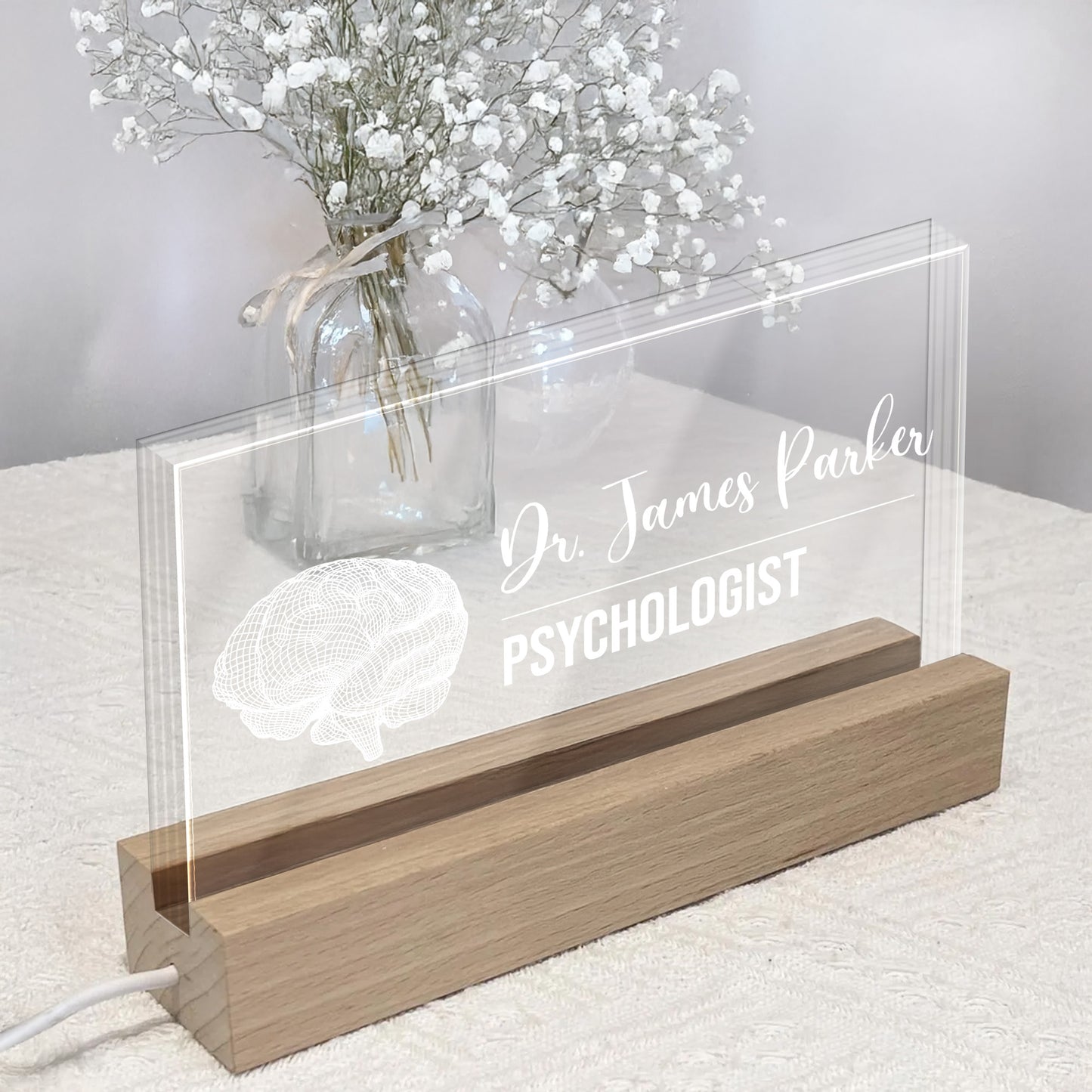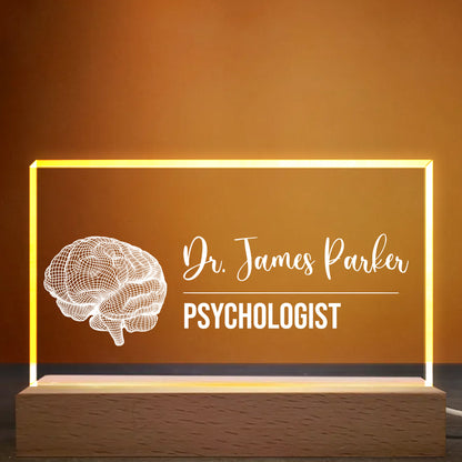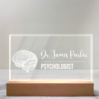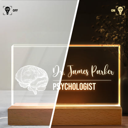 Personalized LED Night Light With Wooden Base, Gift For Professionals