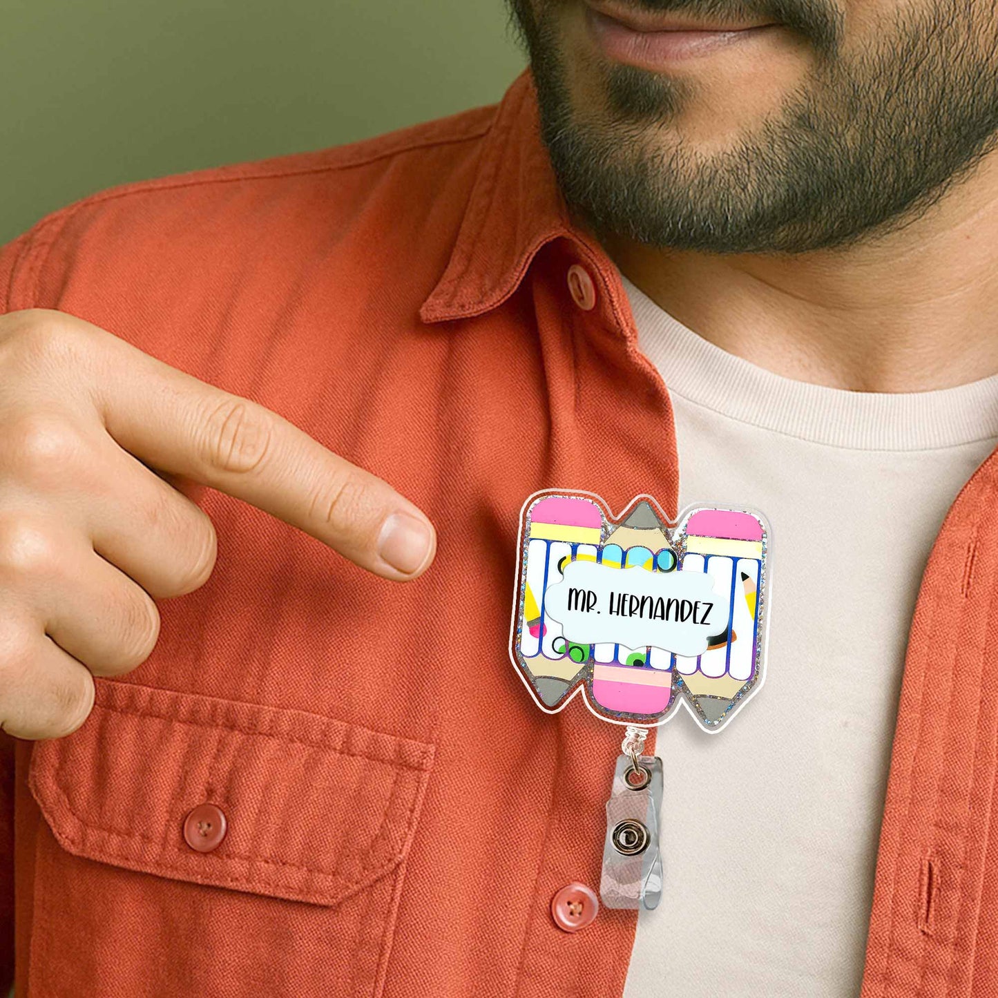 Personalized Teacher Badge Reel With Essential Stationery Design - Custom Acrylic Badge Reel - TEACH011_AREEL