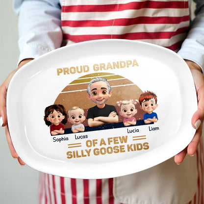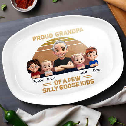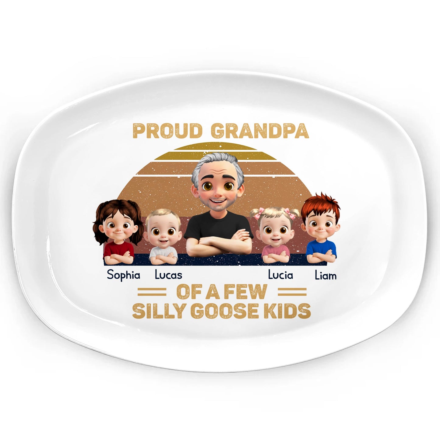 Proud Grandpa Of A Few Silly Goose Kids, Cartoon Grandpa And Children - Personalized Custom Plate - GRP019_CPLA