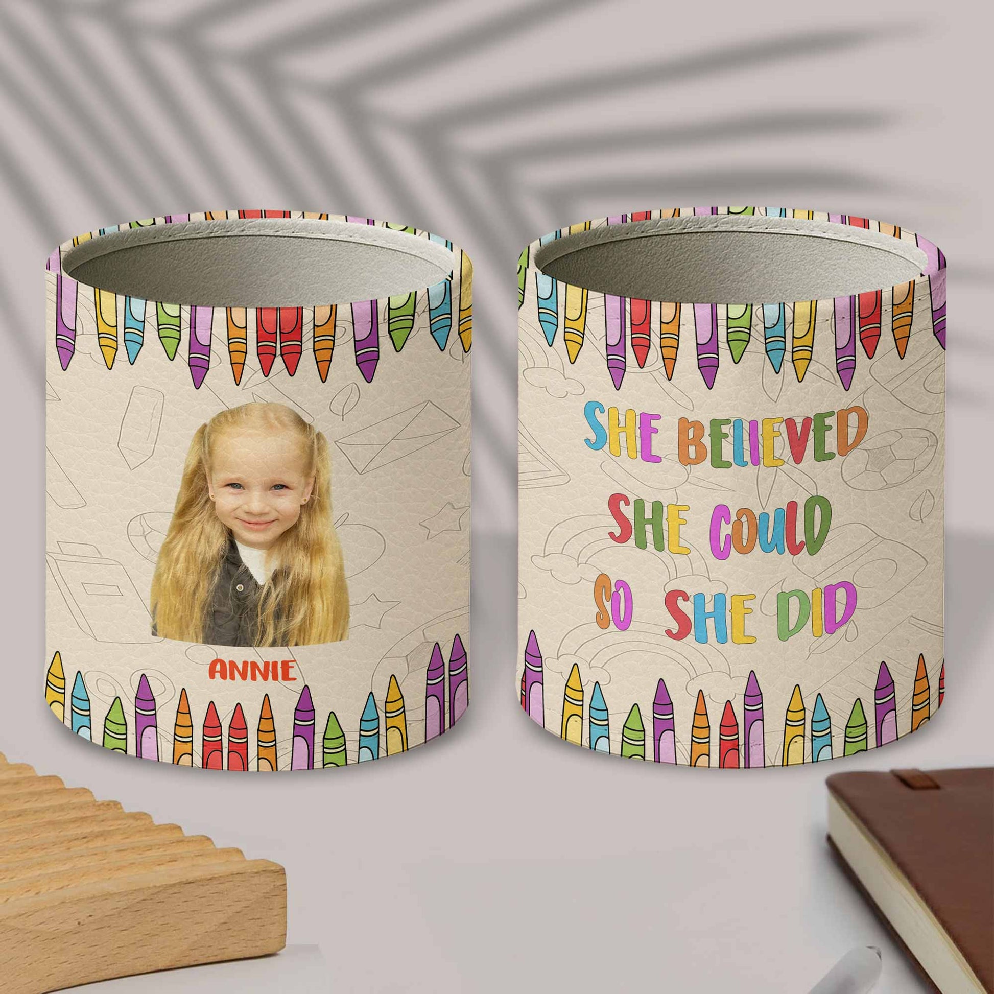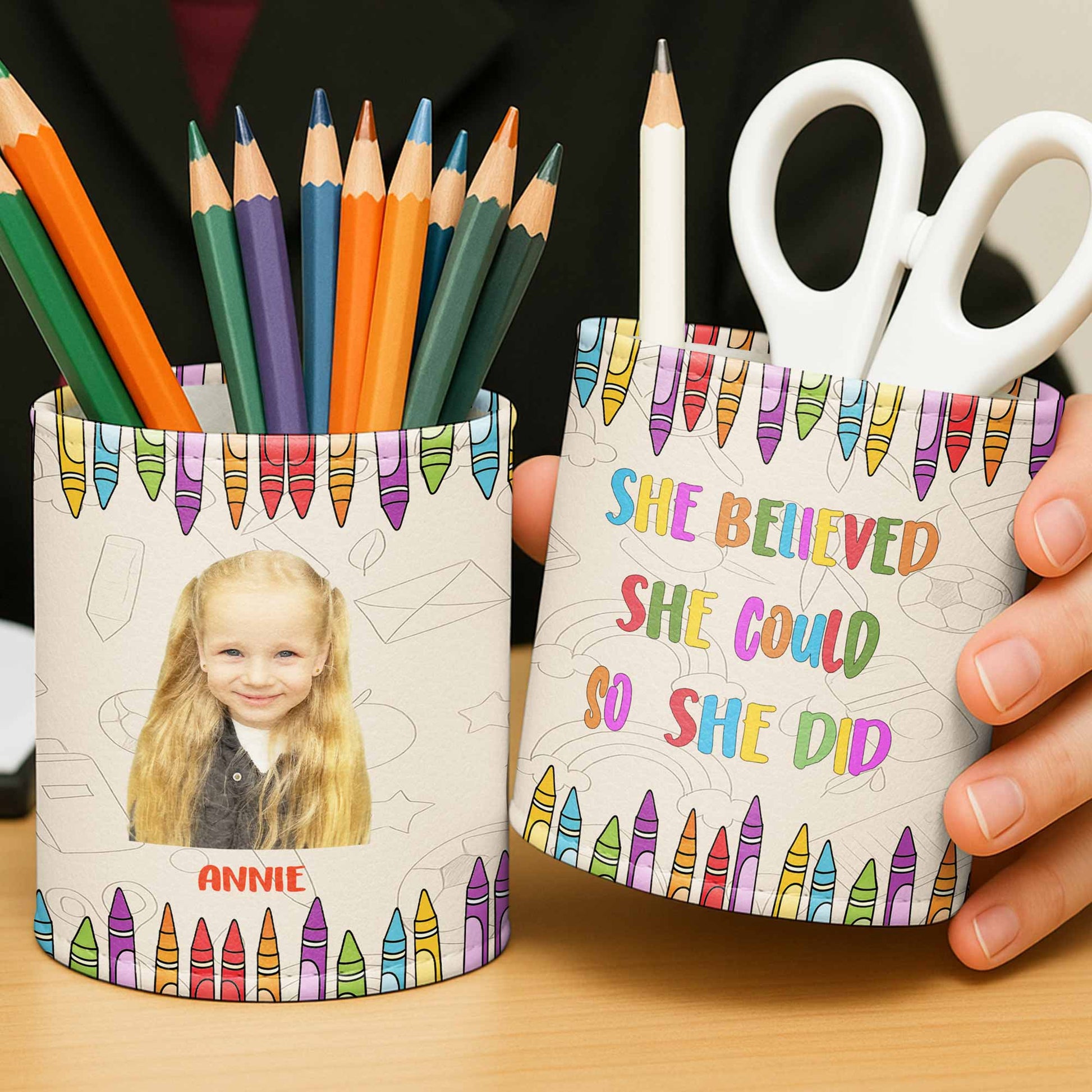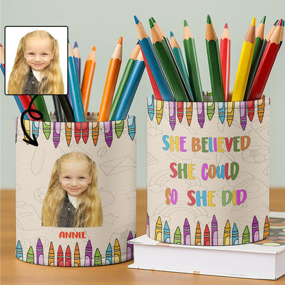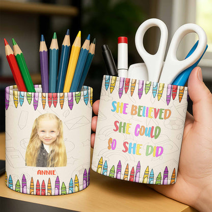 She Believed She Could So She Did, Colorful Crayons - Personalized Pen Holder - KID106_PENH