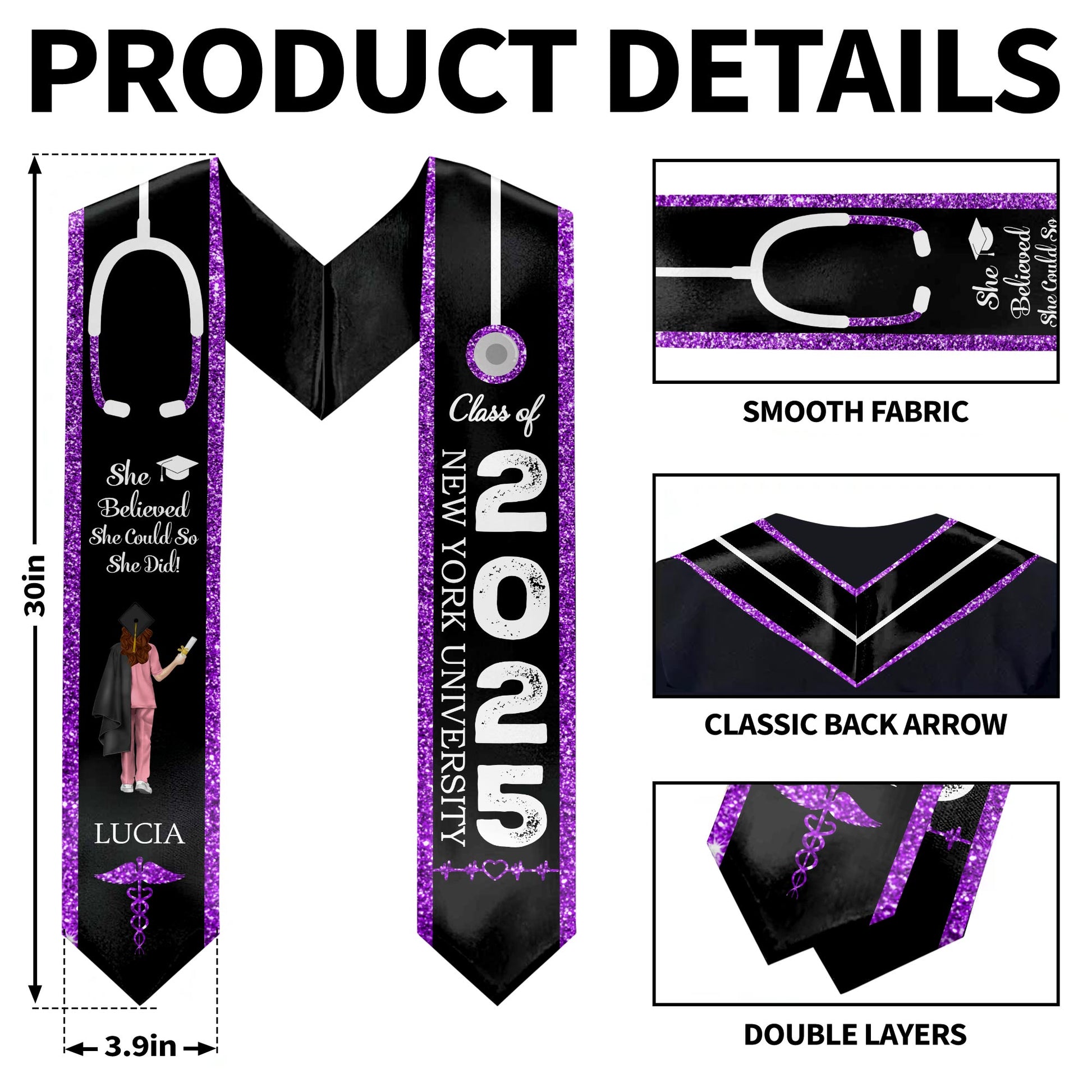 She Believed She Could So She Did, Personalized Graduation Stole, Gift For Graduates