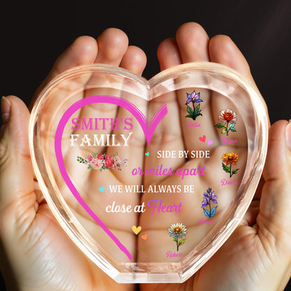Side By Side Or Miles Apart, We Will Always Be Close At Heart, Flowers And Hearts, Personalized Crystal Heart, Gift For Family