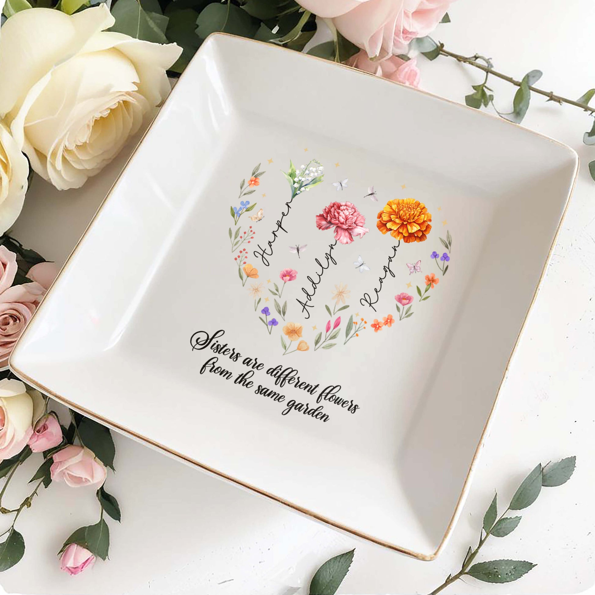 Sisters Are Different Flowers From The Same Garden - Personalized Custom Jewelry Dish - FAM078_SCRD