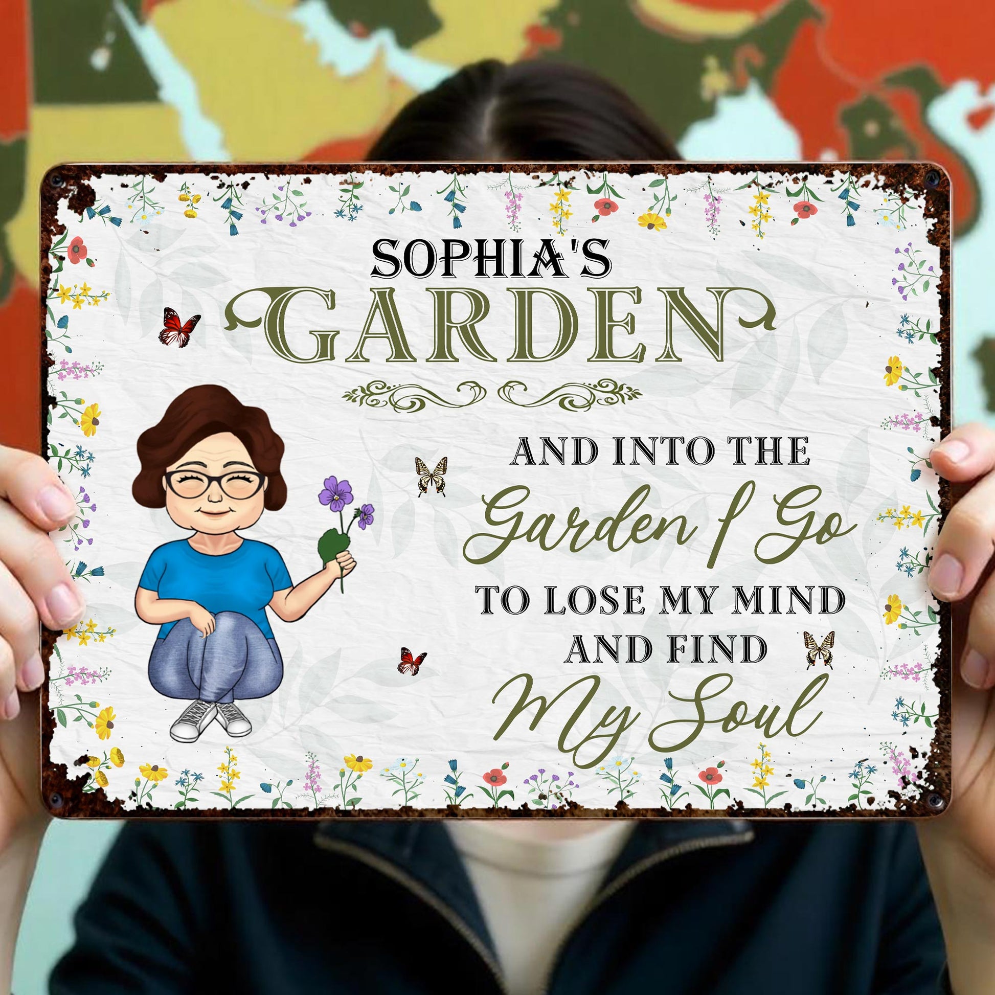 Sophia's Garden And Into The Garden I Go, Personalized Metal Sign, Gift For Gardening Lovers