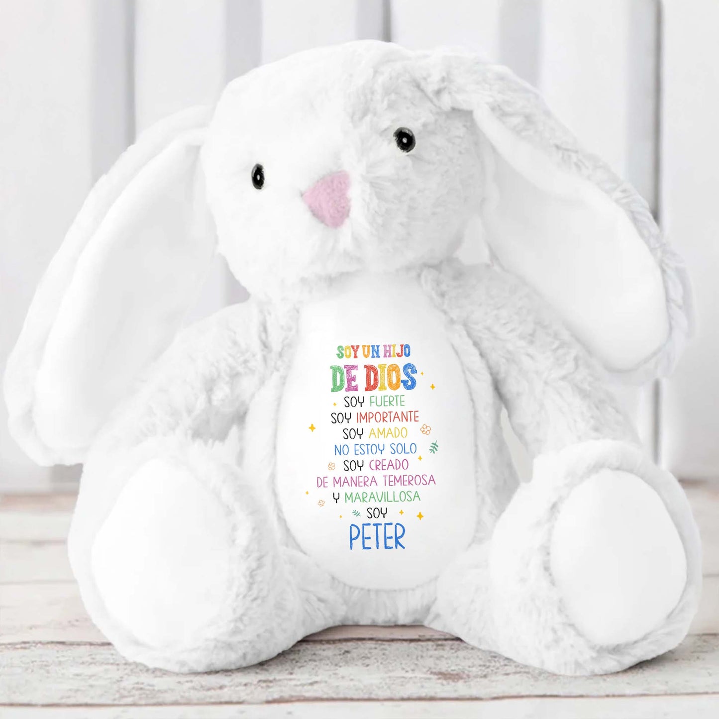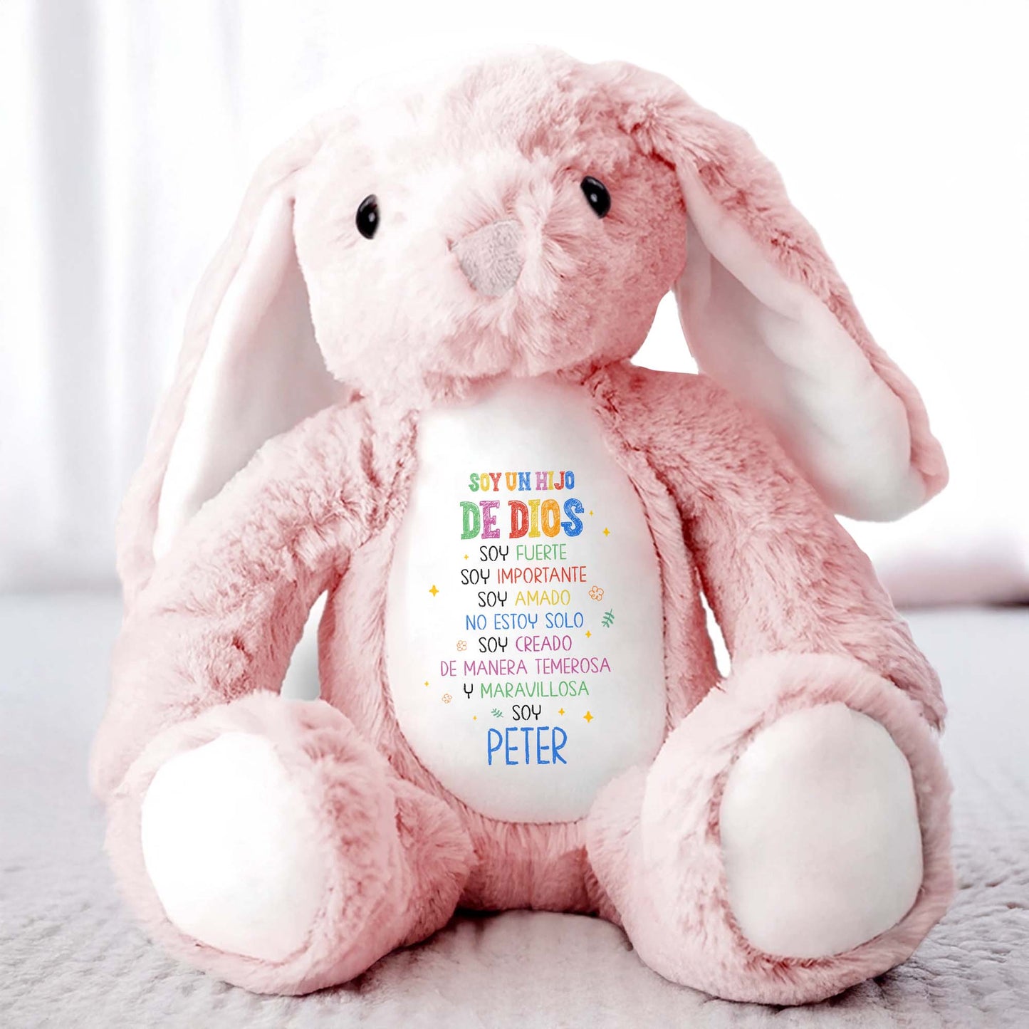 Soy Un Hijo De Dios, Soy Fuerte, Stuffed Bunny - Personalized Stuffed Bunny - KID050_BUN