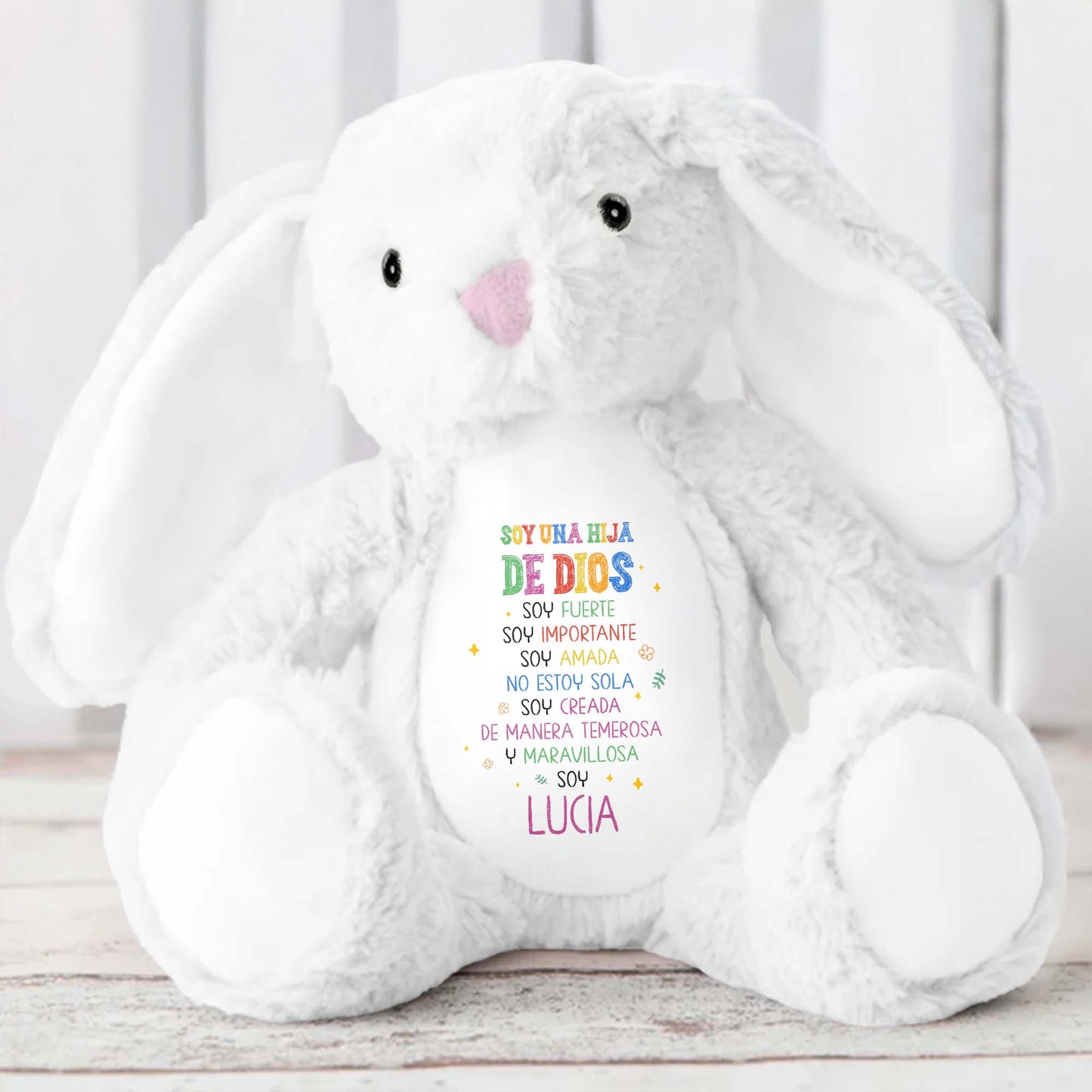 Soy Una Hija De Dios, Soy Fuerte, Stuffed Bunny - Personalized Stuffed Bunny - KID051_BUN