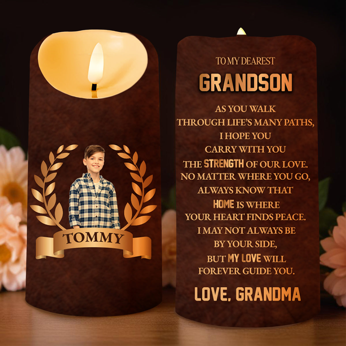 Strength of Our Love - Personalized Custom LED Candle - Gift For Grandson