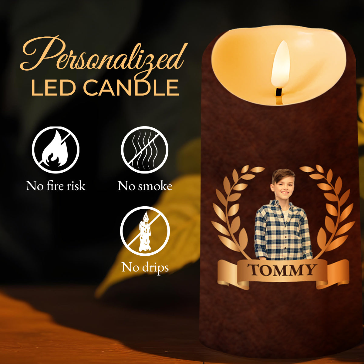 Strength of Our Love Laurel Wreath Design - Personalized Custom LED Candle - GSN010_LECA