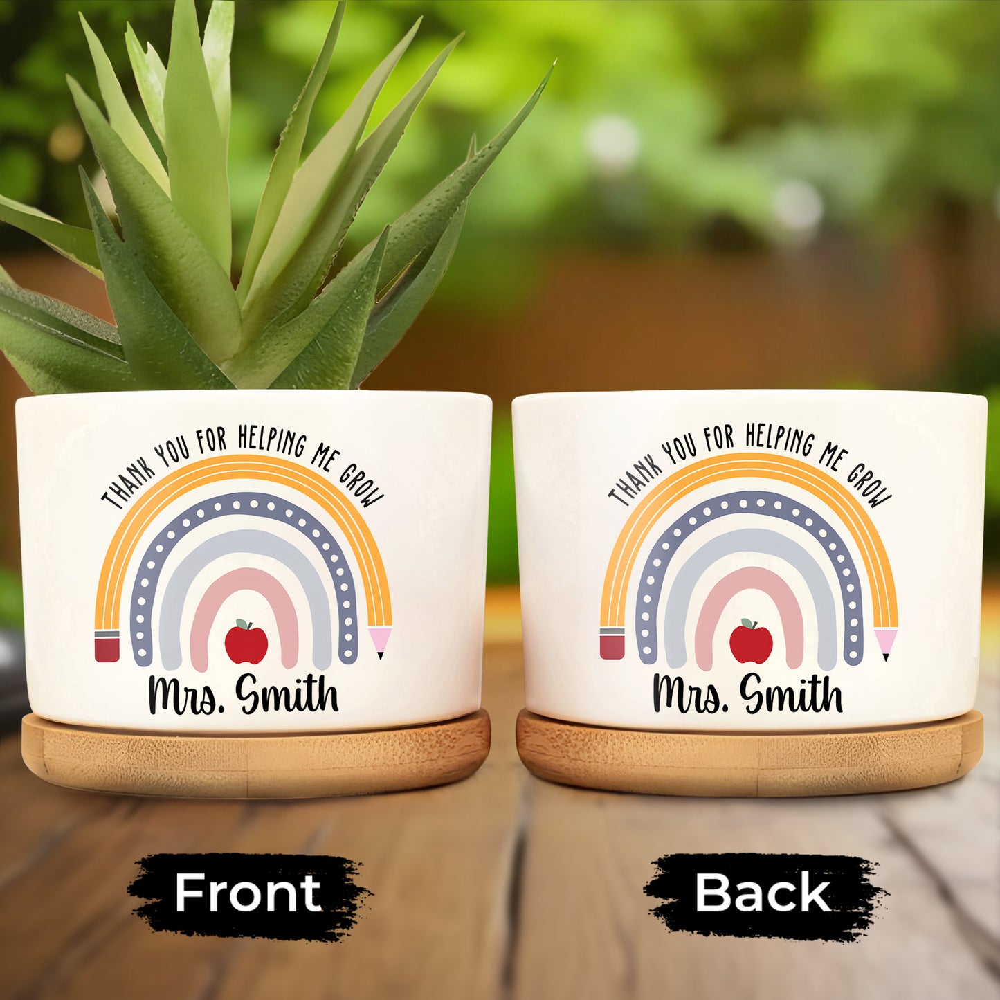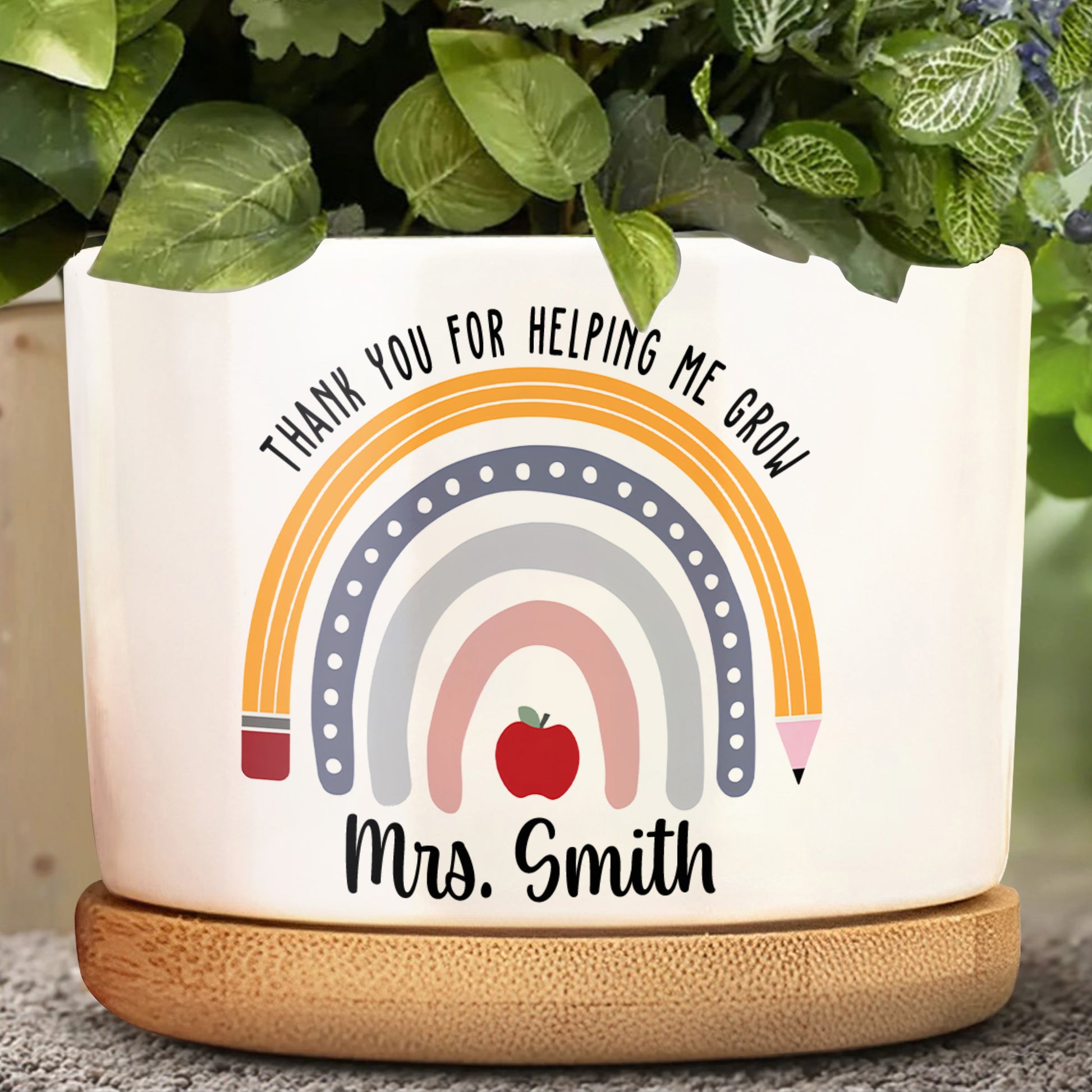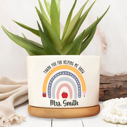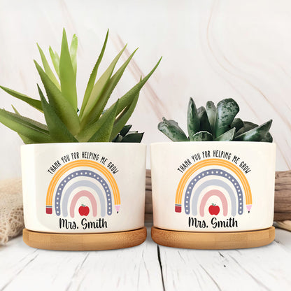 Thank You For Helping Me Grow Rainbow Heart Design, Personalized Ceramic Plant Pot, Gift For Teachers and Educators