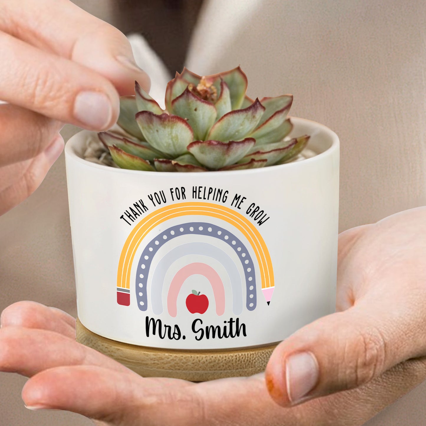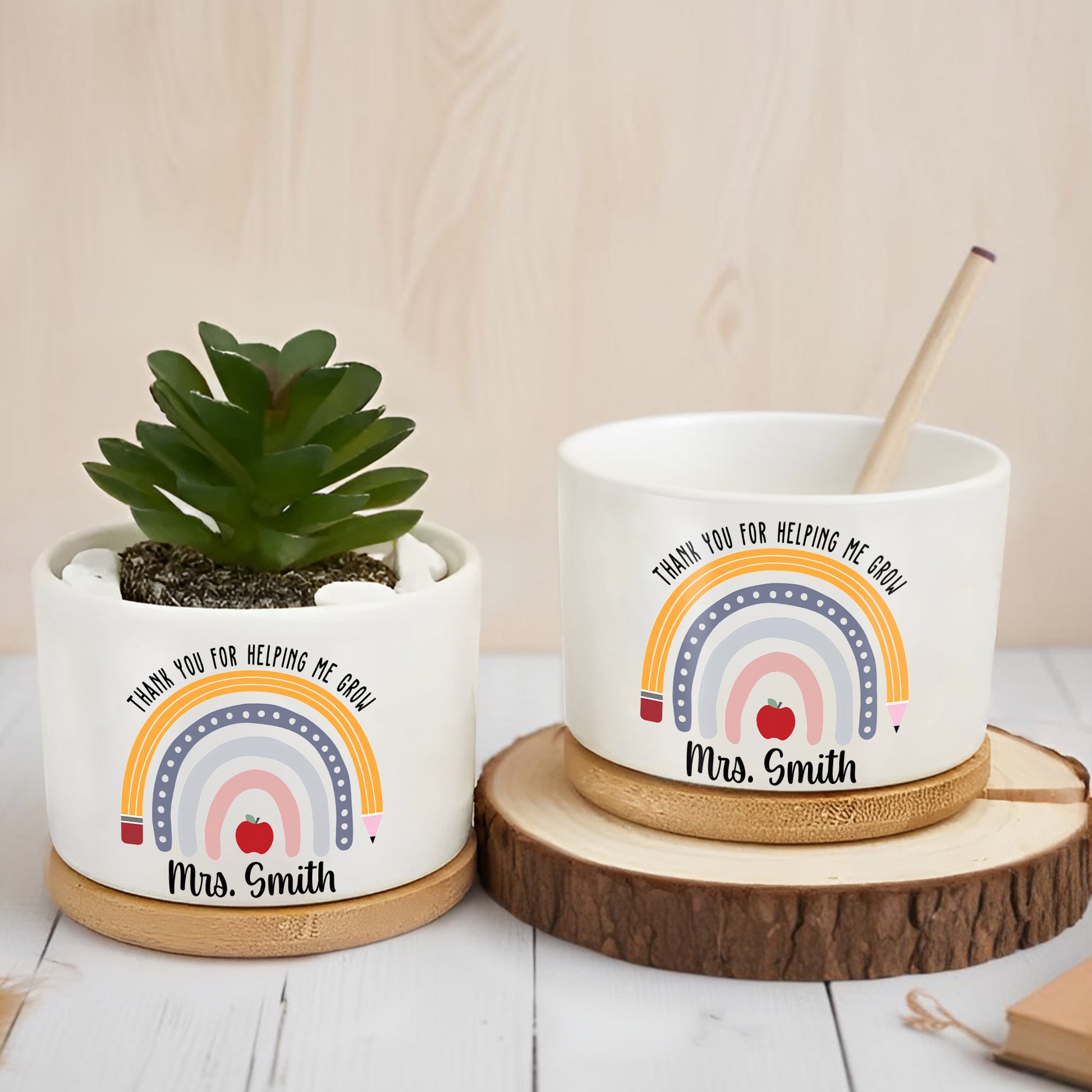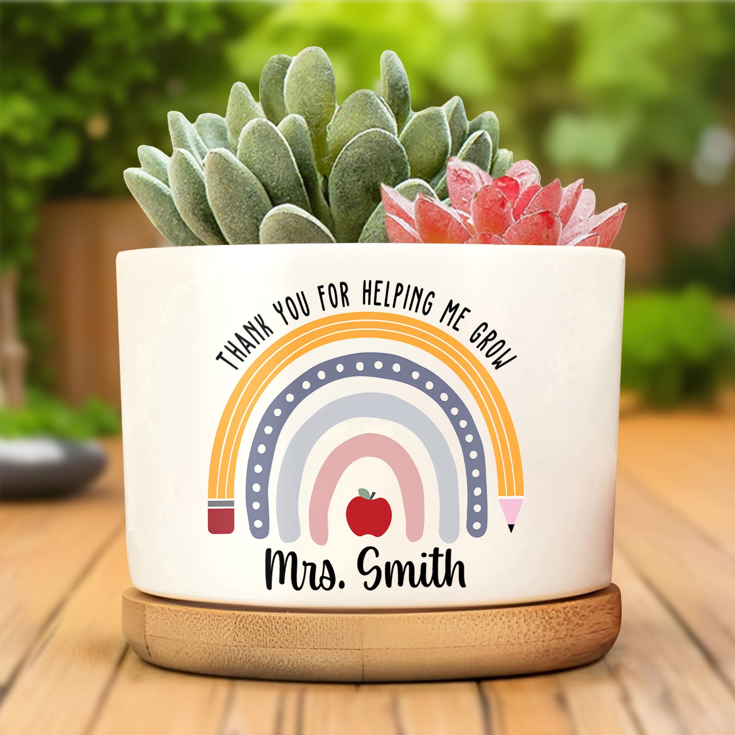 Thank You For Helping Me Grow Rainbow Heart Design, Personalized Ceramic Plant Pot, Gift For Teachers and Educators