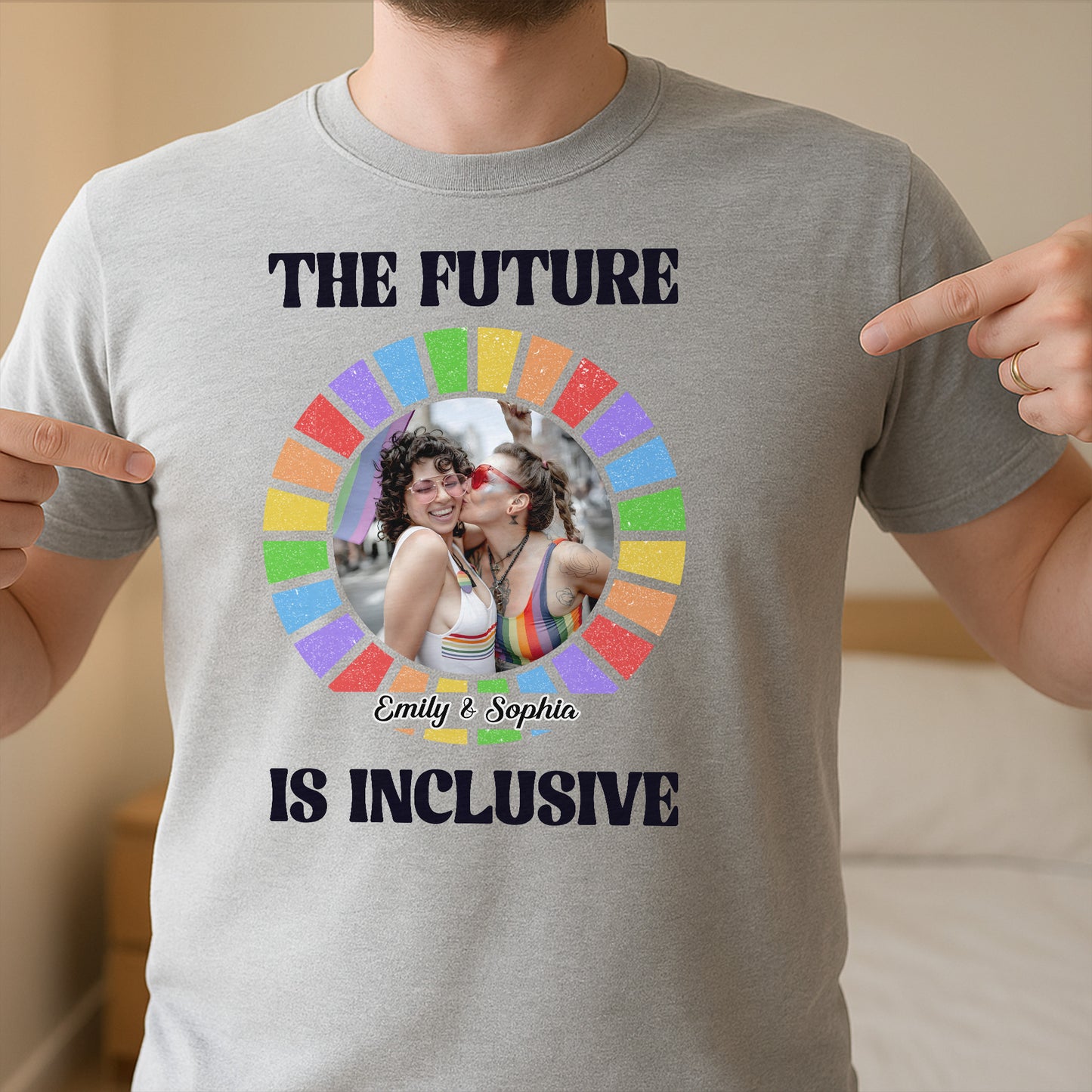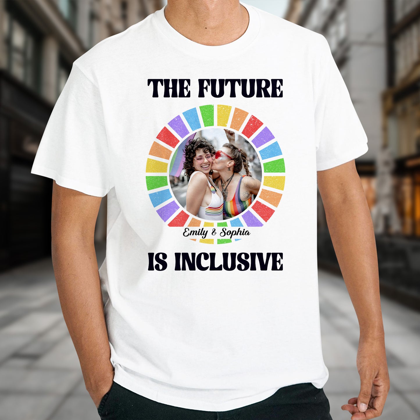 The Future Is Inclusive Rainbow Couple Design, Personalized Custom Unisex T-shirt, Gift For Besties and Family