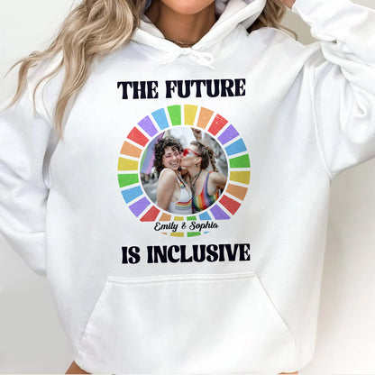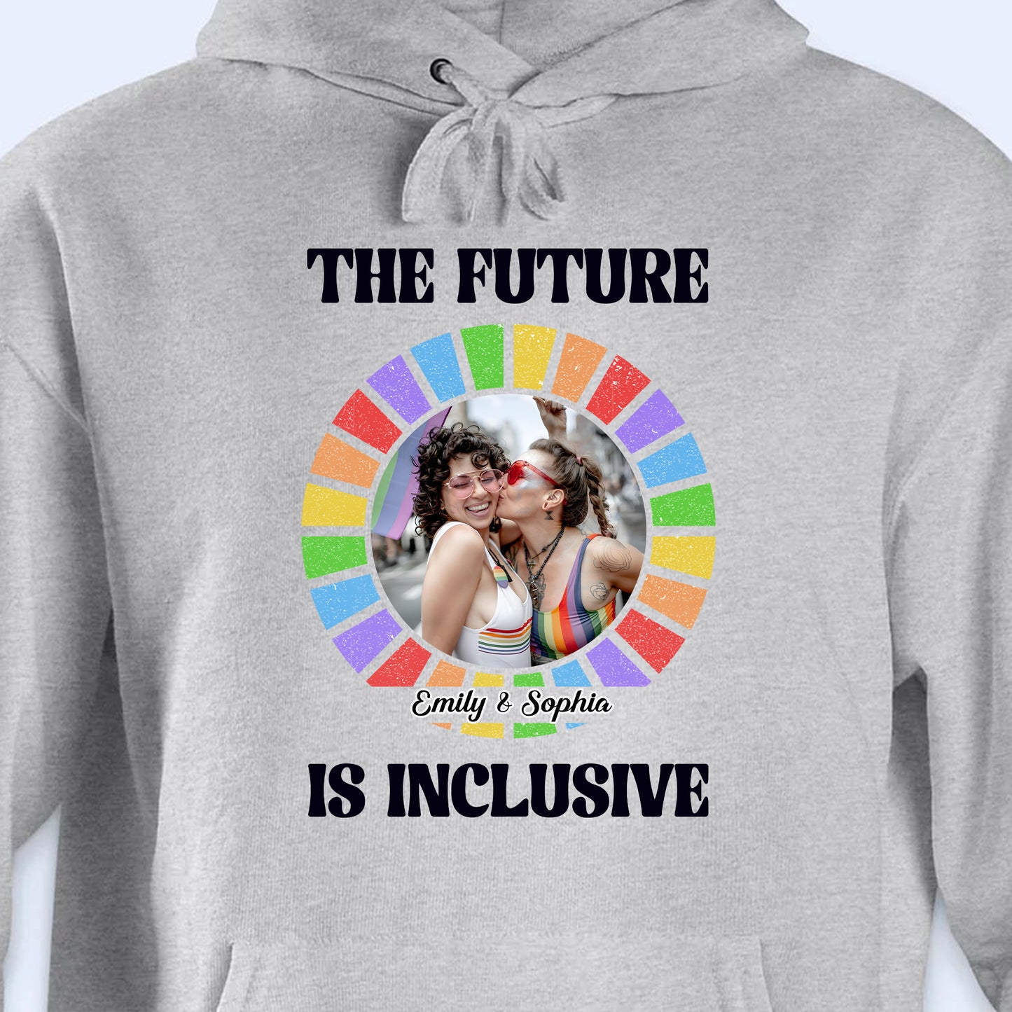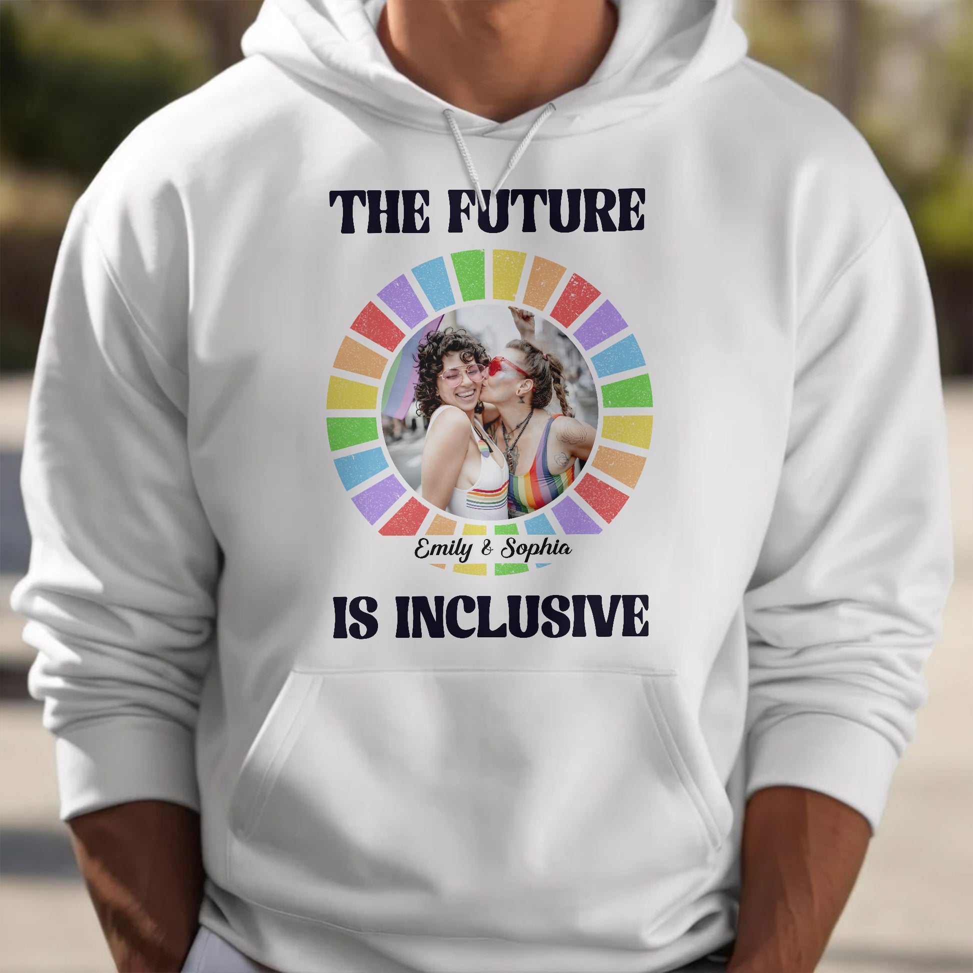 The Future Is Inclusive Rainbow Couple Design - Personalized Custom Unisex T-shirt, Hoodie - FAM391_WBAS