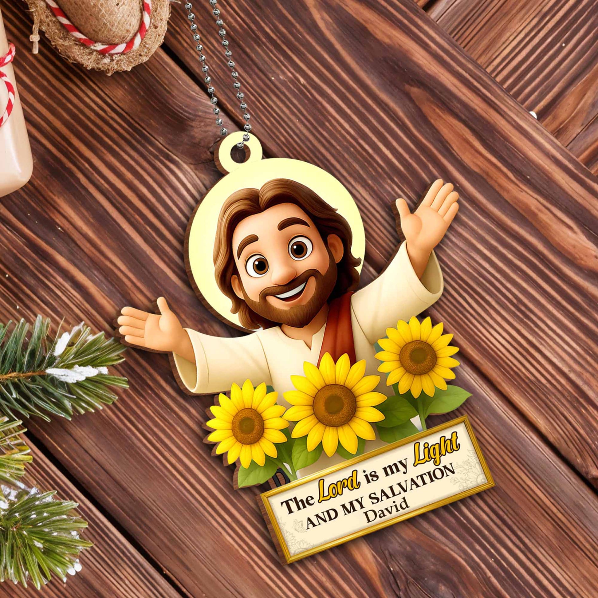 The Lord Is My Light And My Salvation, Religious Figure With Sunflowers - Personalized Custom Wood Ornament, Car Hanging Ornament - FTH096_WCA
