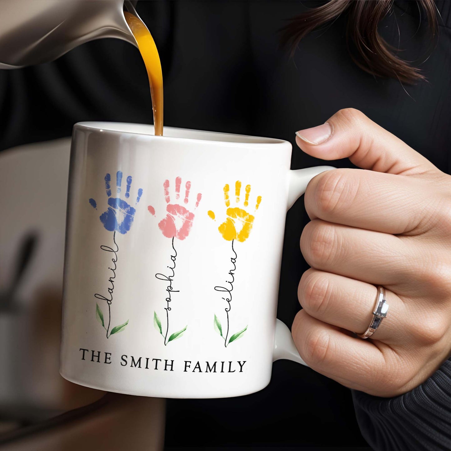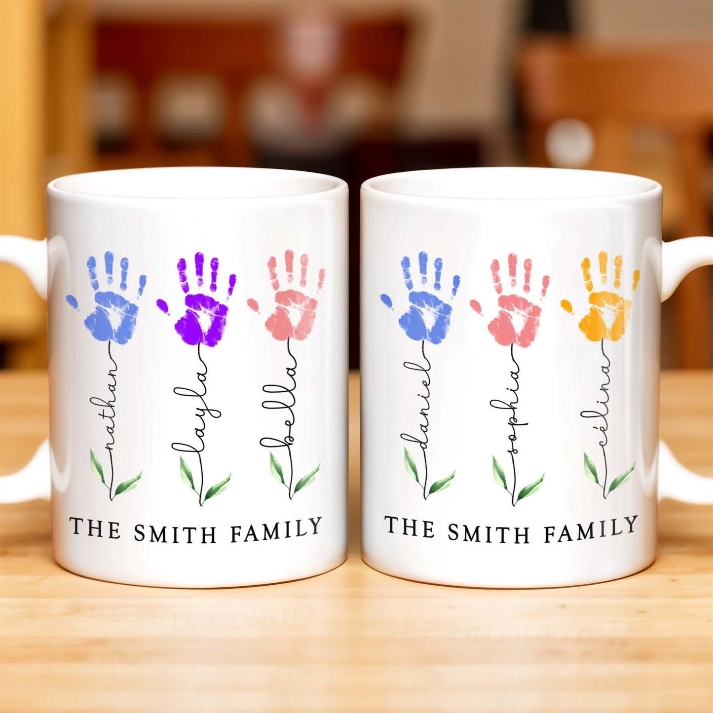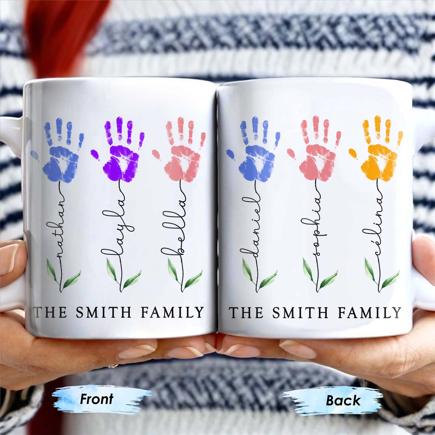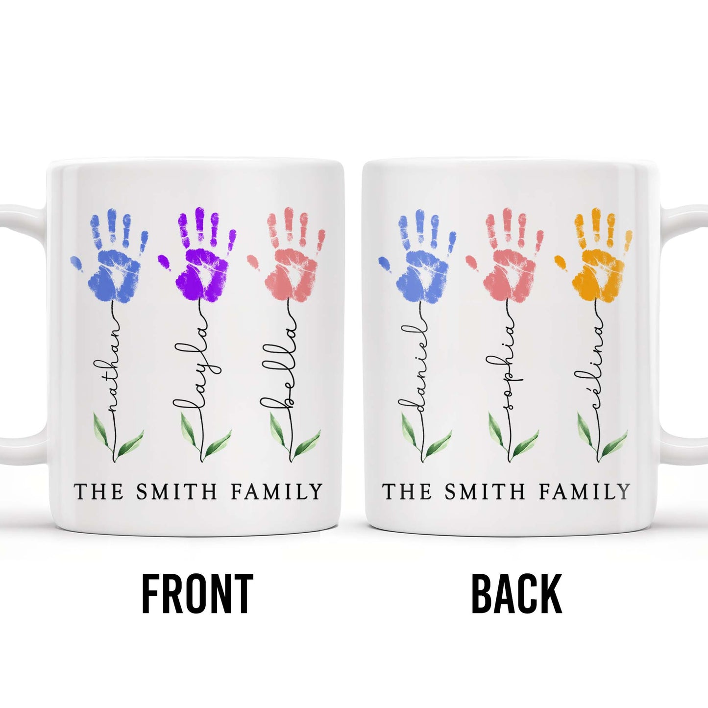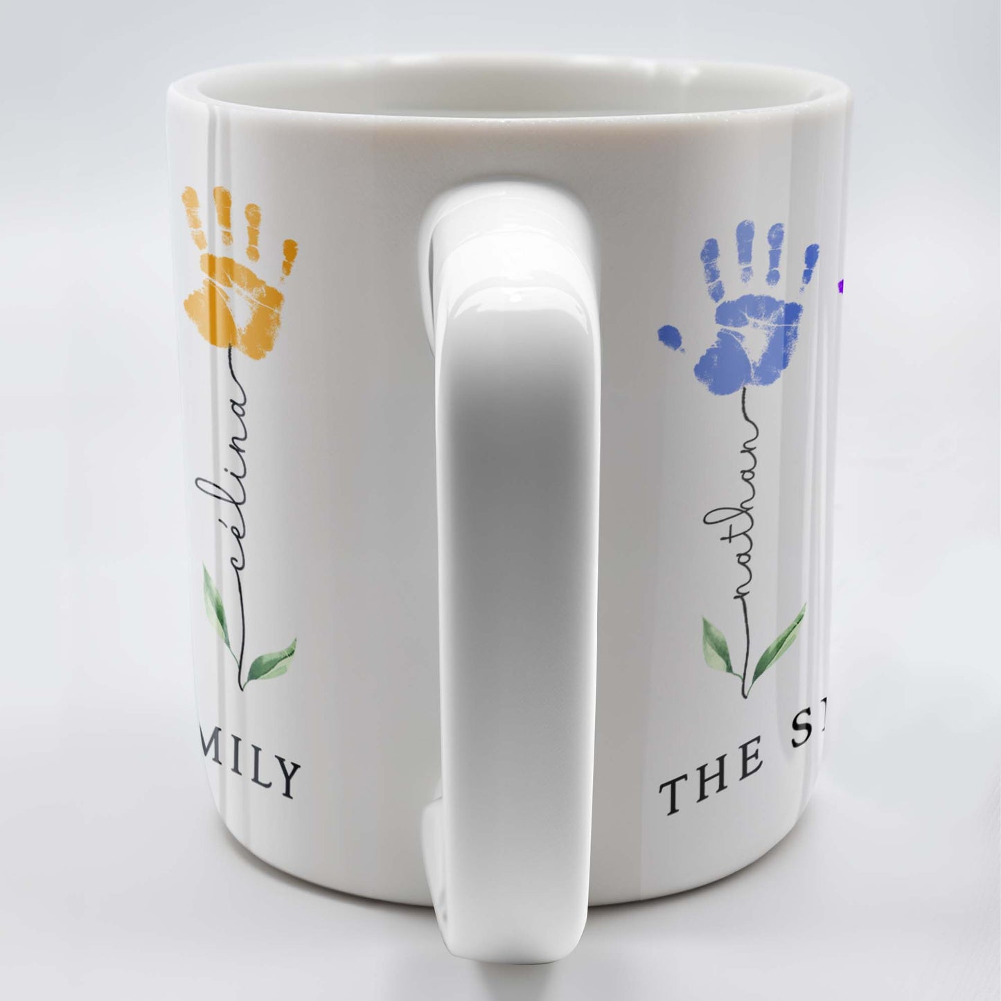 The Smith Family, Handprints and Leaves, Personalized Custom Coffee Mug, Gift For Family