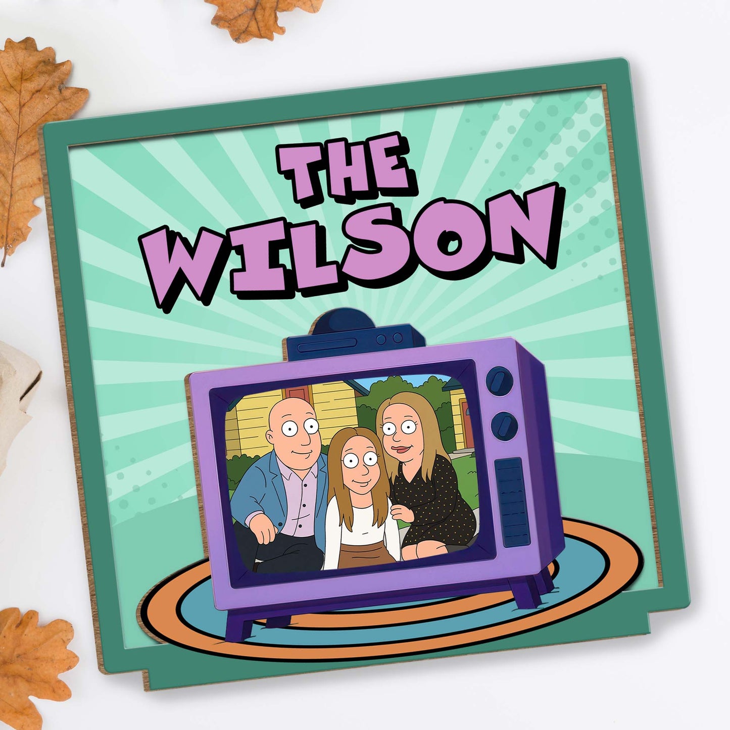 The Wilson, Cartoon Family On Vintage Television, Gift For Family