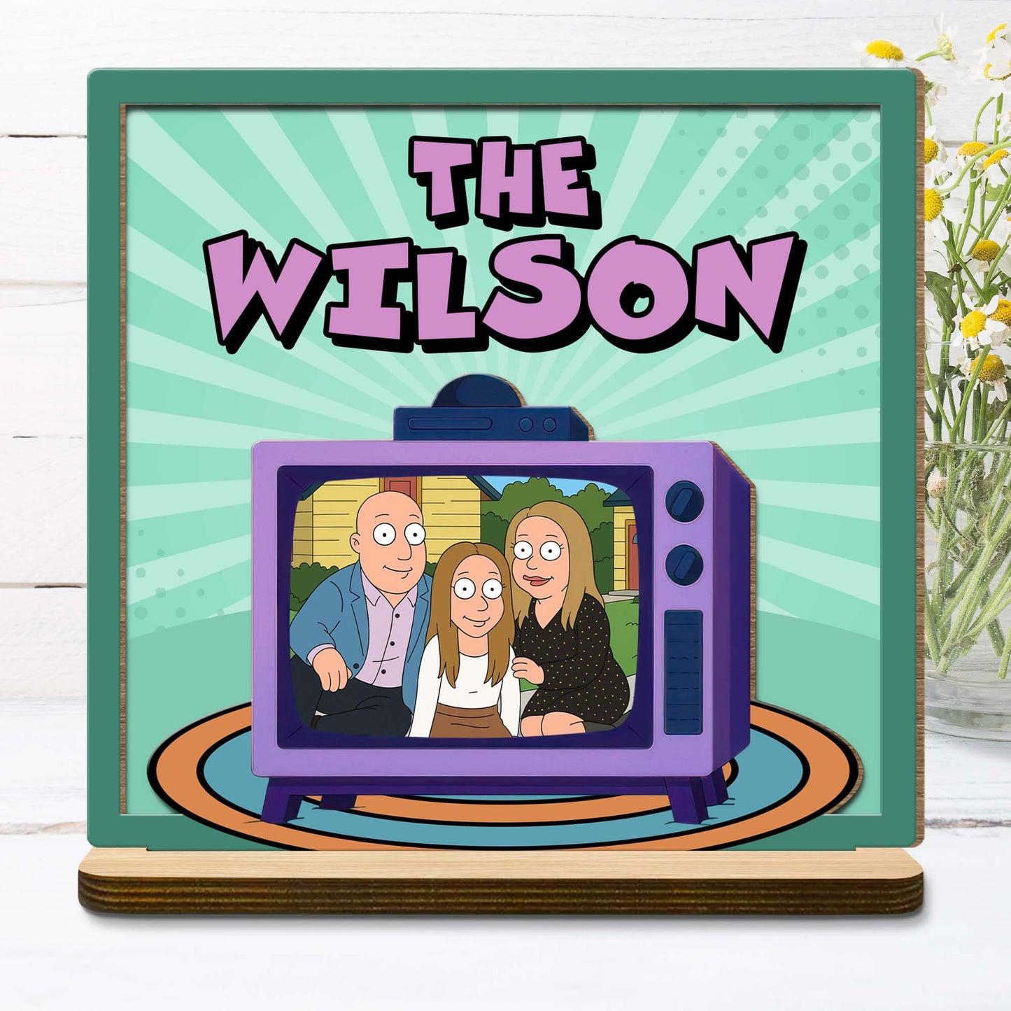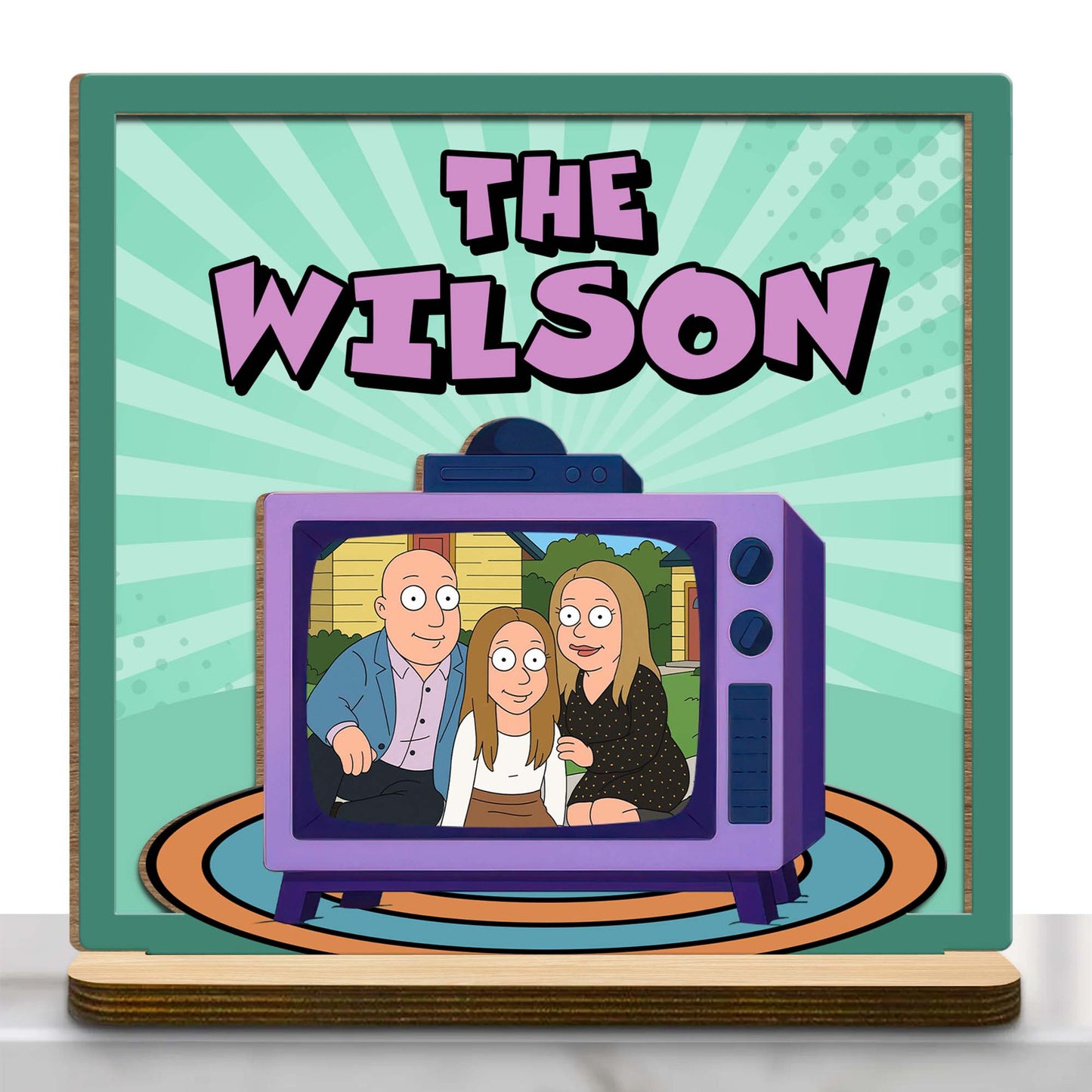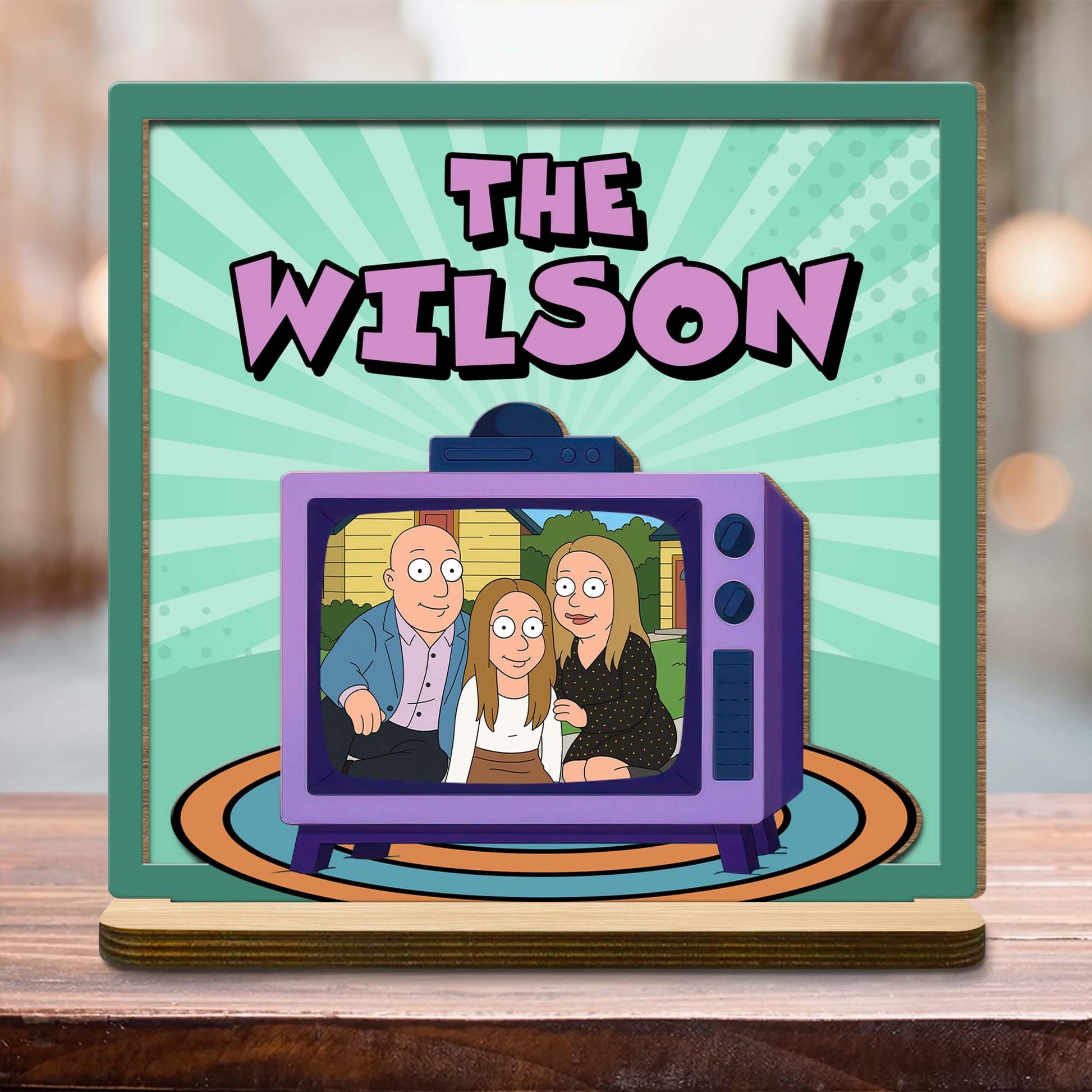 The Wilson, Cartoon Family On Vintage Television - Personalized Custom 2-Layer Wood Plaque With Flat Base - FAM403_WPLA