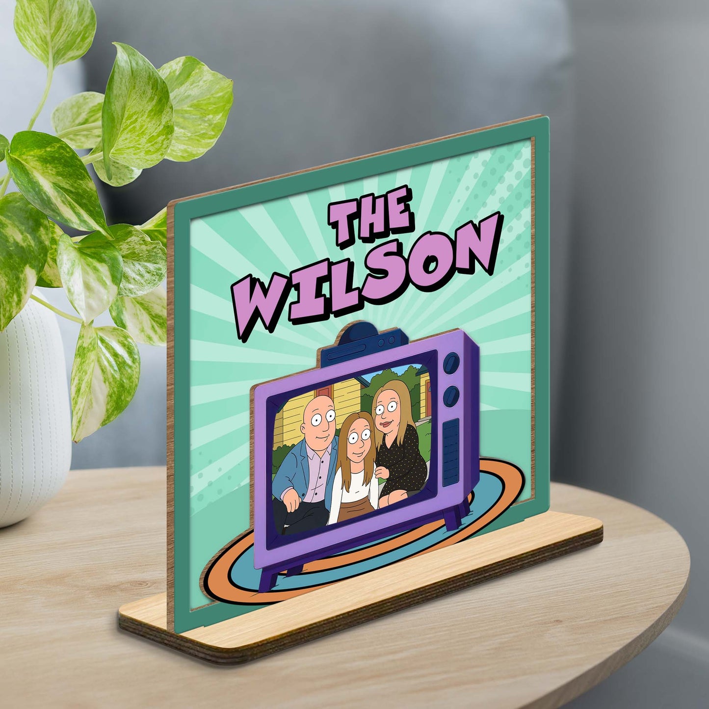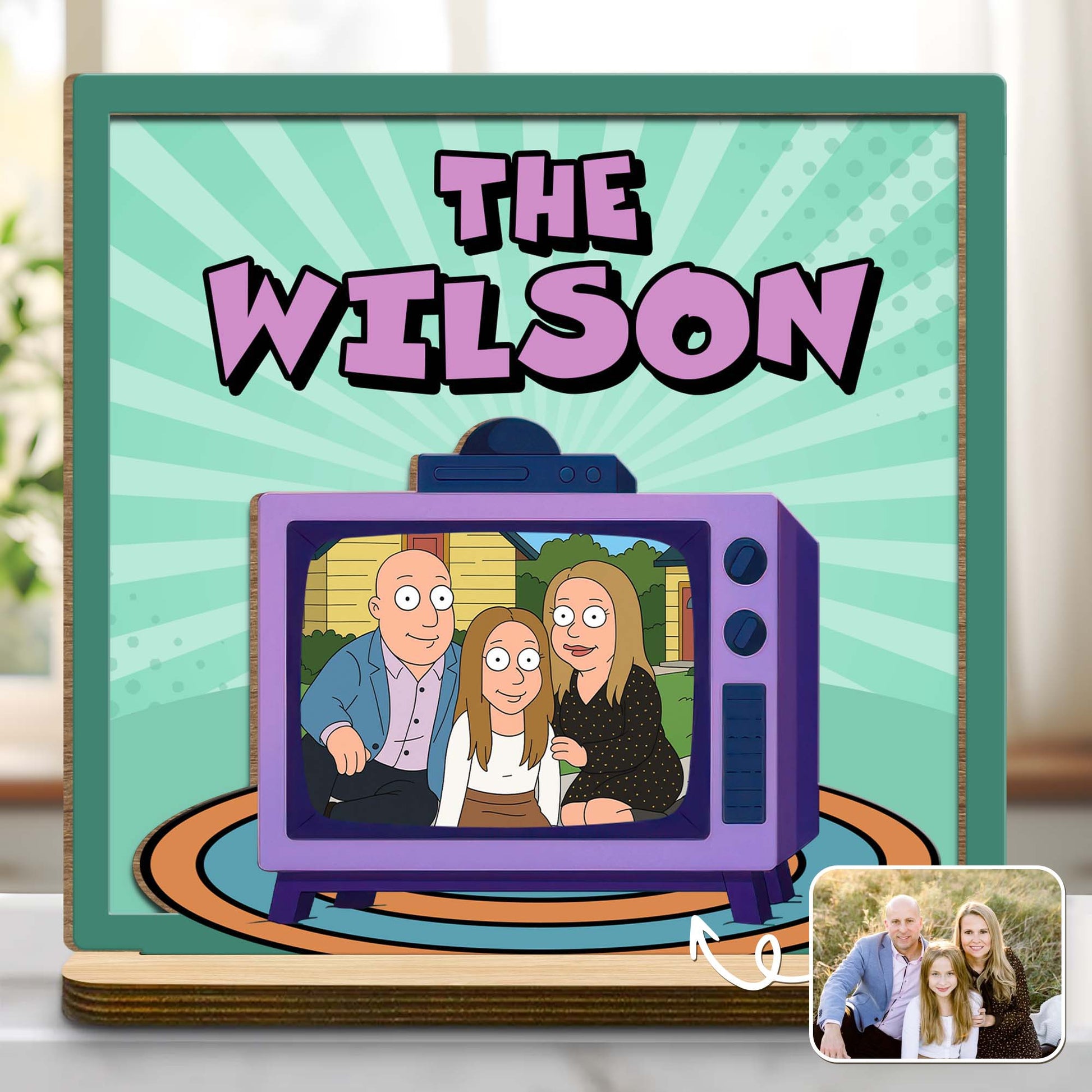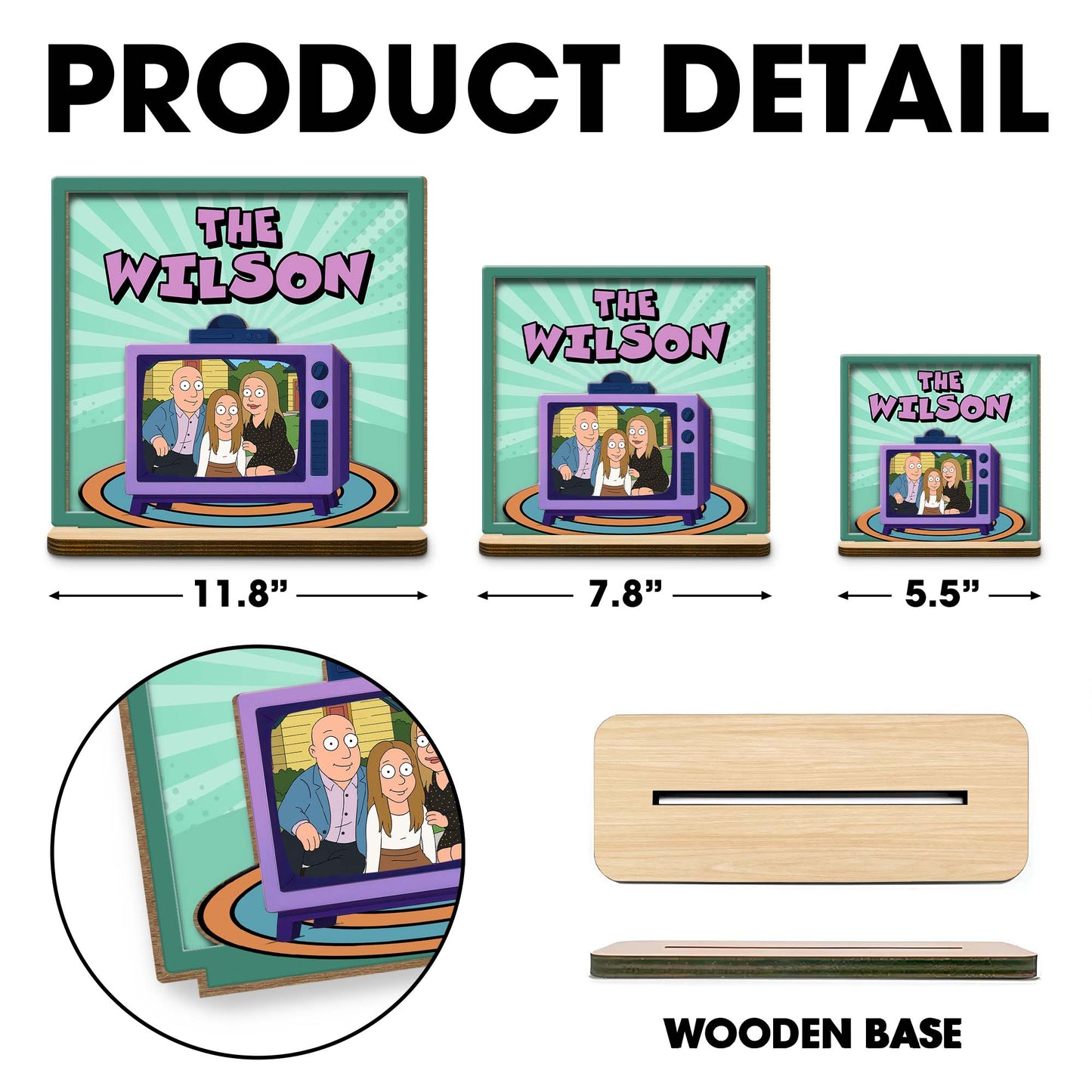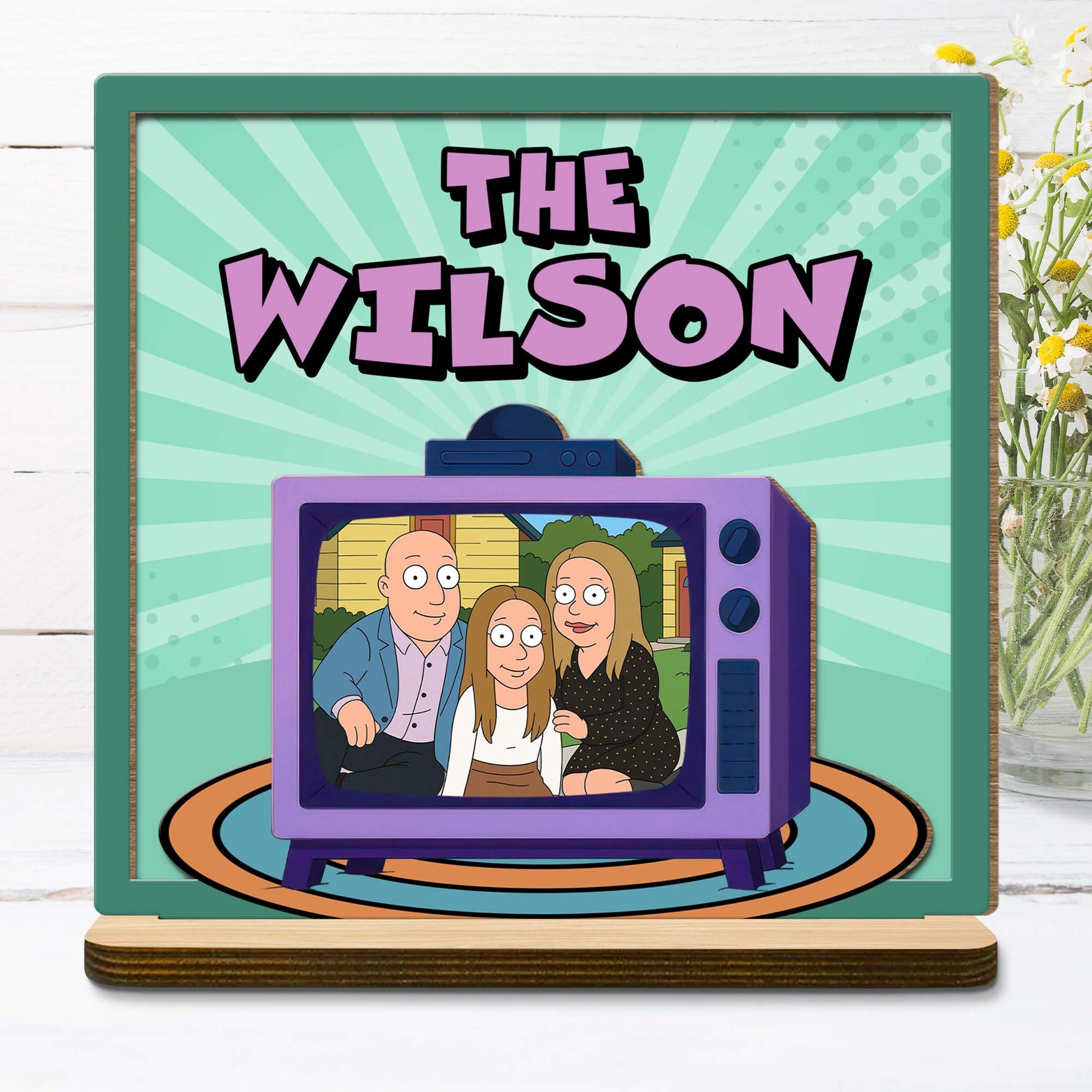 The Wilson, Cartoon Family On Vintage Television - Personalized Custom 2-Layer Wood Plaque With Flat Base - FAM403_WPLA